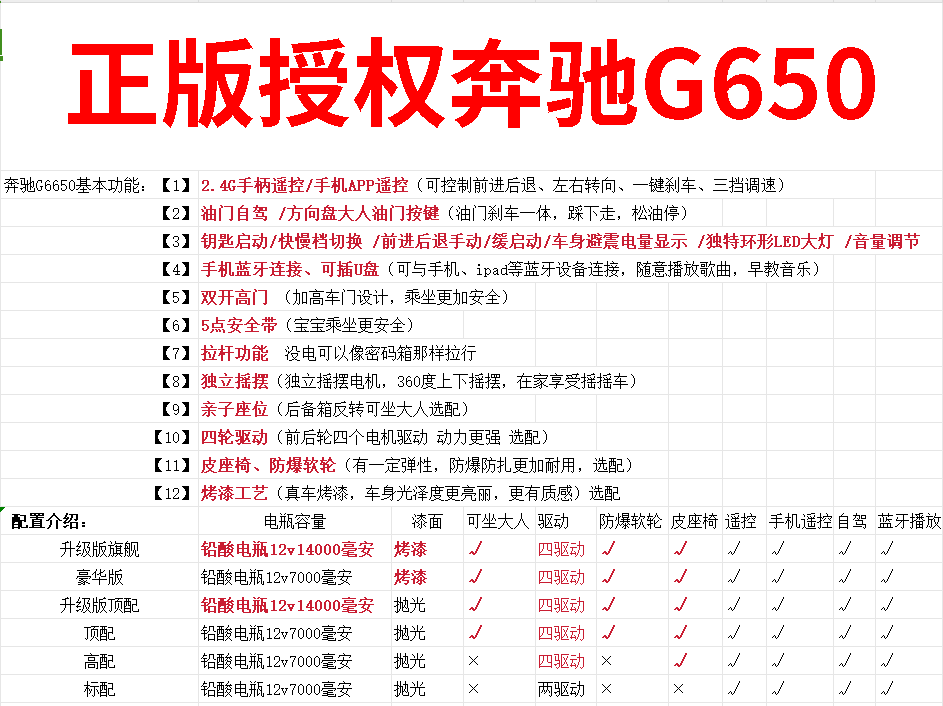 奔驰大g儿童电动车四轮遥控汽车小孩宝宝玩具亲子车可坐大人双座