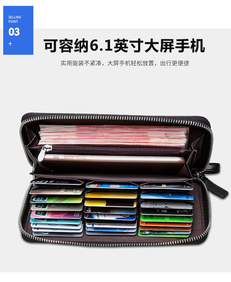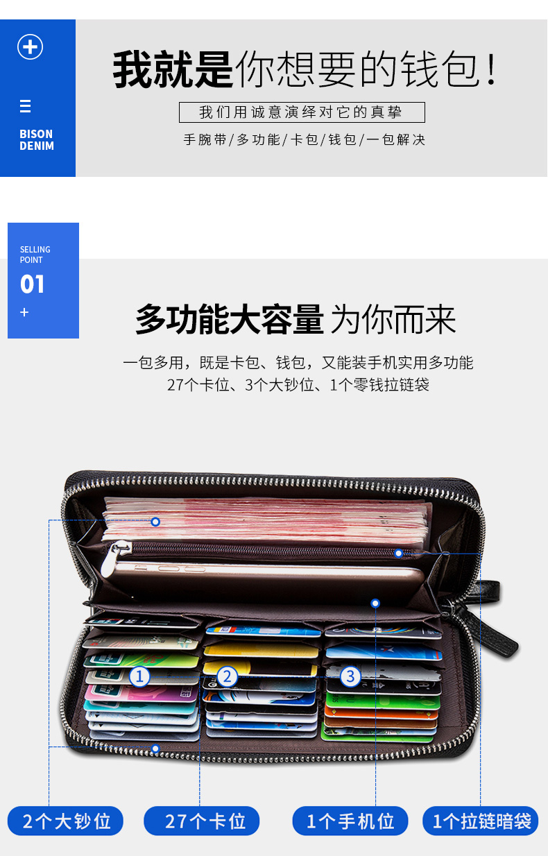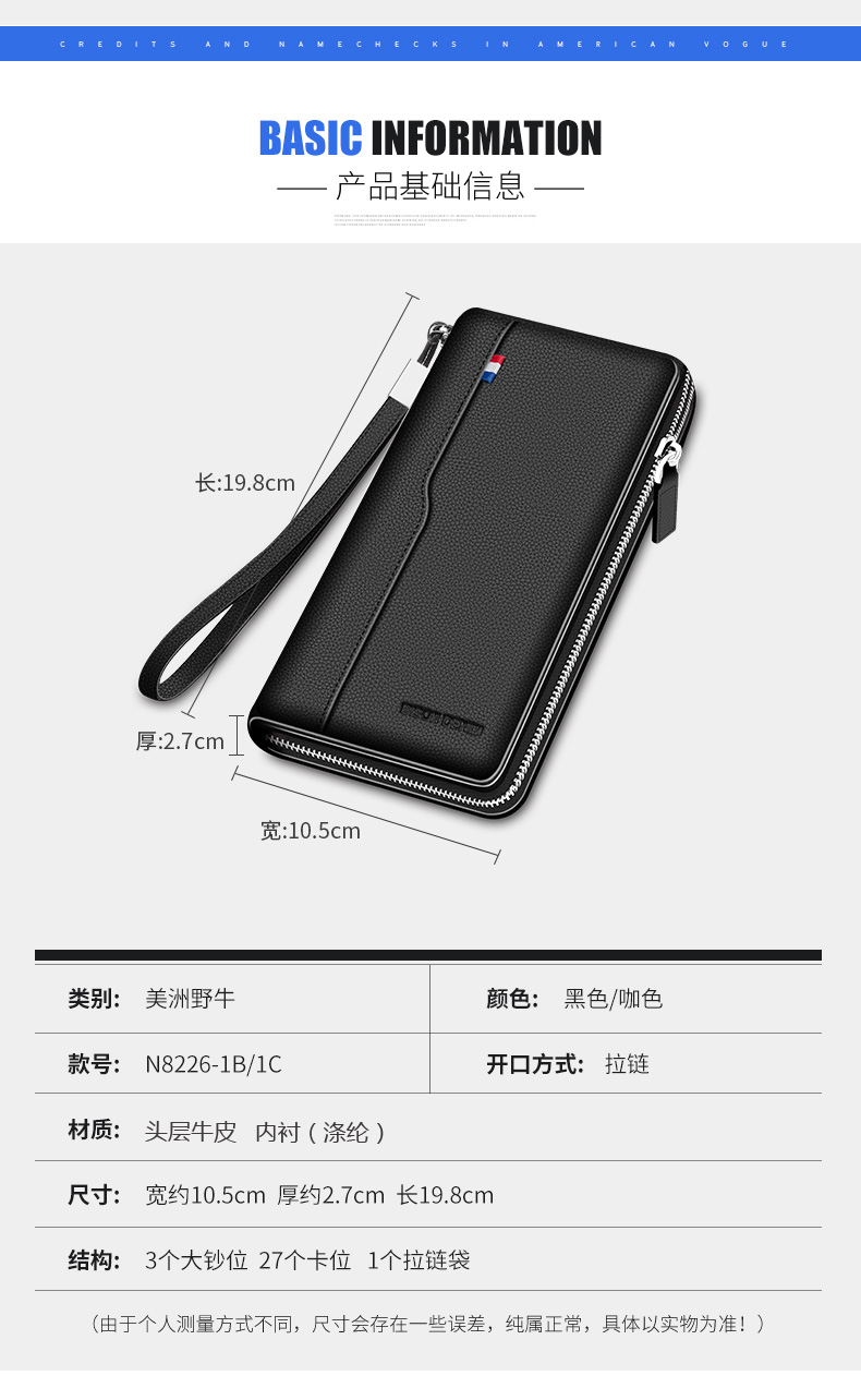 美洲野牛男士钱包长款真皮多卡位手包卡包一体大容量2025新款皮夹