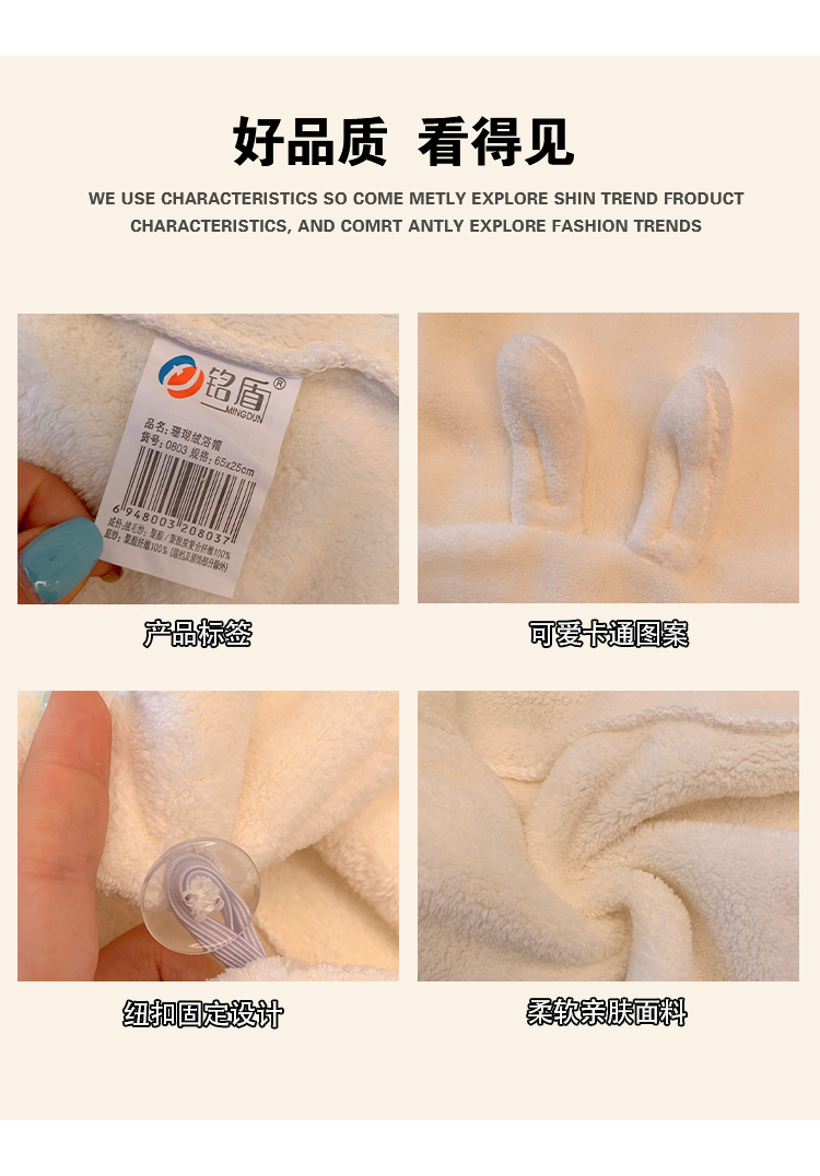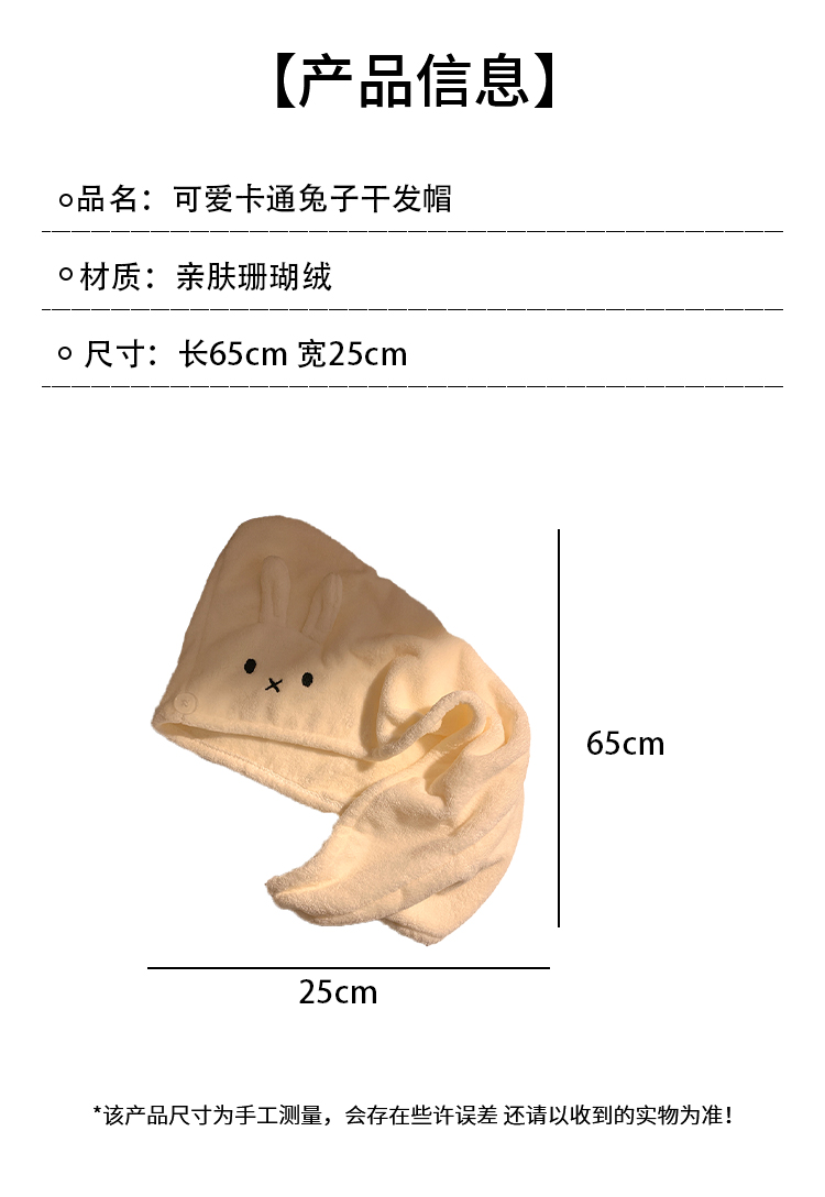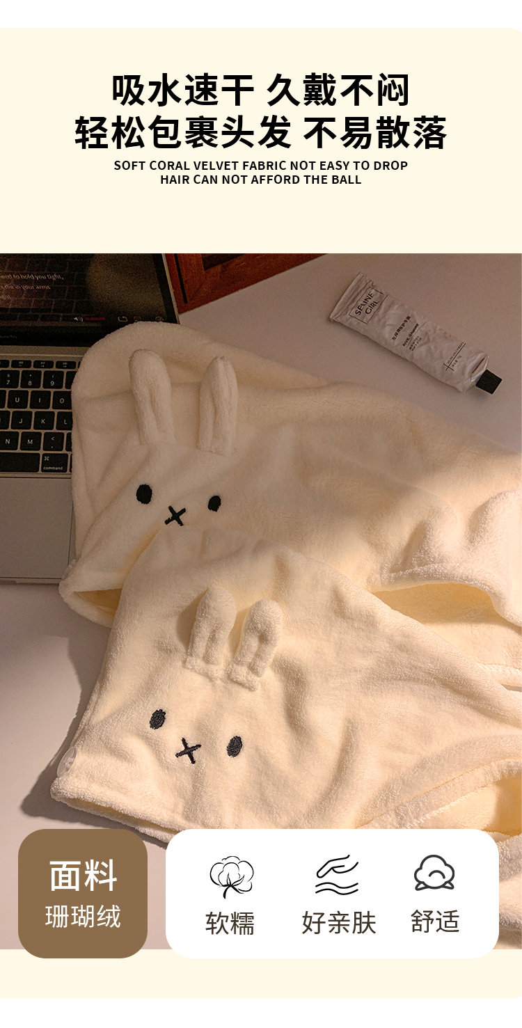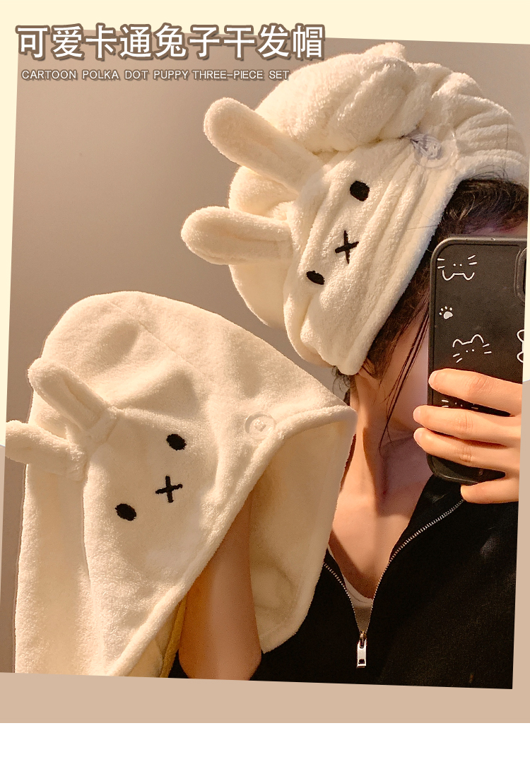 可爱兔子干发帽女加厚超强吸水速干包头发毛巾珊瑚绒浴帽2025新款