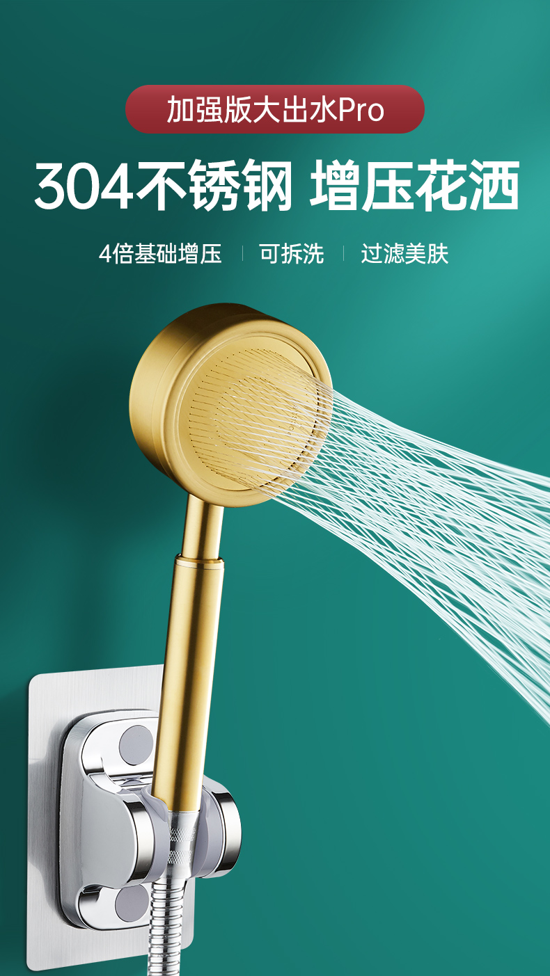增压淋浴花洒喷头304不锈钢加压浴霸热水器花晒头洗澡莲蓬头套装