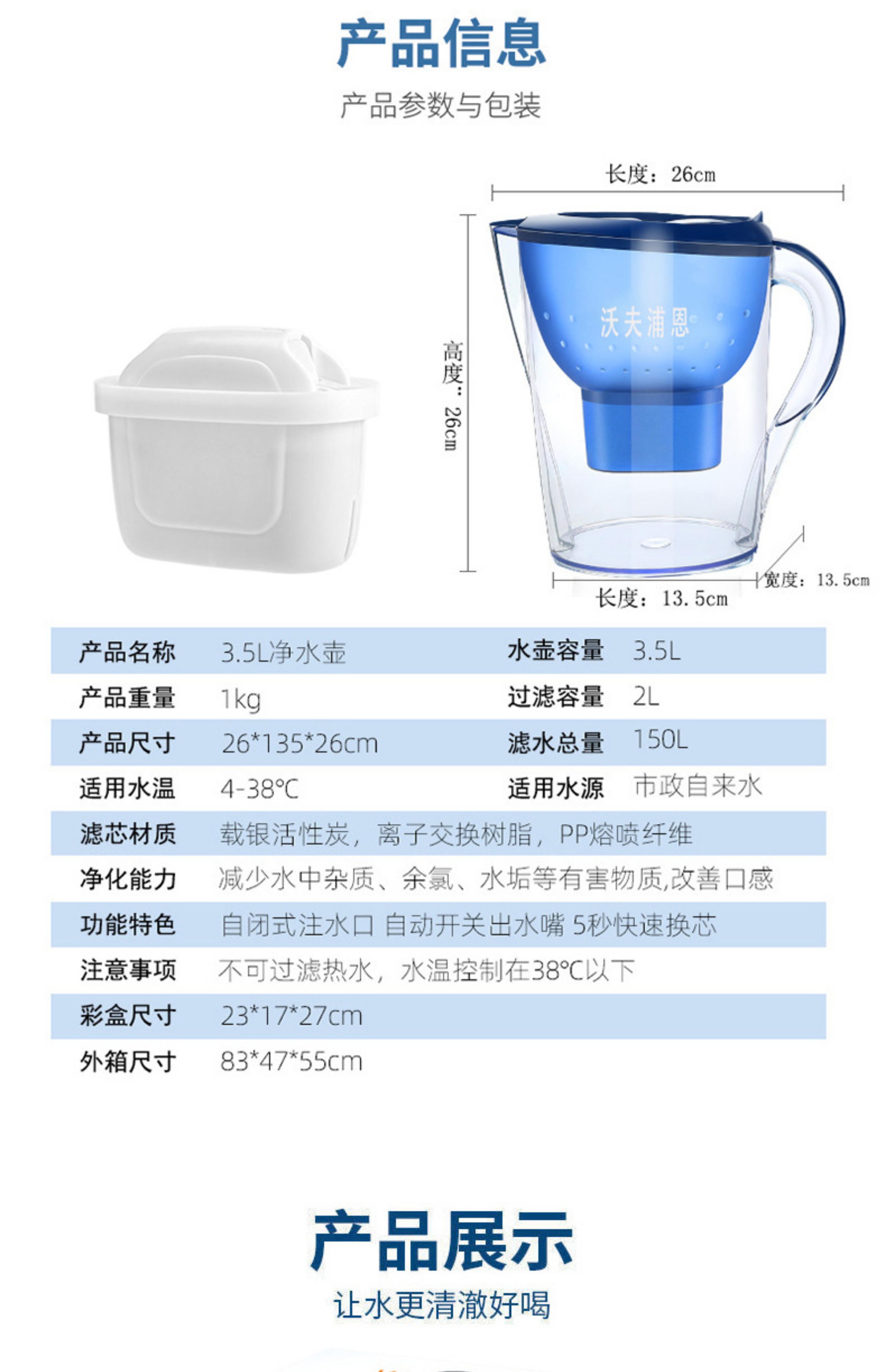 3.5L净水壶大容量滤水壶过滤器滤水器家用厨房自来水除氯去垢正品