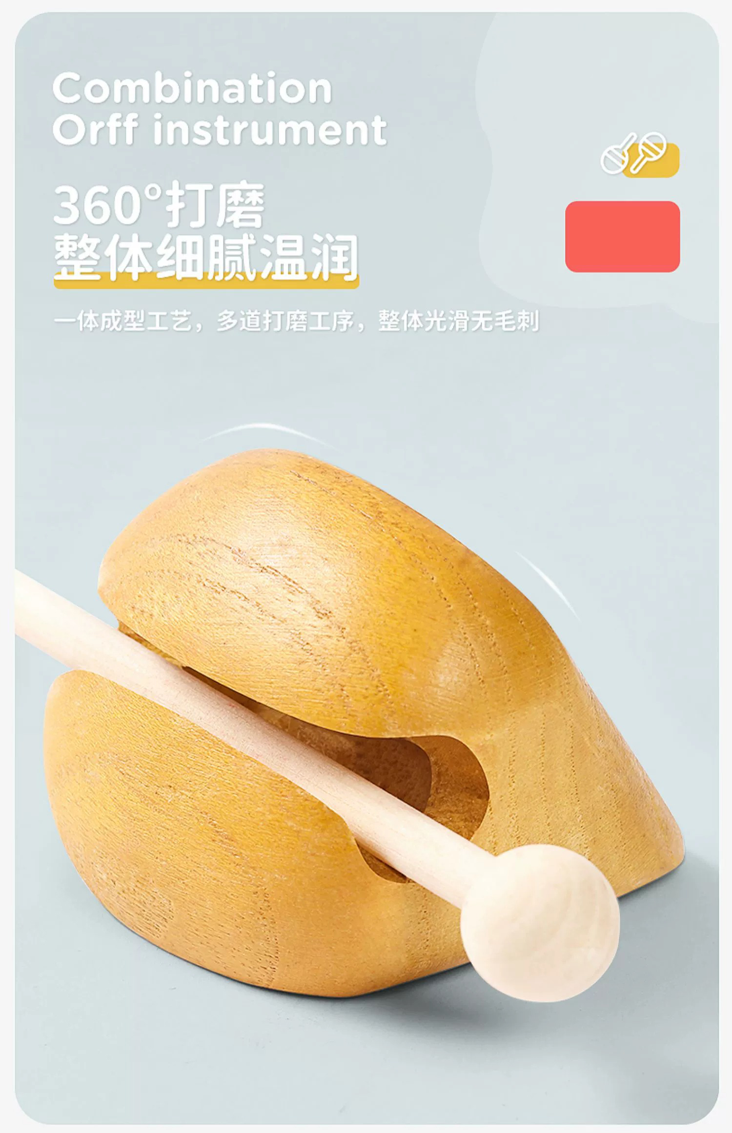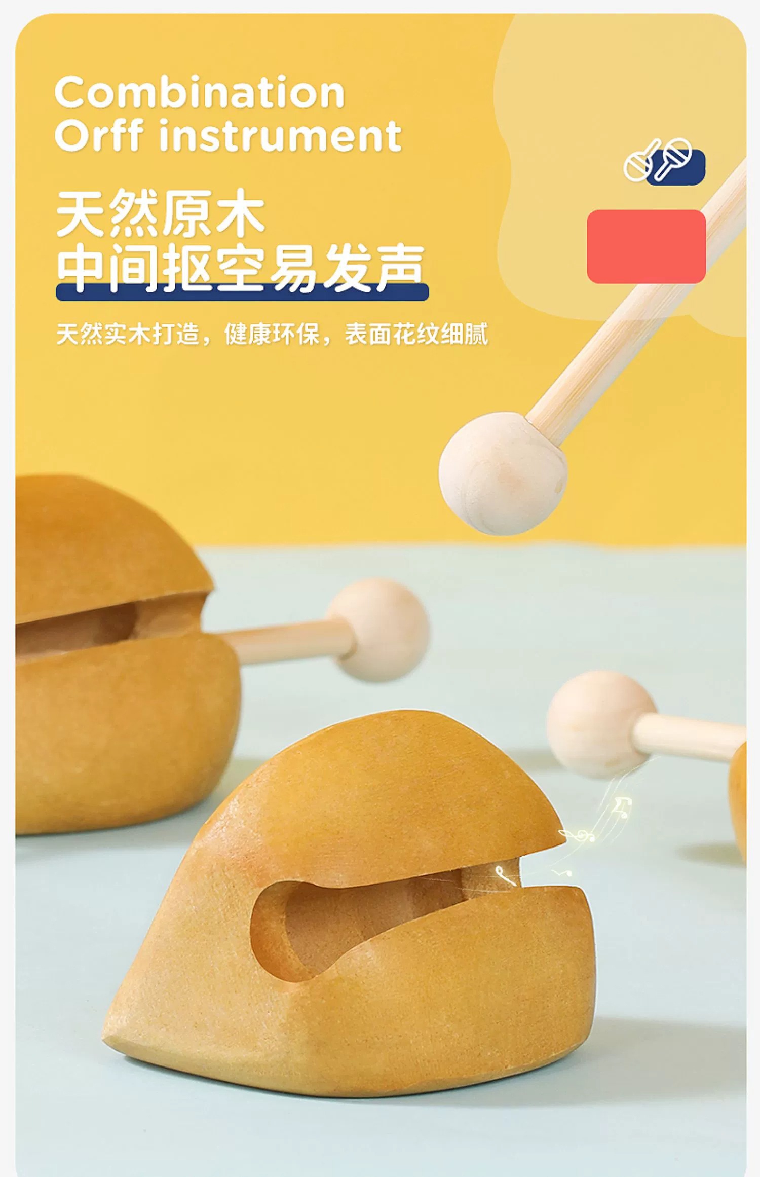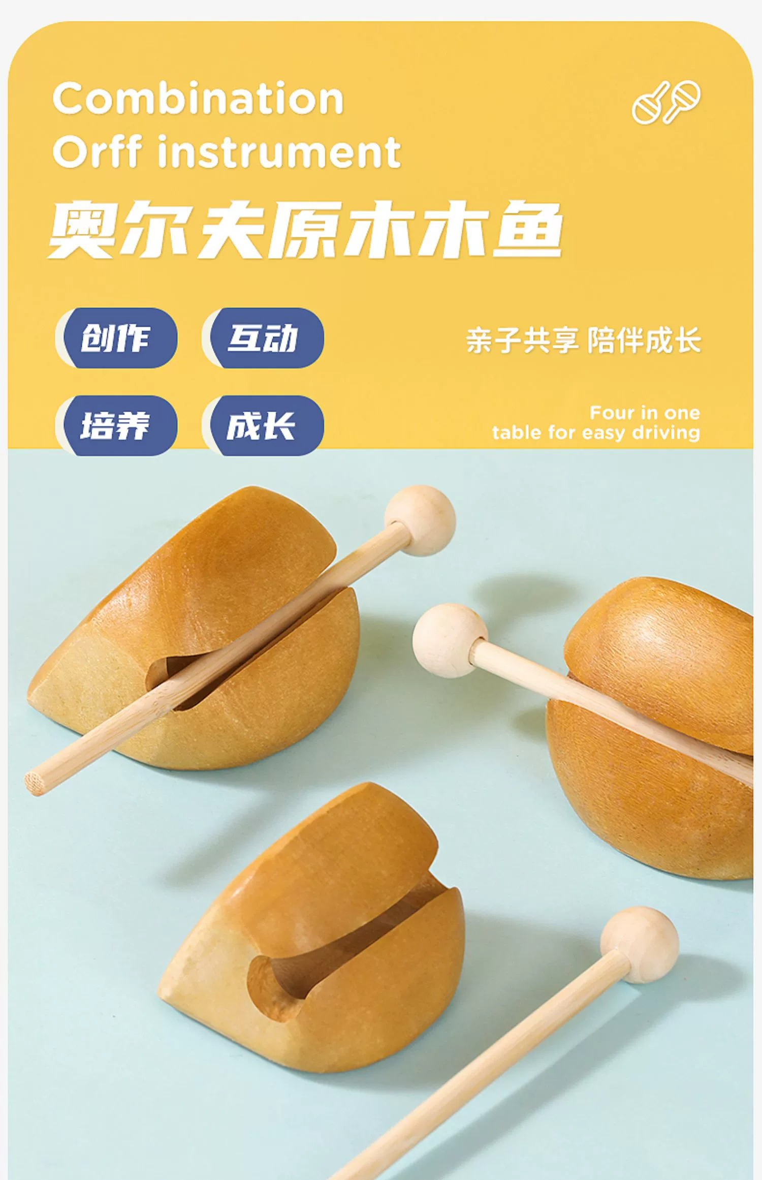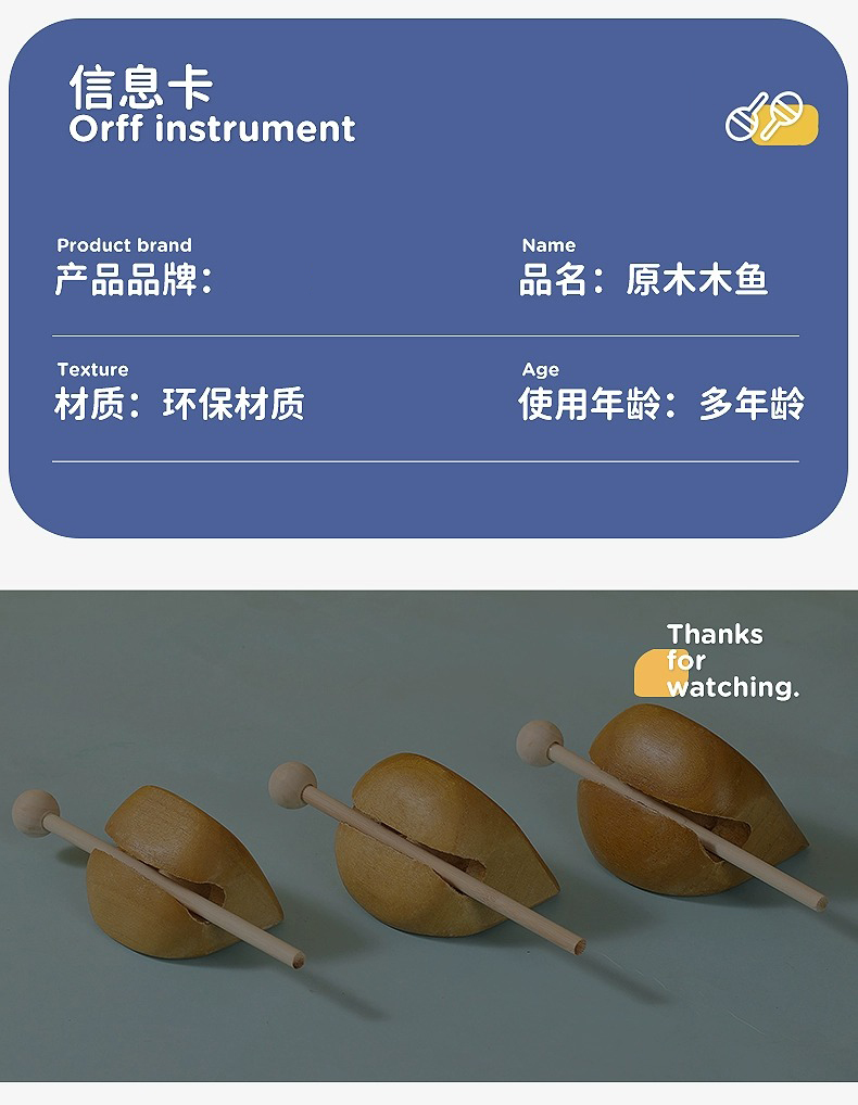 奥尔夫木鱼打击乐器实木小学生音乐儿童一年级教学具大号解压梆子
