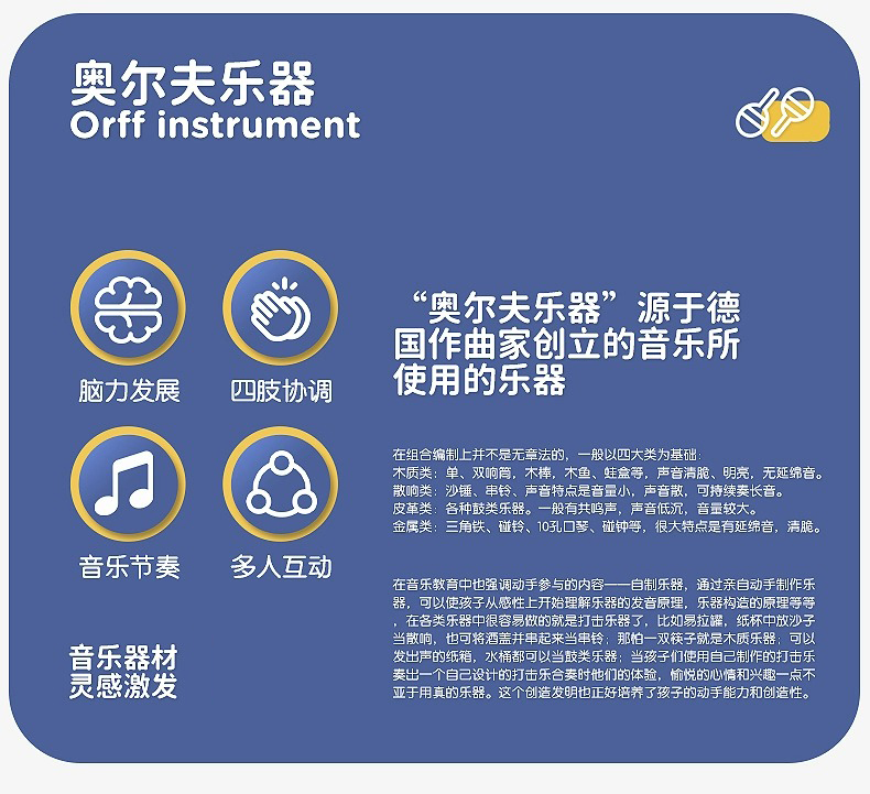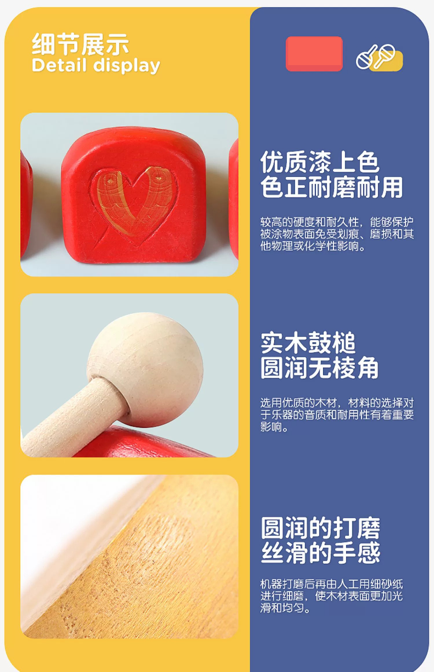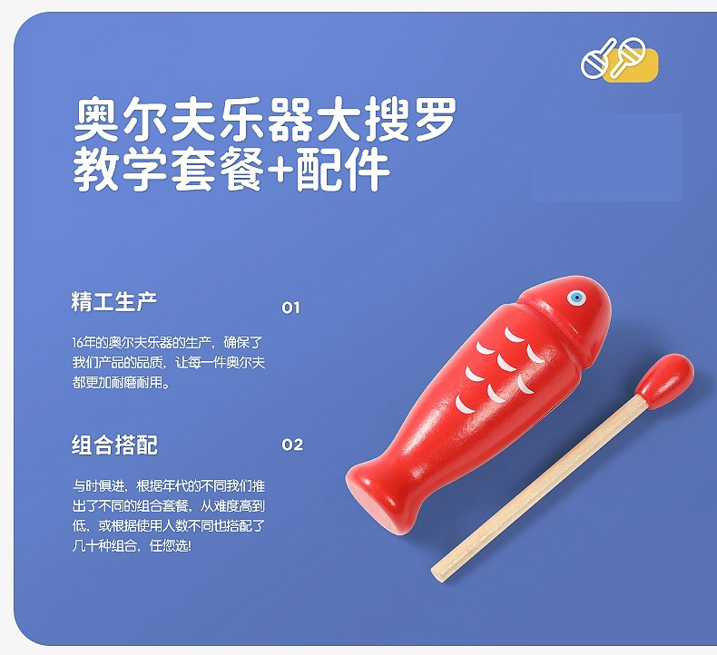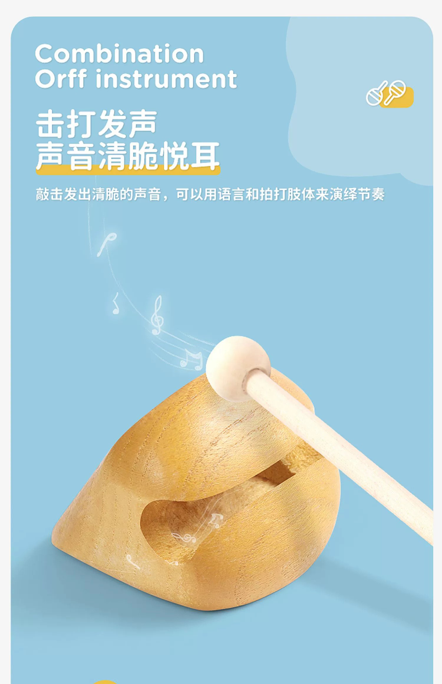 奥尔夫木鱼打击乐器实木小学生音乐儿童一年级教学具大号解压梆子