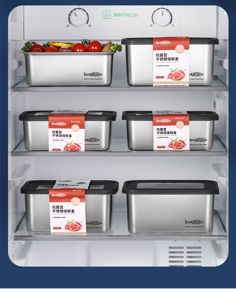 芬兰米膳葆保鲜盒食品级316不锈钢饭盒冰箱密封收纳盒水果便当
