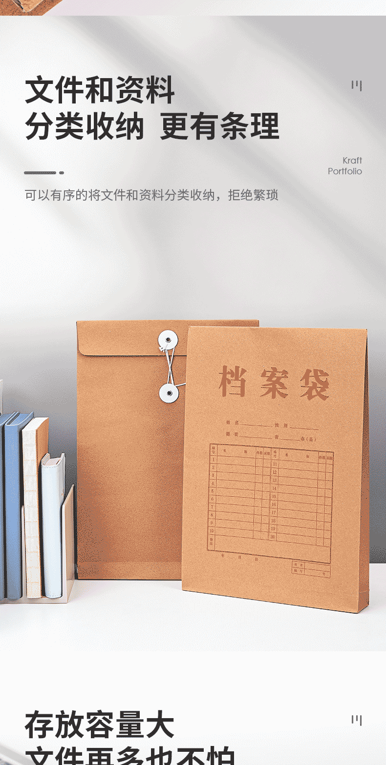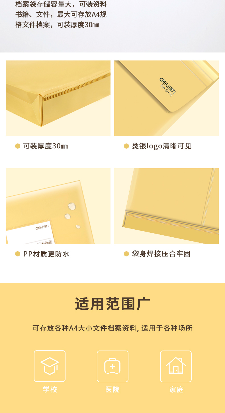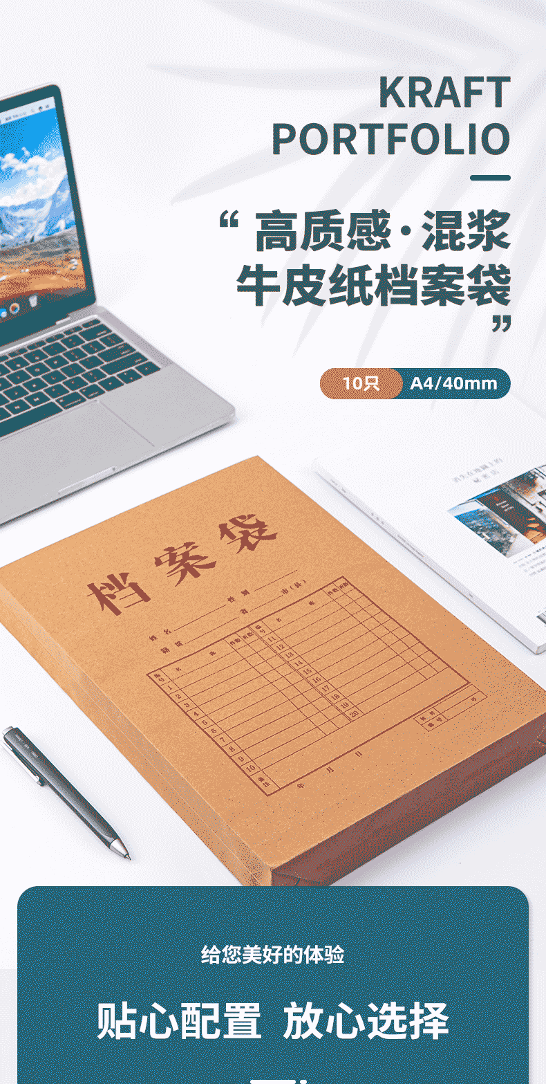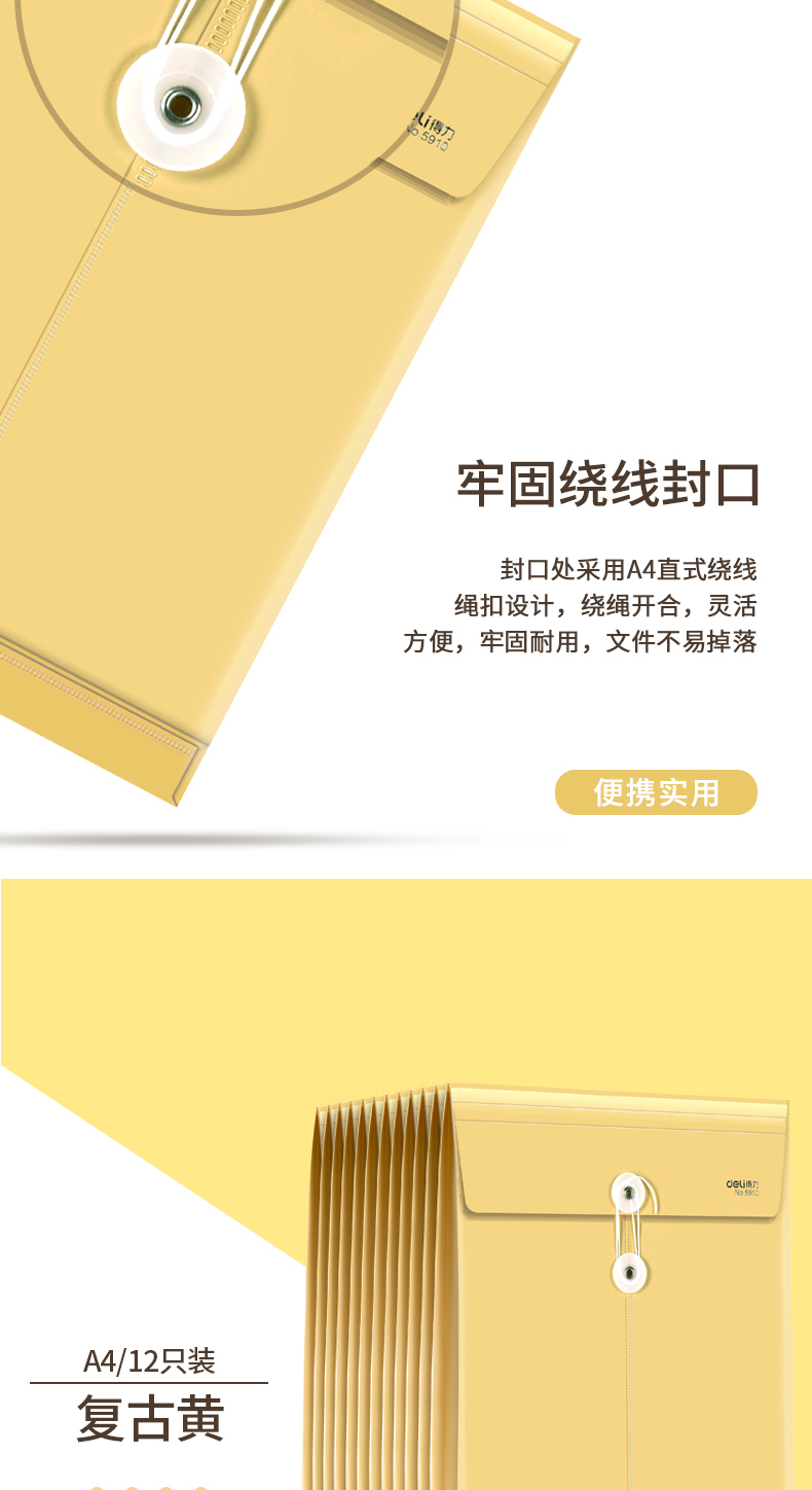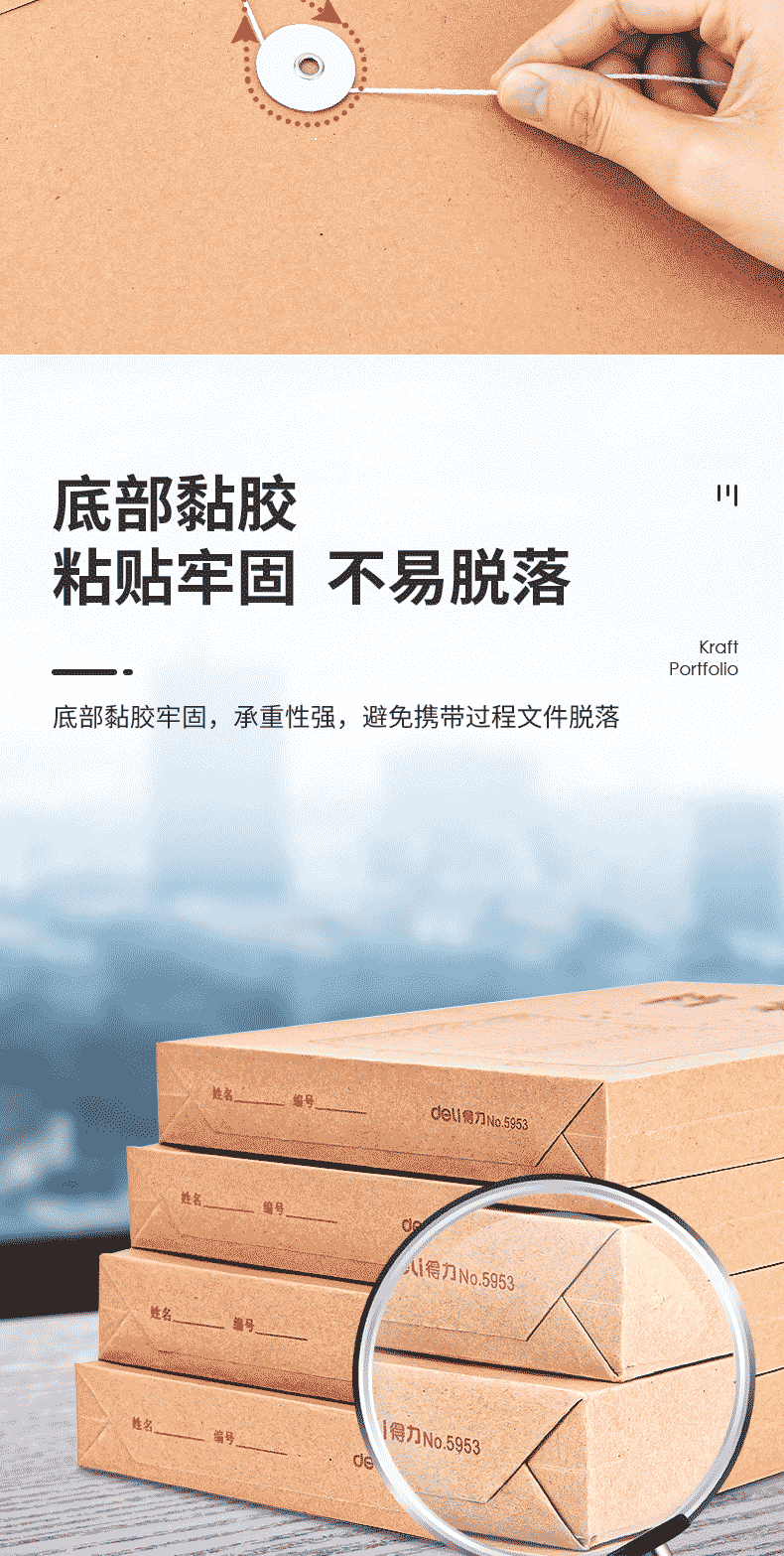 得力50个装牛皮纸档案袋A4纸质文件袋文件夹文档文件收纳40mm背宽不易变形加厚投标合同资料批发大容量