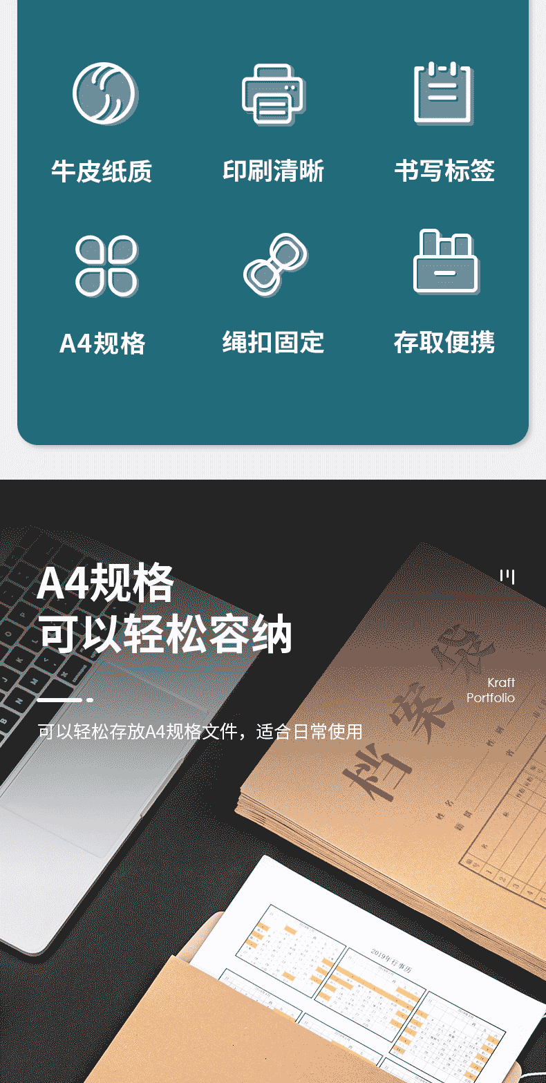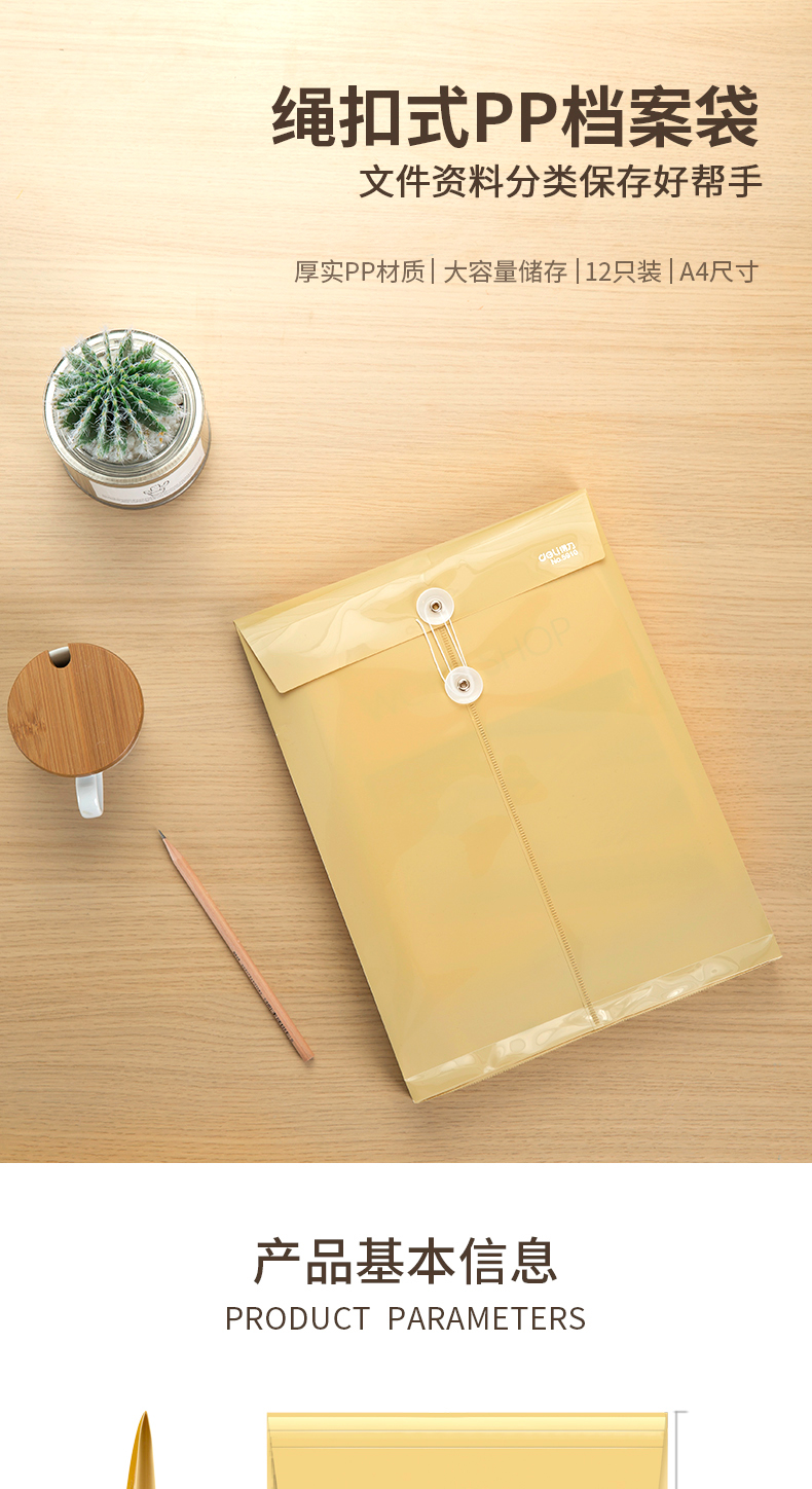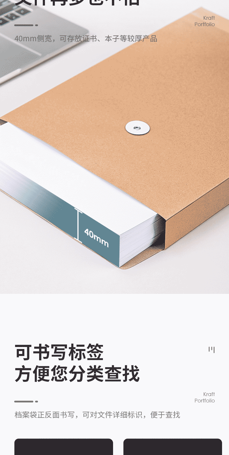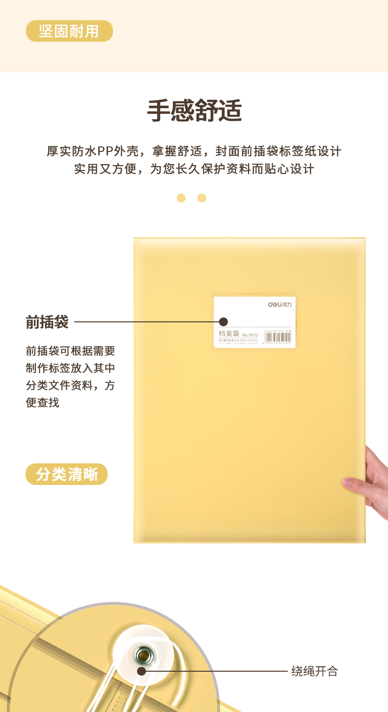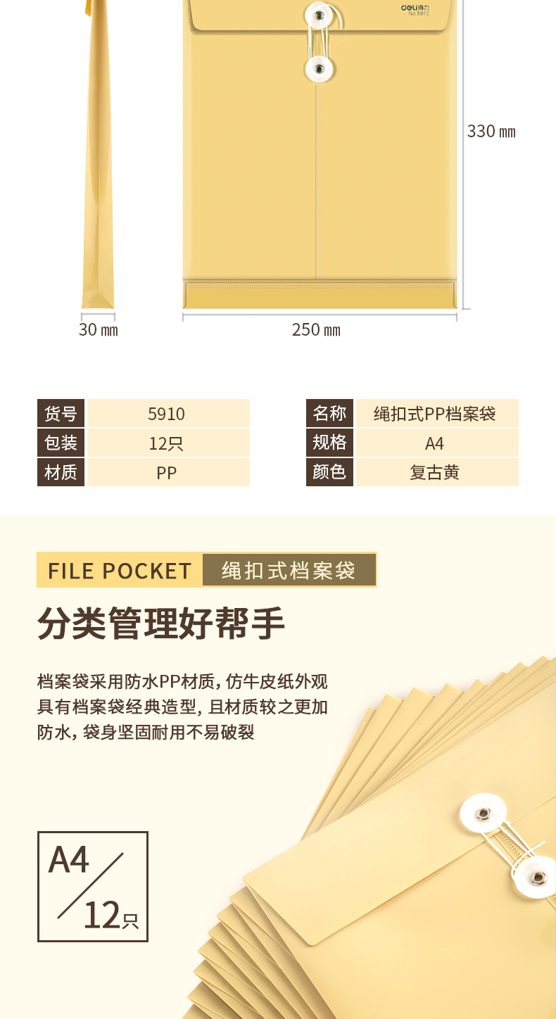 得力50个装牛皮纸档案袋A4纸质文件袋文件夹文档文件收纳40mm背宽不易变形加厚投标合同资料批发大容量