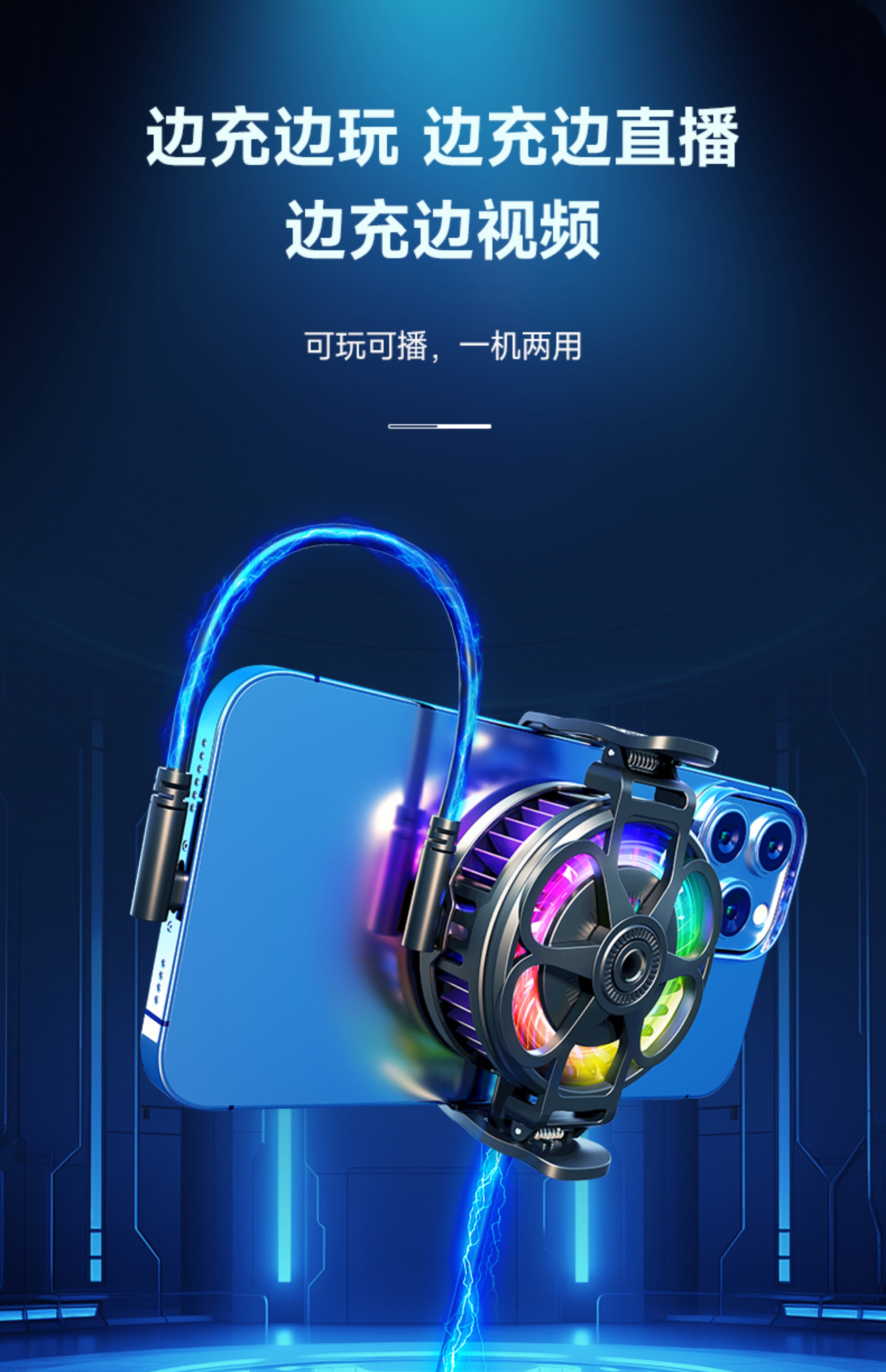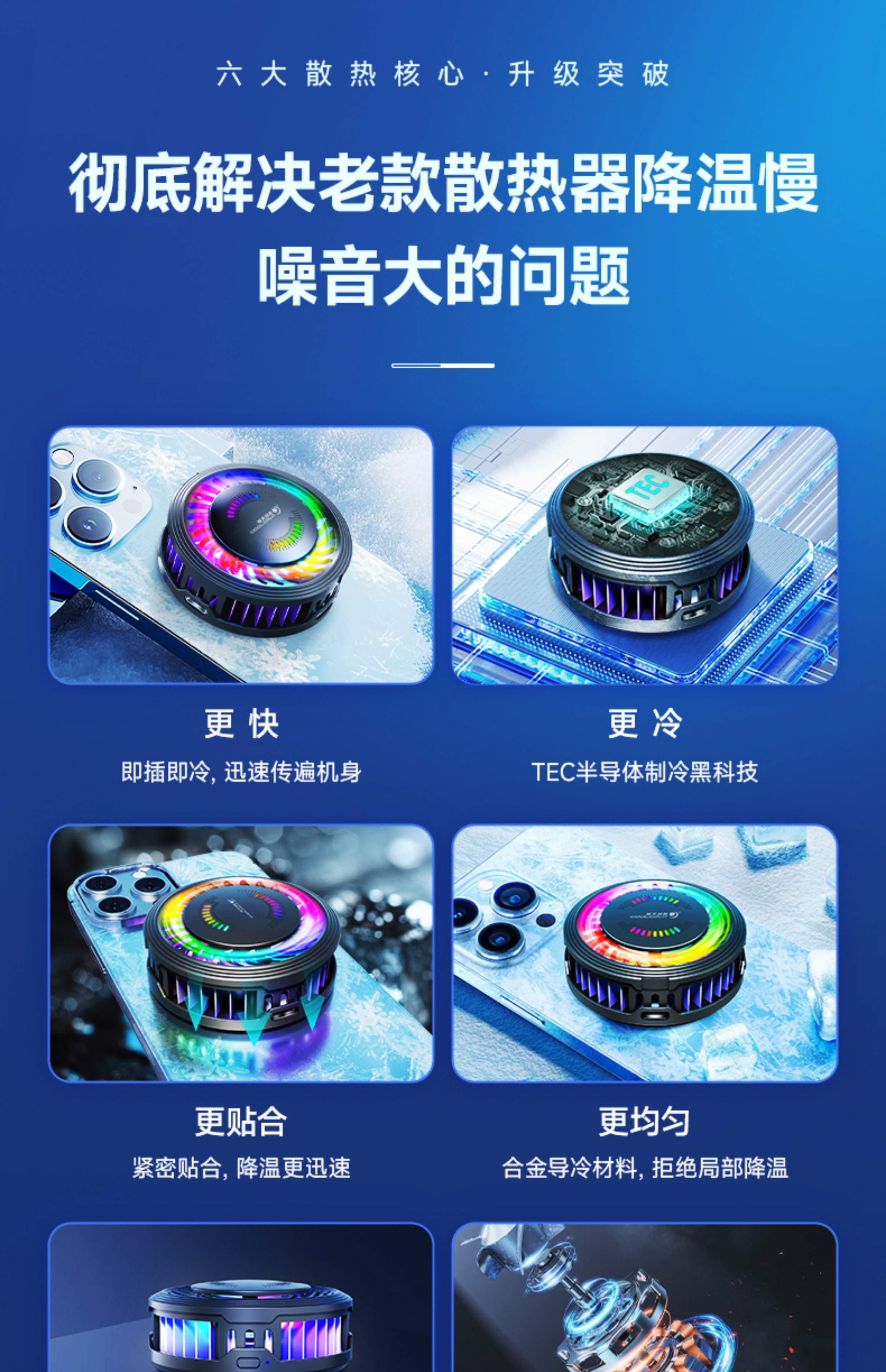 手机散热器直播专用苹果降温神器磁吸背夹超静音半导体制冷适用小米黑鲨一加冰封散热平板水冷风扇游戏主充电