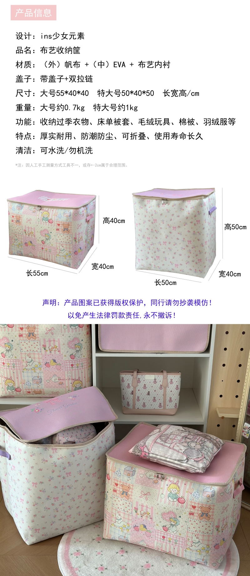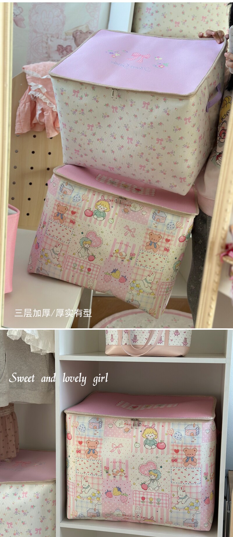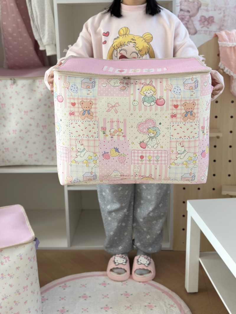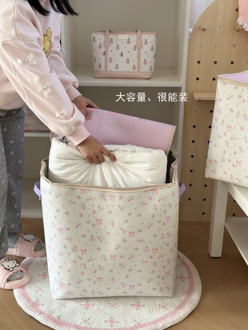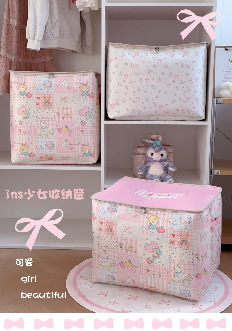 少女风拉链盖衣服收纳箱大容量被子搬家袋家用衣柜换季衣物整理筐