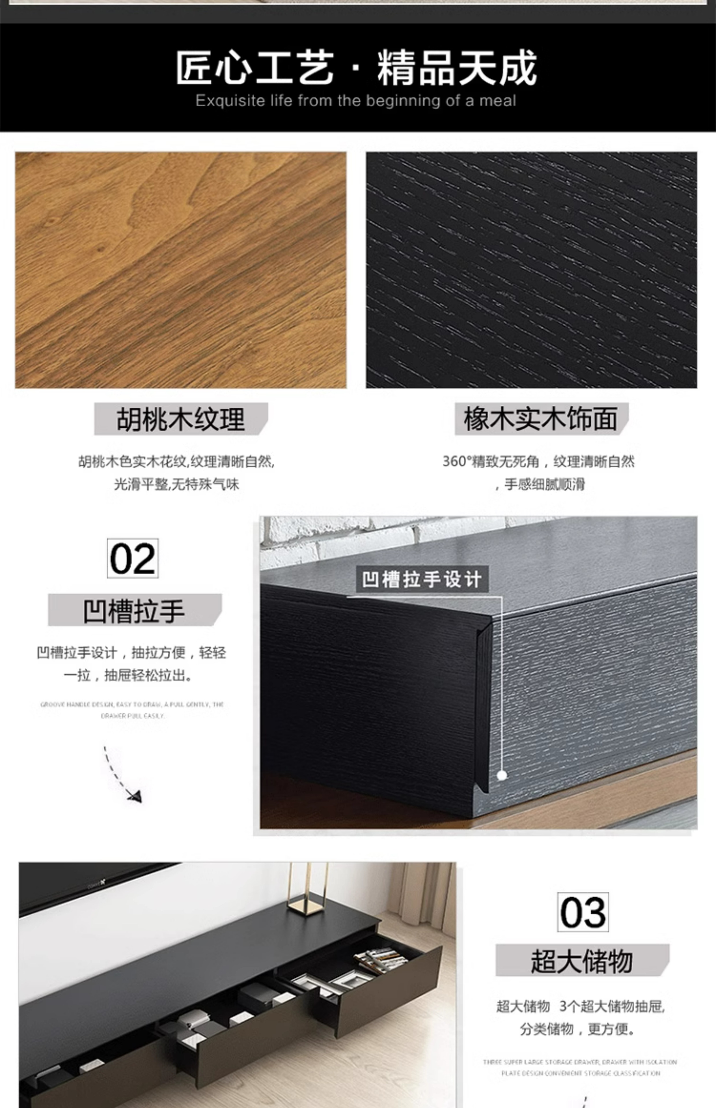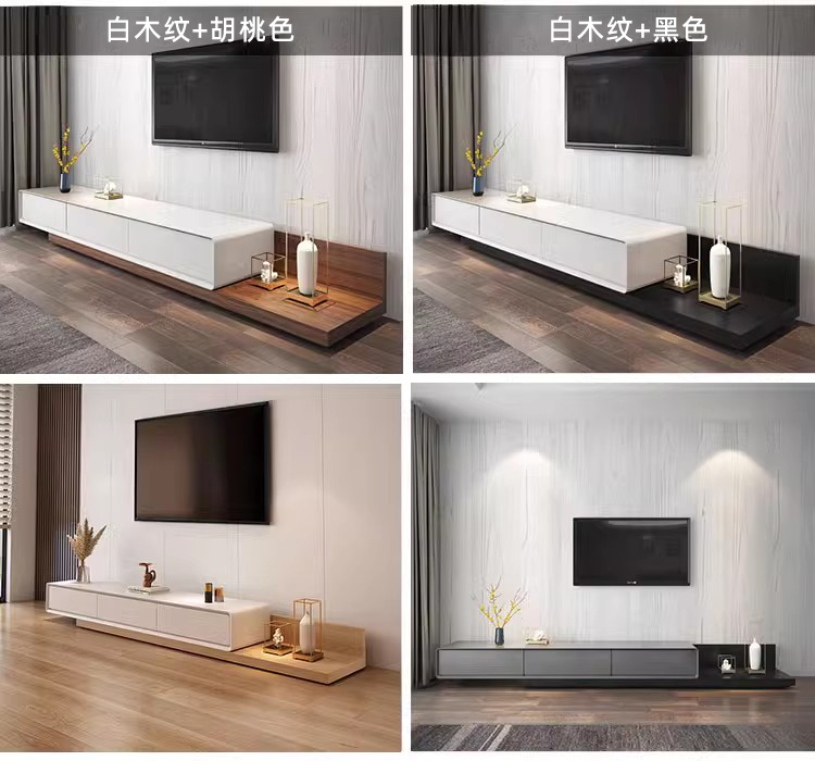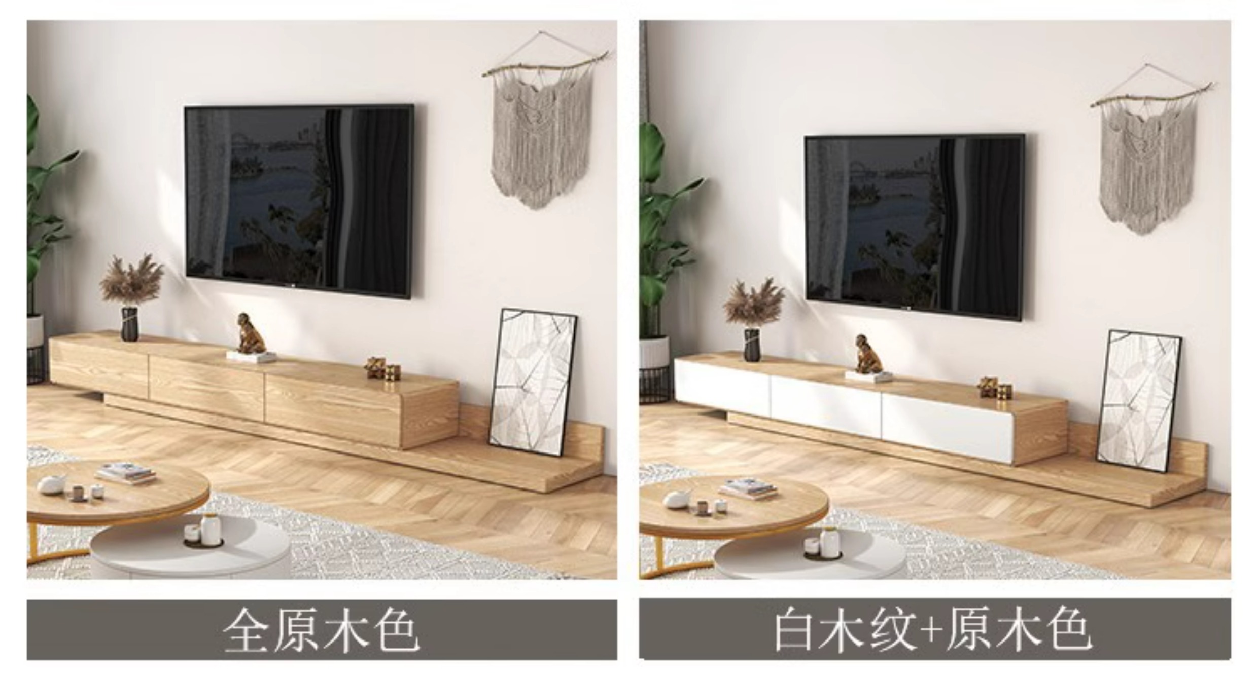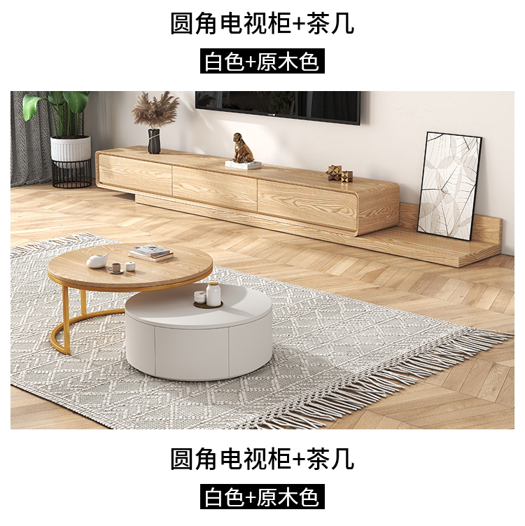 北欧电视柜茶几组合现代简约轻奢小户型地柜原木色可伸缩电视机柜