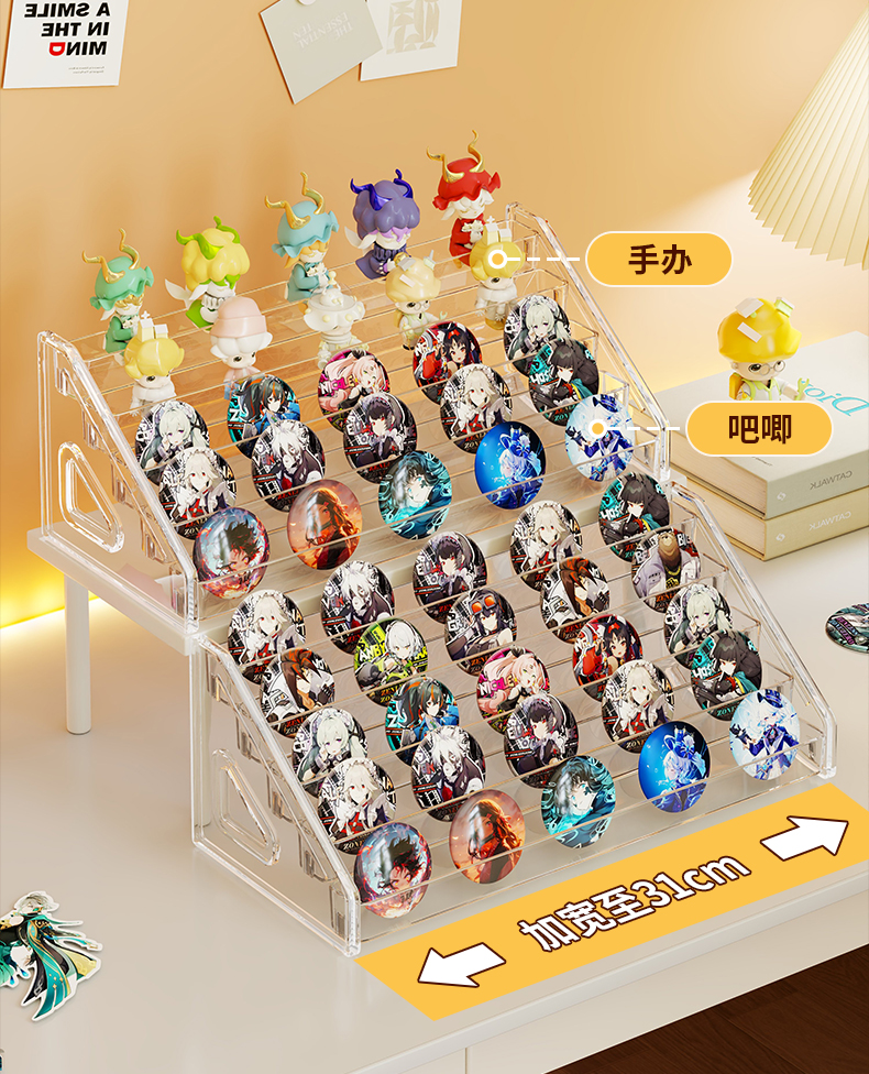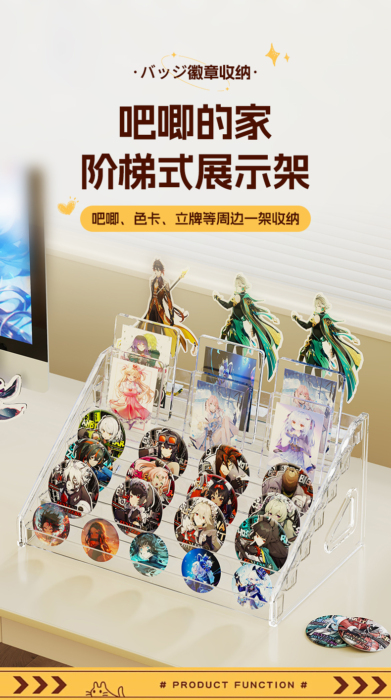 吧唧展示架桌面亚克力谷子收纳盒透明卡片架子周边小卡徽章置物架