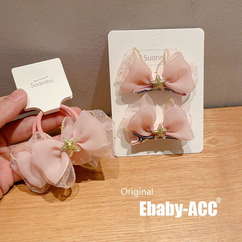 网纱蝴蝶结星星儿童头绳宝宝不伤发发绳女孩新款粉色bb夹女童发饰