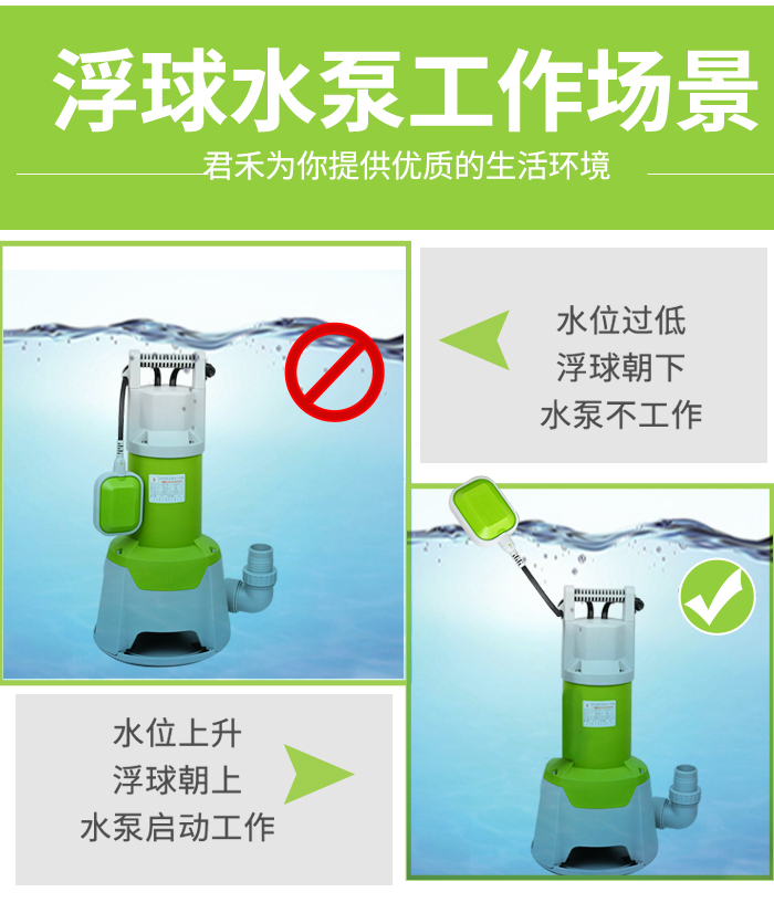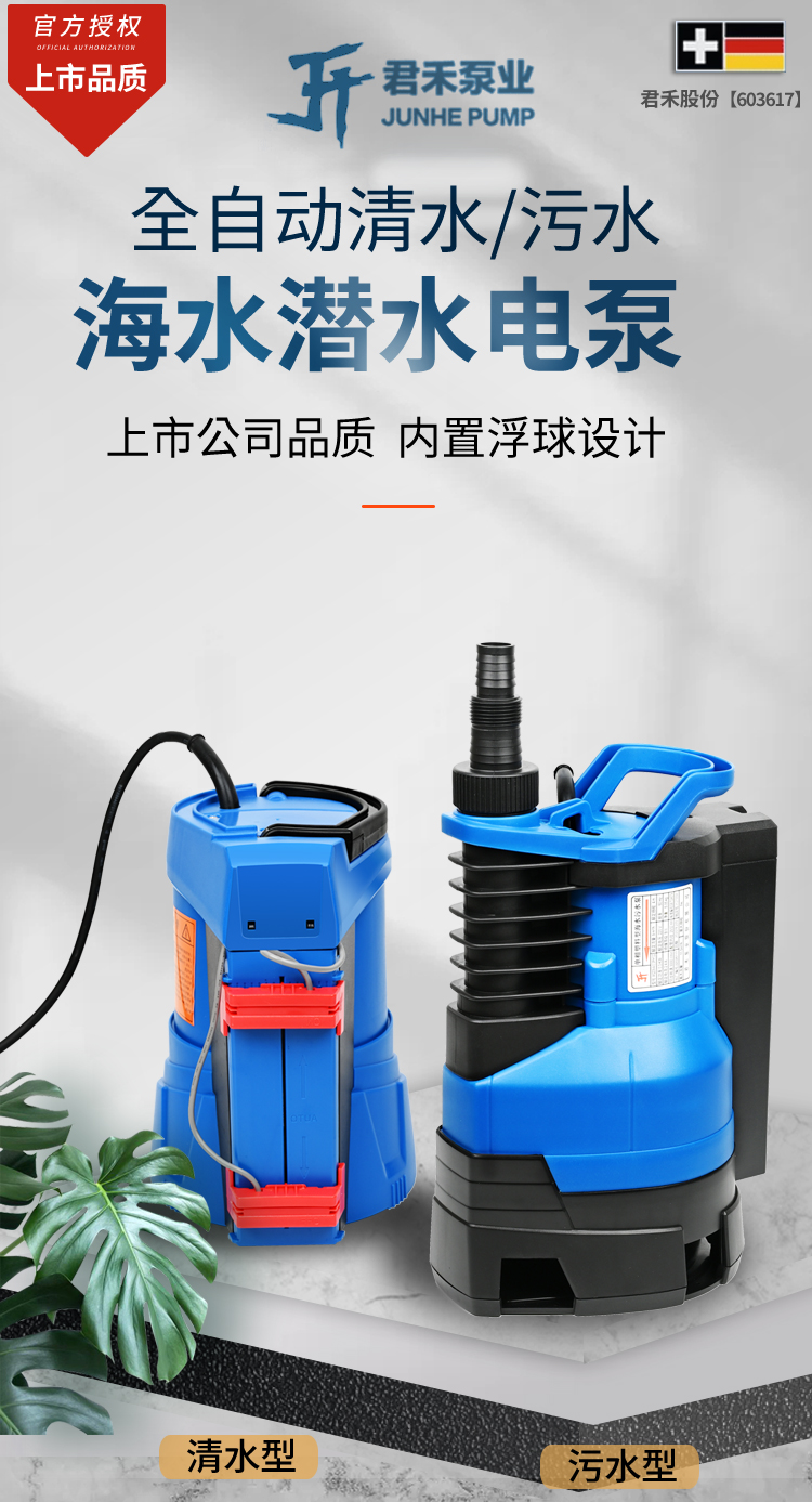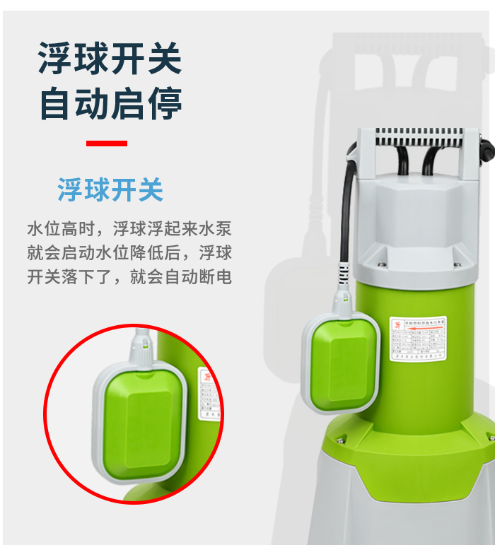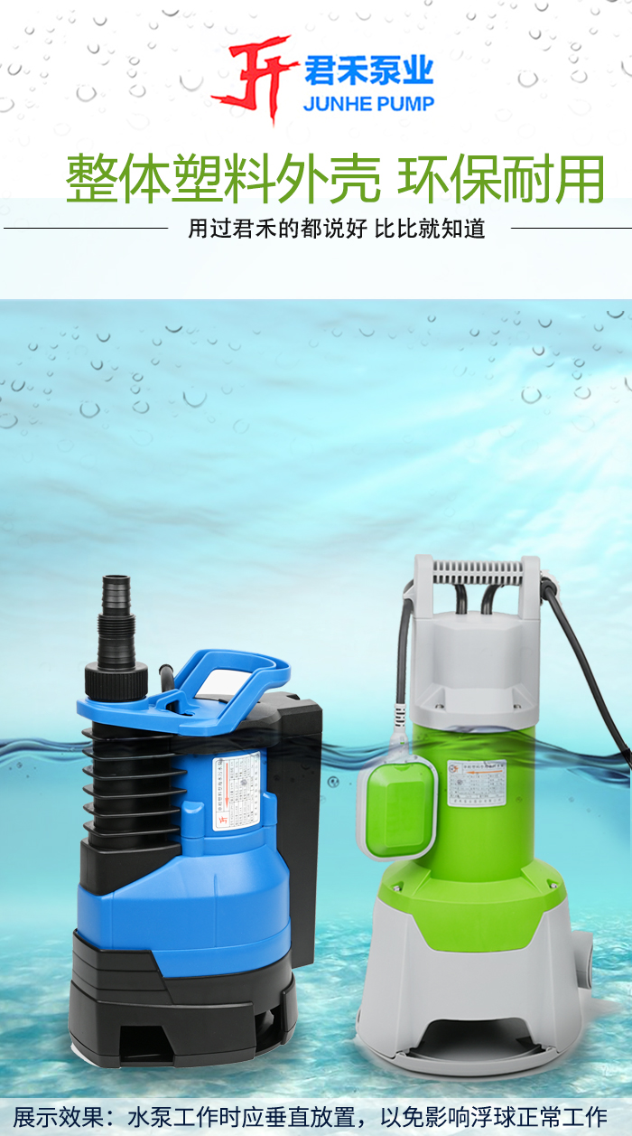 君禾塑料全自动污水泵潜水泵家用带浮球耐腐蚀海水排污抽水泵220v