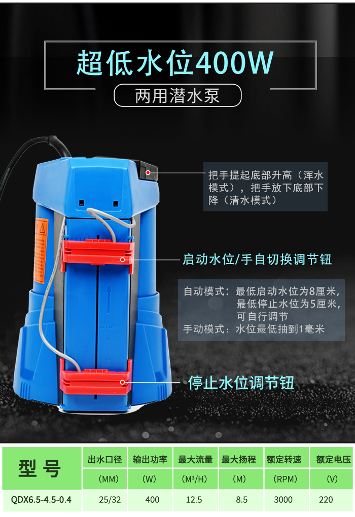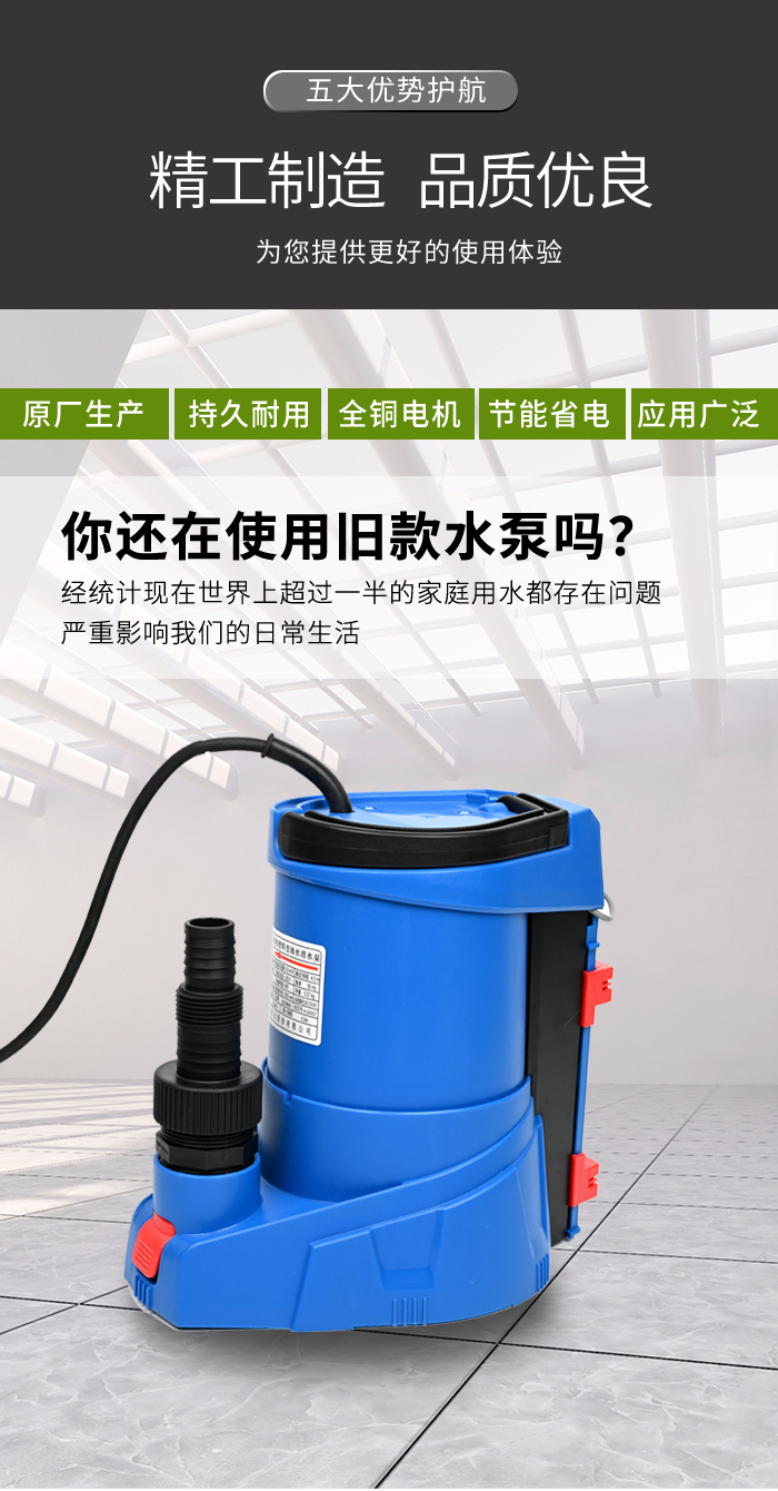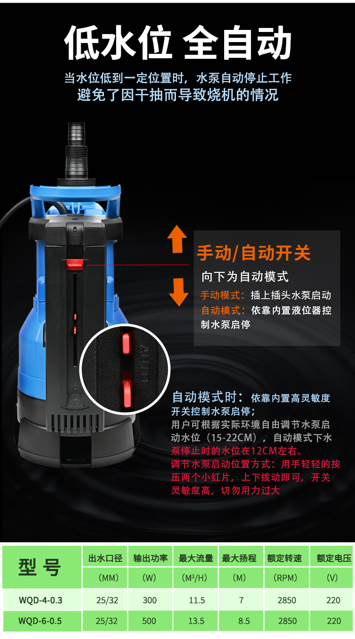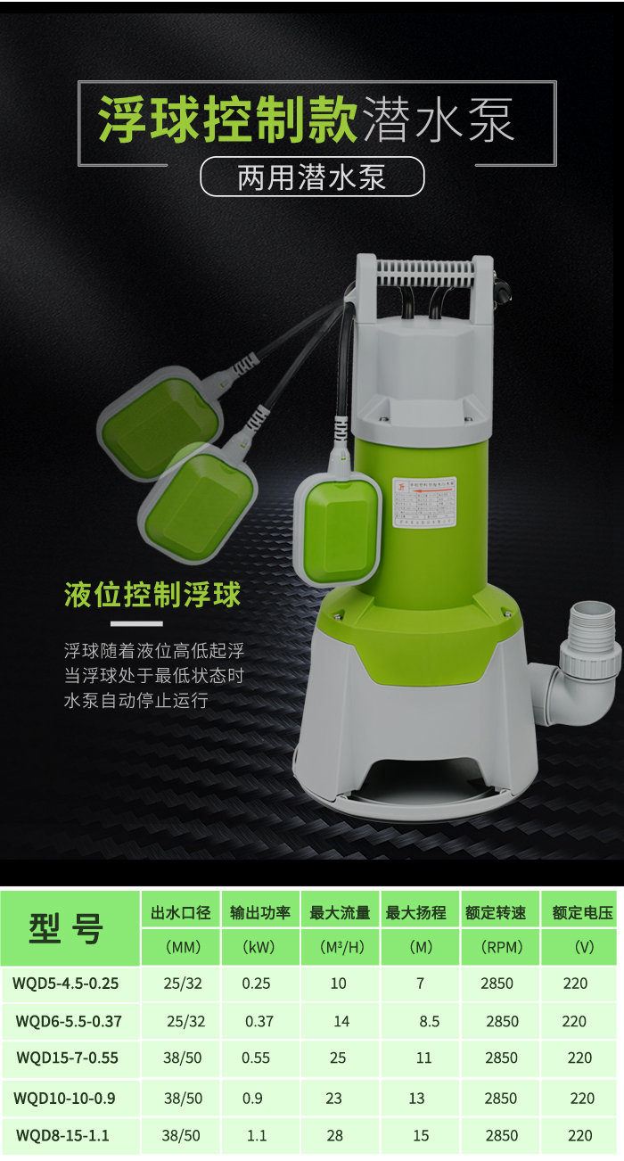 君禾塑料全自动污水泵潜水泵家用带浮球耐腐蚀海水排污抽水泵220v