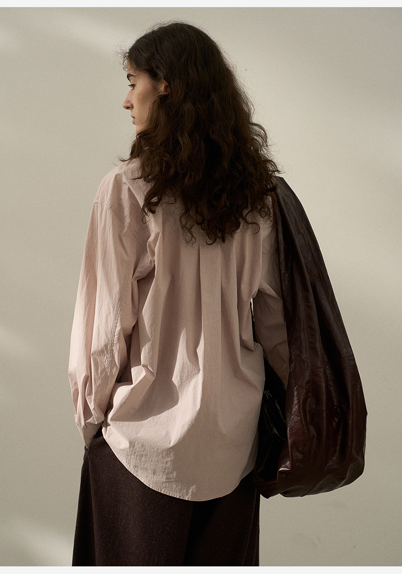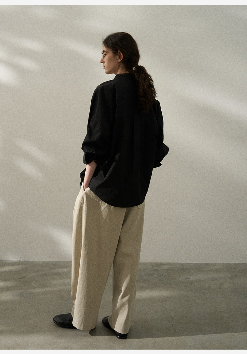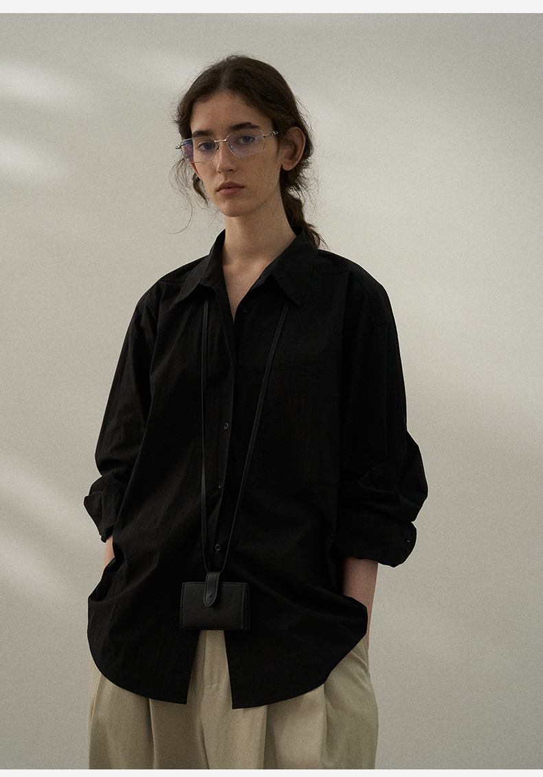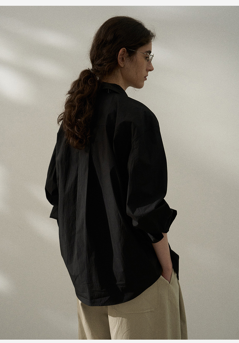 2025春季垂感黑衬衫女高级感黑色上衣oversize长袖衬衣宽松慵懒风