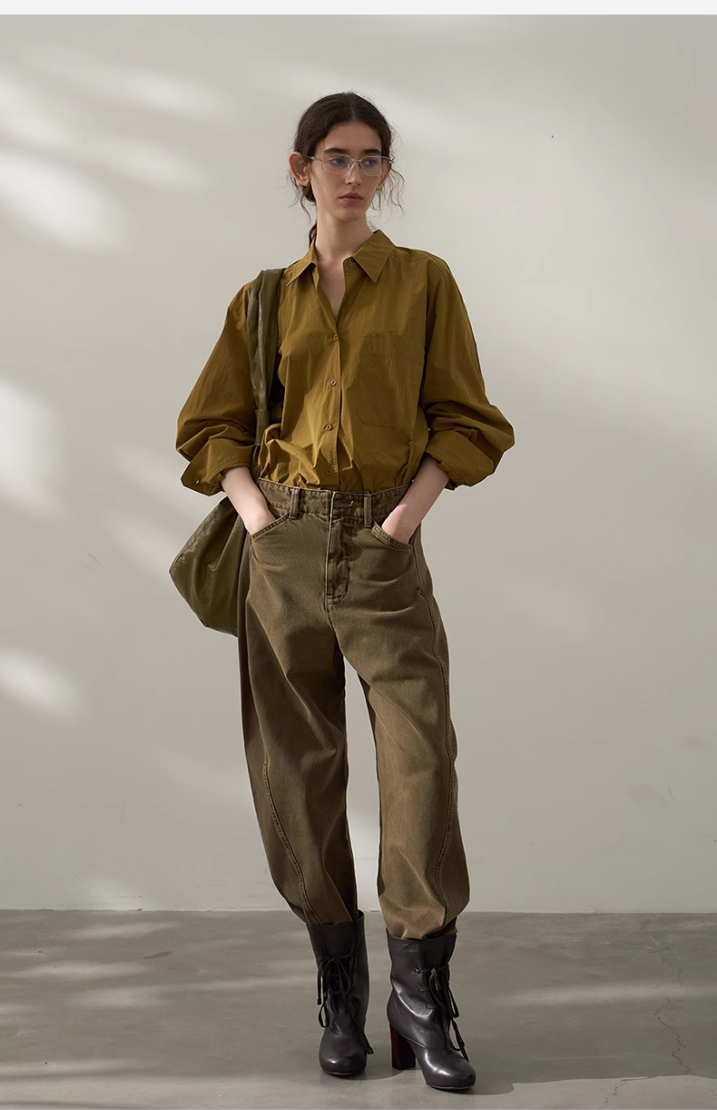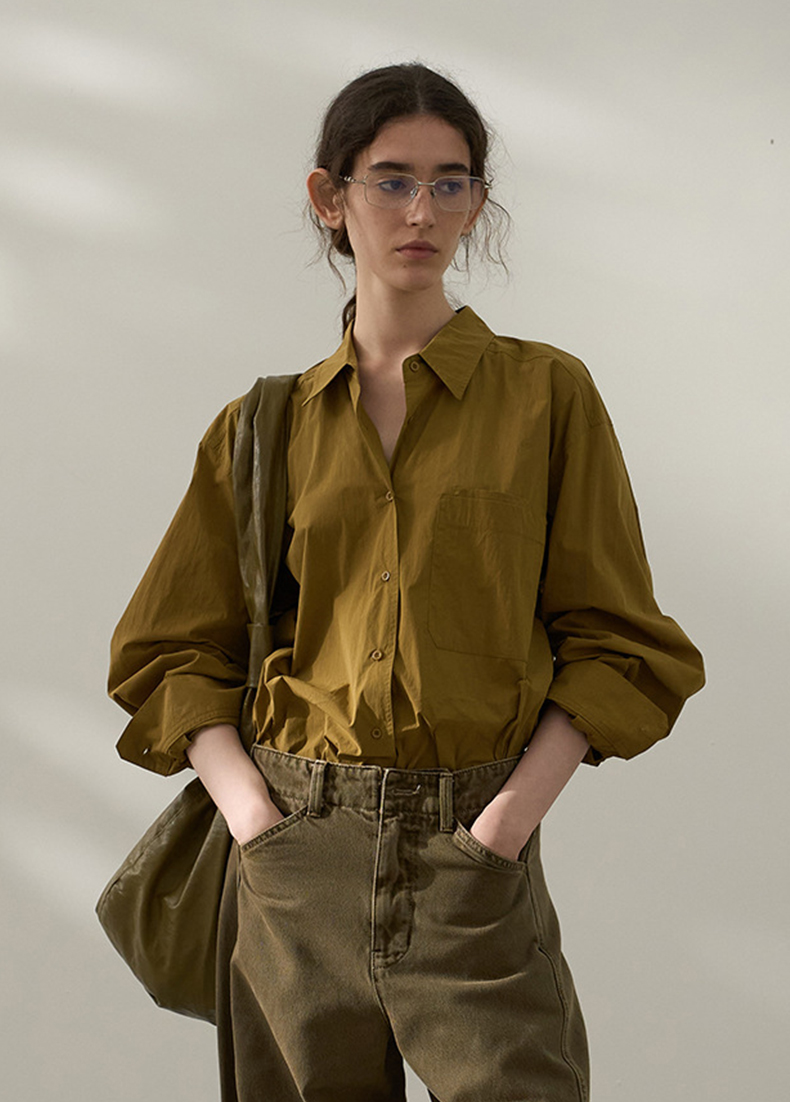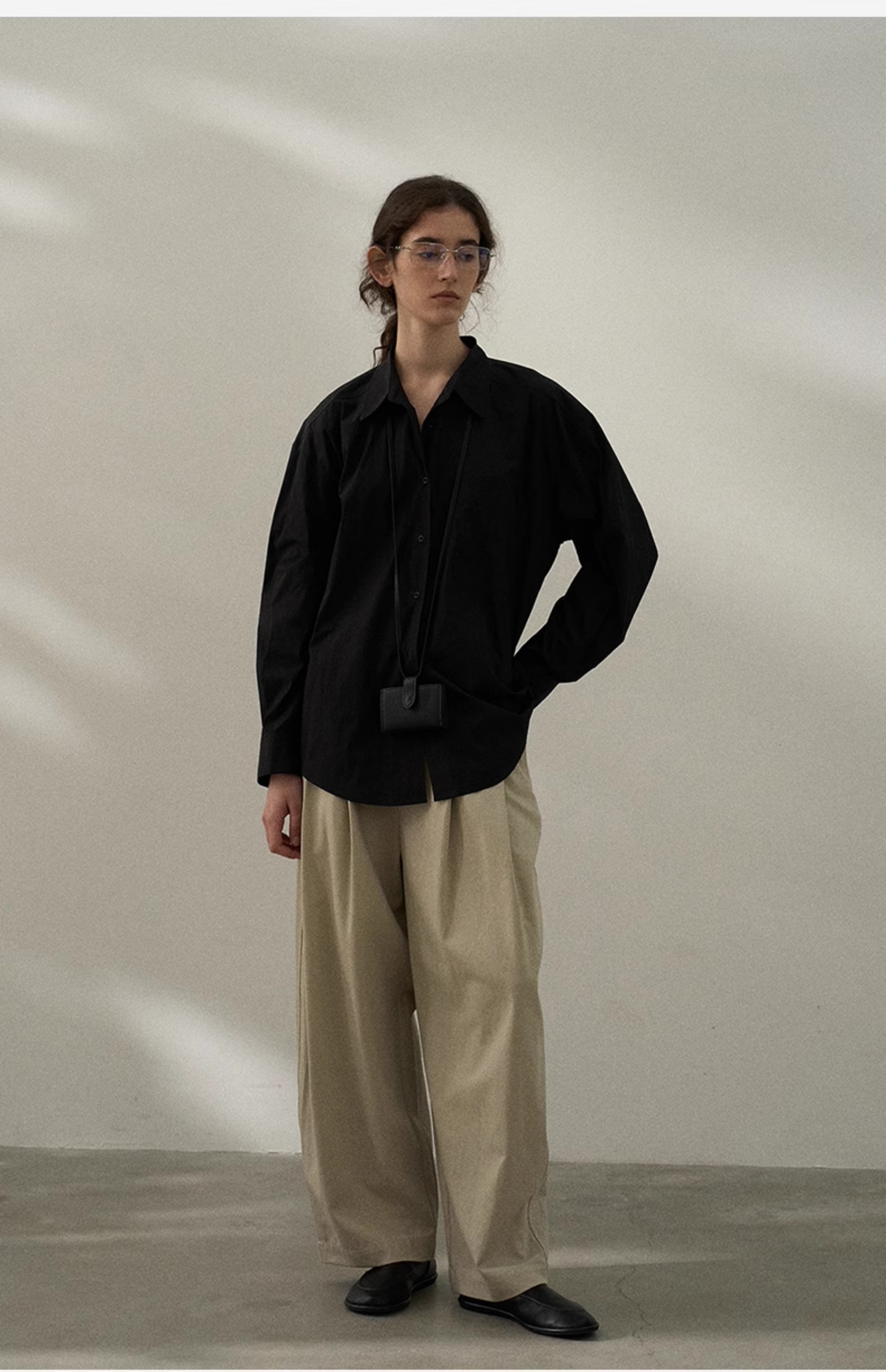 2025春季垂感黑衬衫女高级感黑色上衣oversize长袖衬衣宽松慵懒风