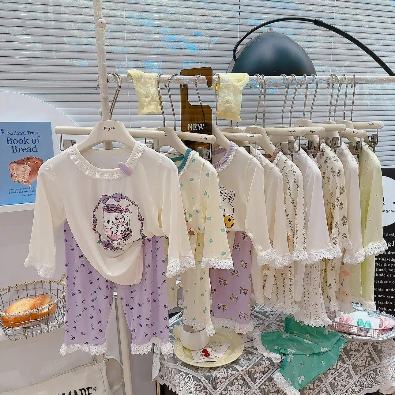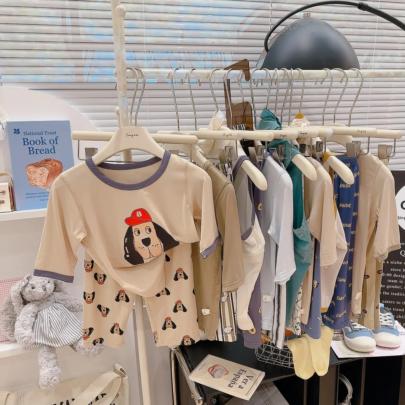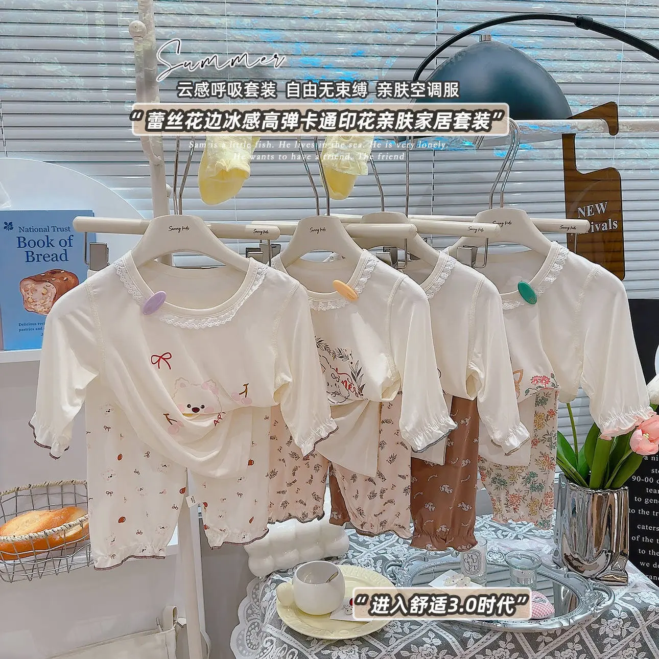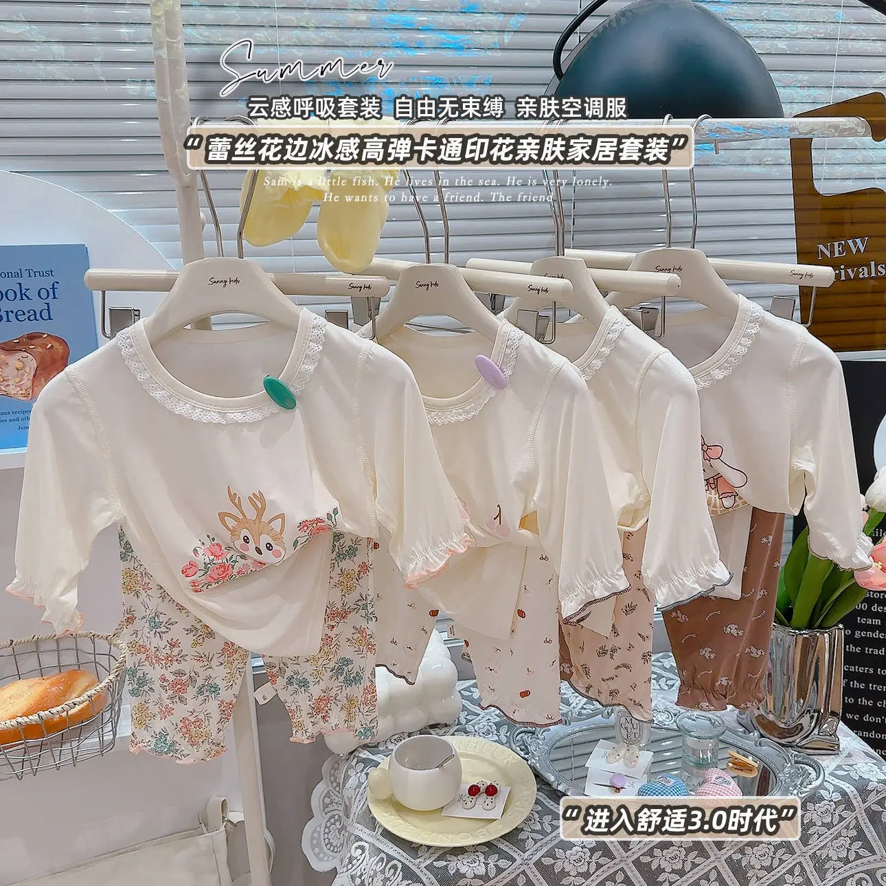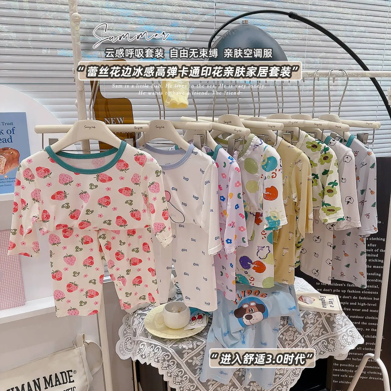夏季50支优可丝七分袖套装男女童家居服宝宝睡衣A类薄款空调服