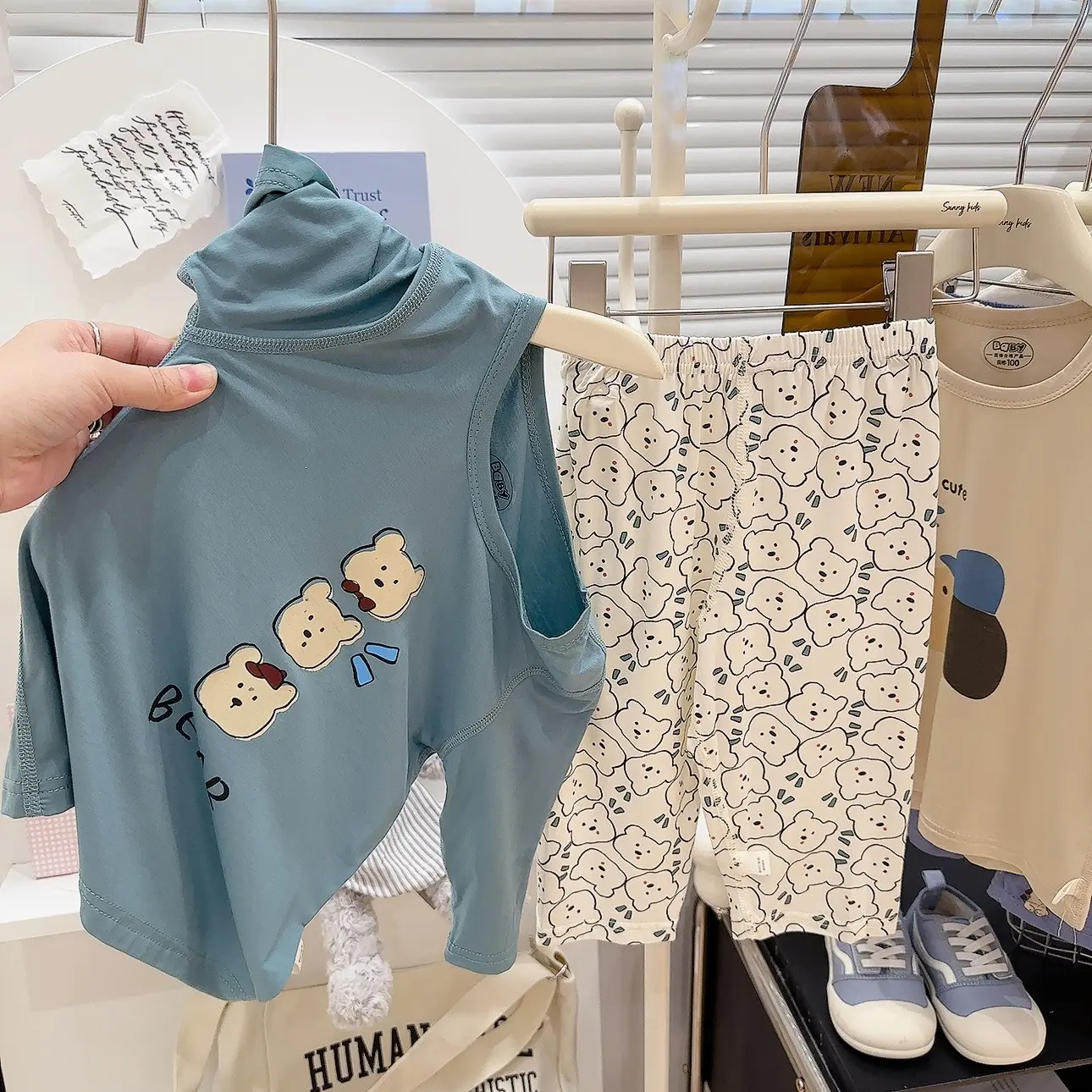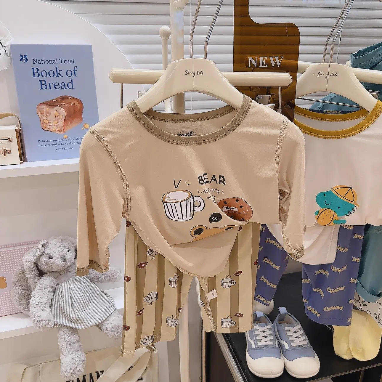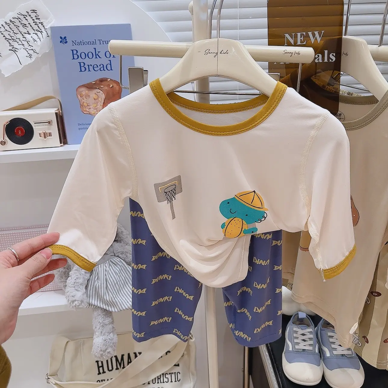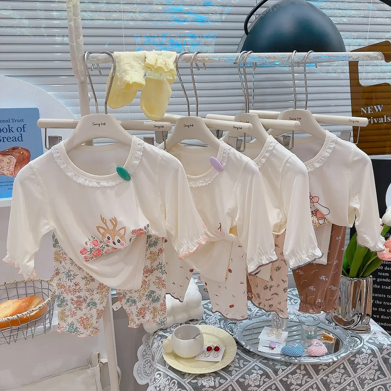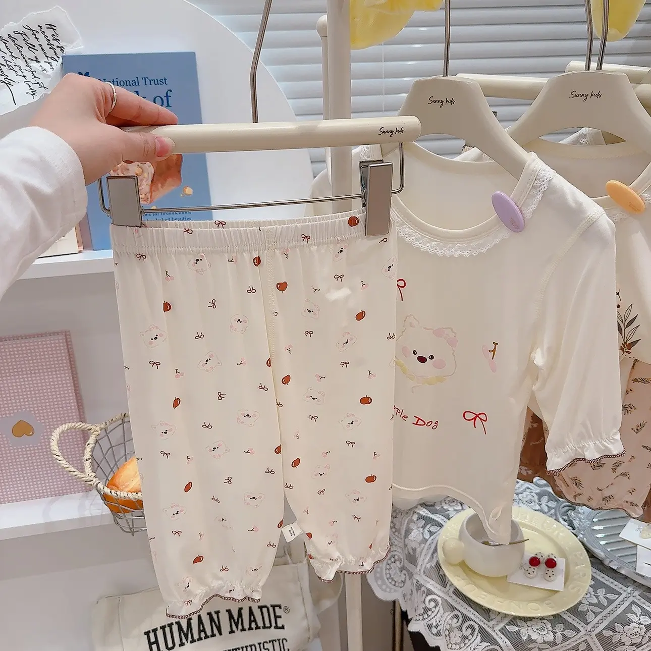 夏季50支优可丝七分袖套装男女童家居服宝宝睡衣A类薄款空调服