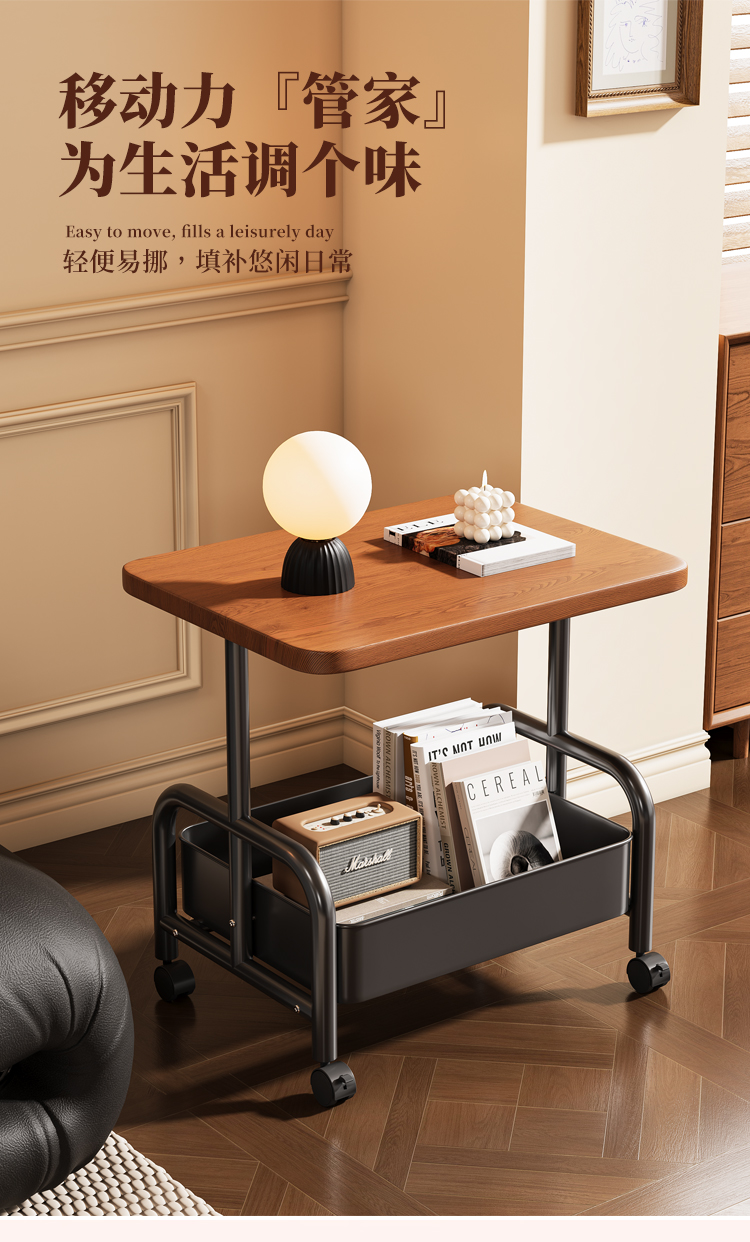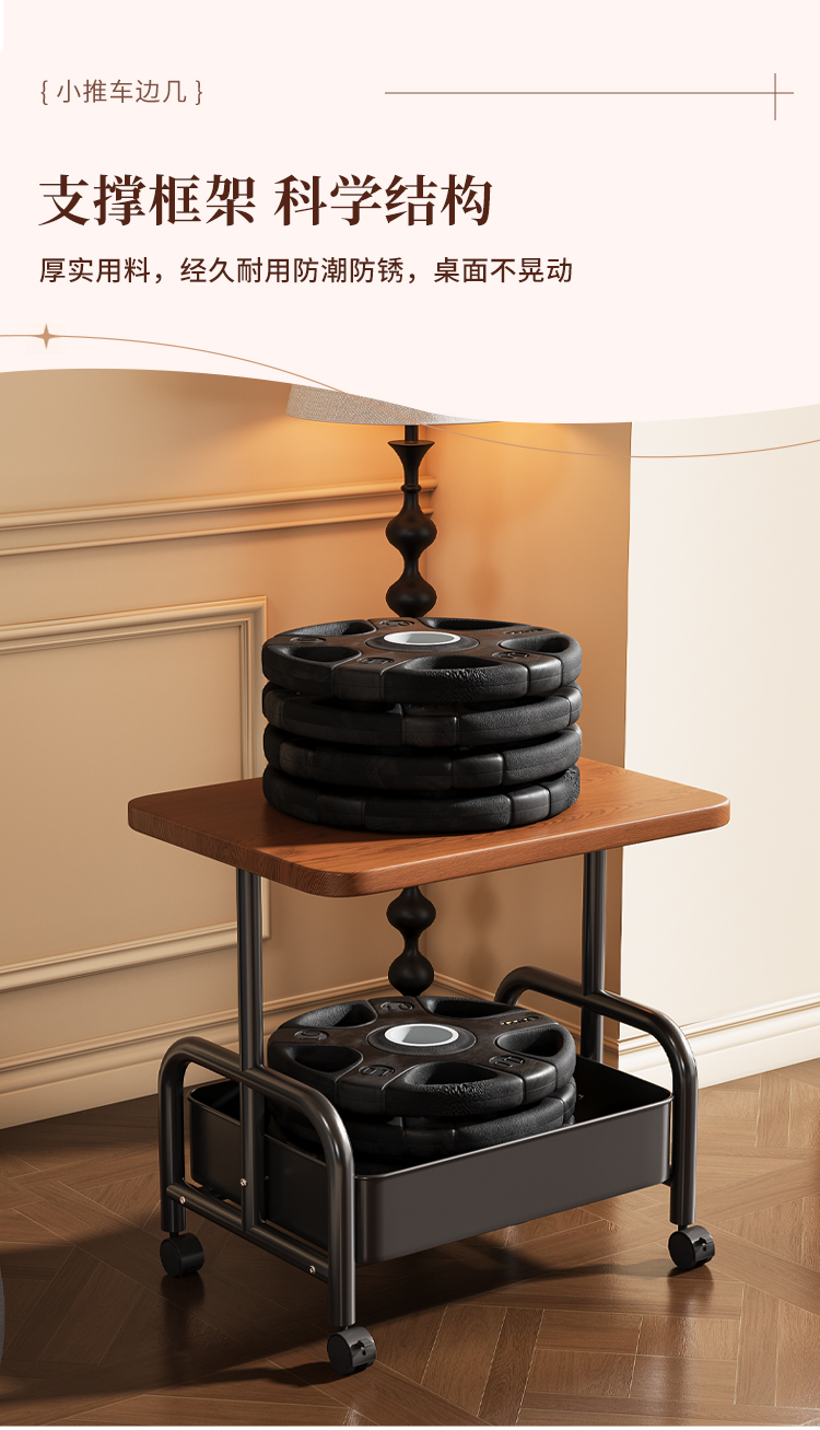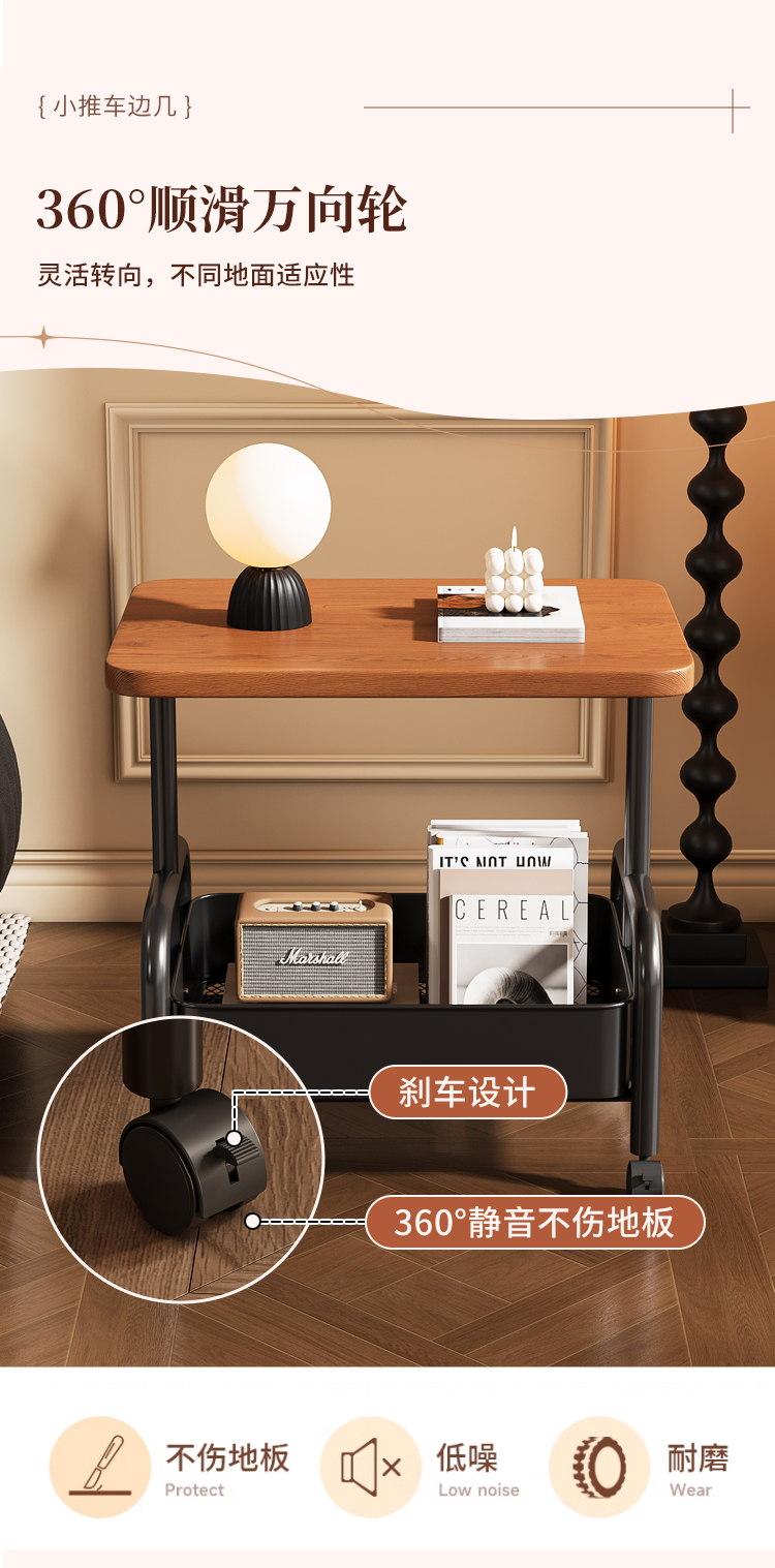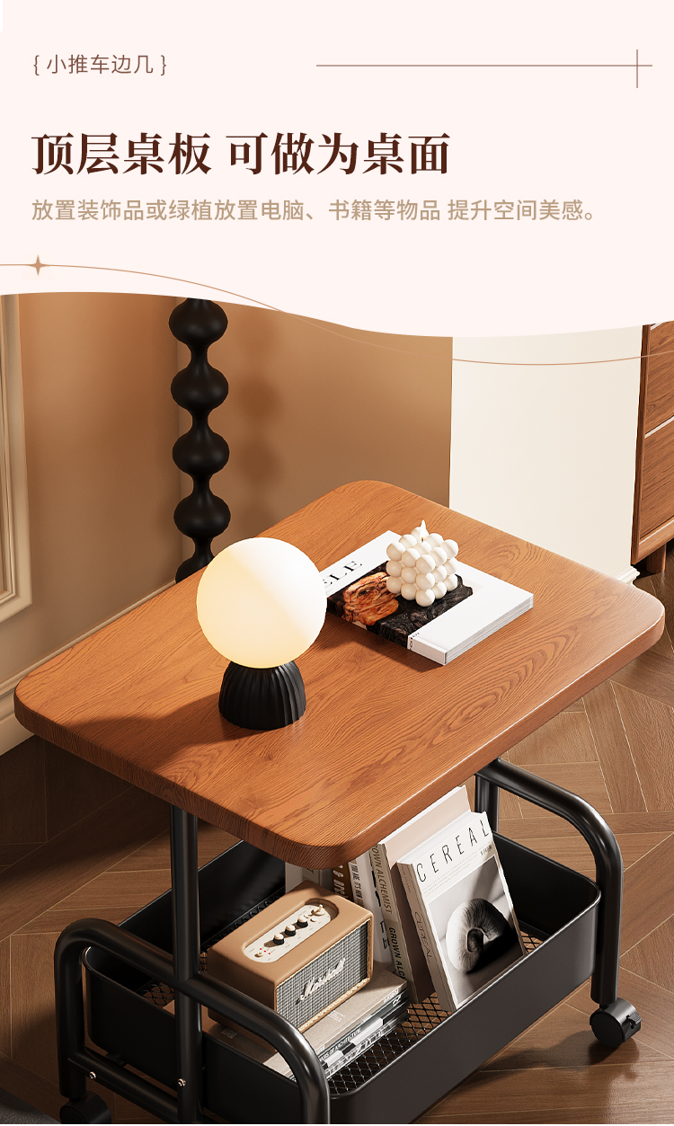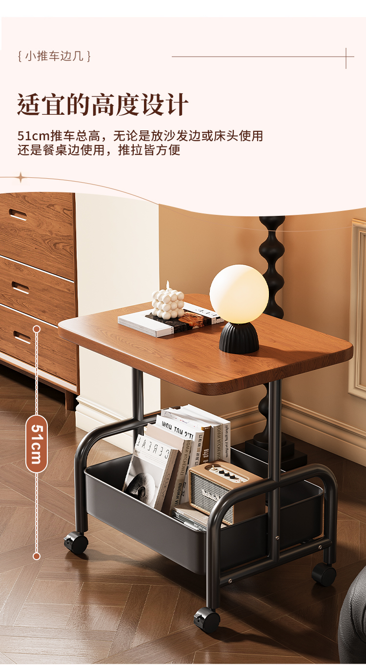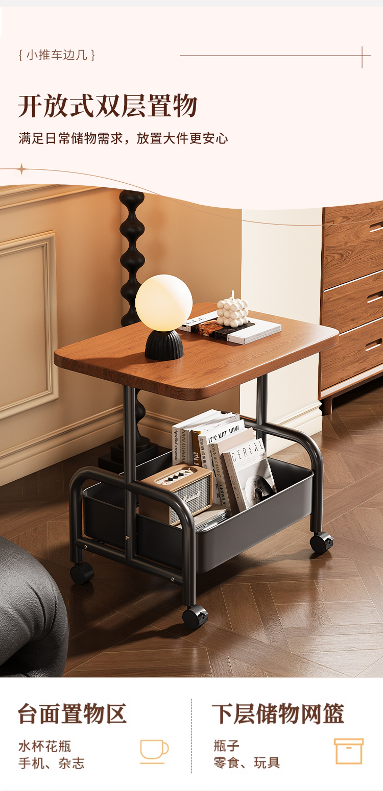 中古小推车零食置物架复古可移动推拉茶几客厅沙发边几床头柜多层