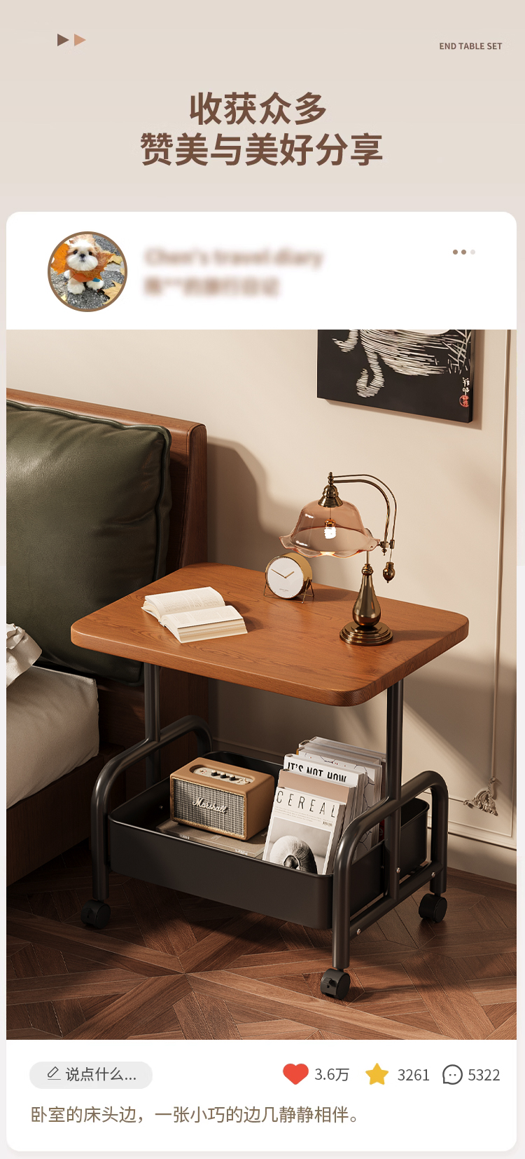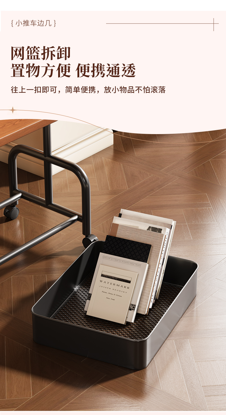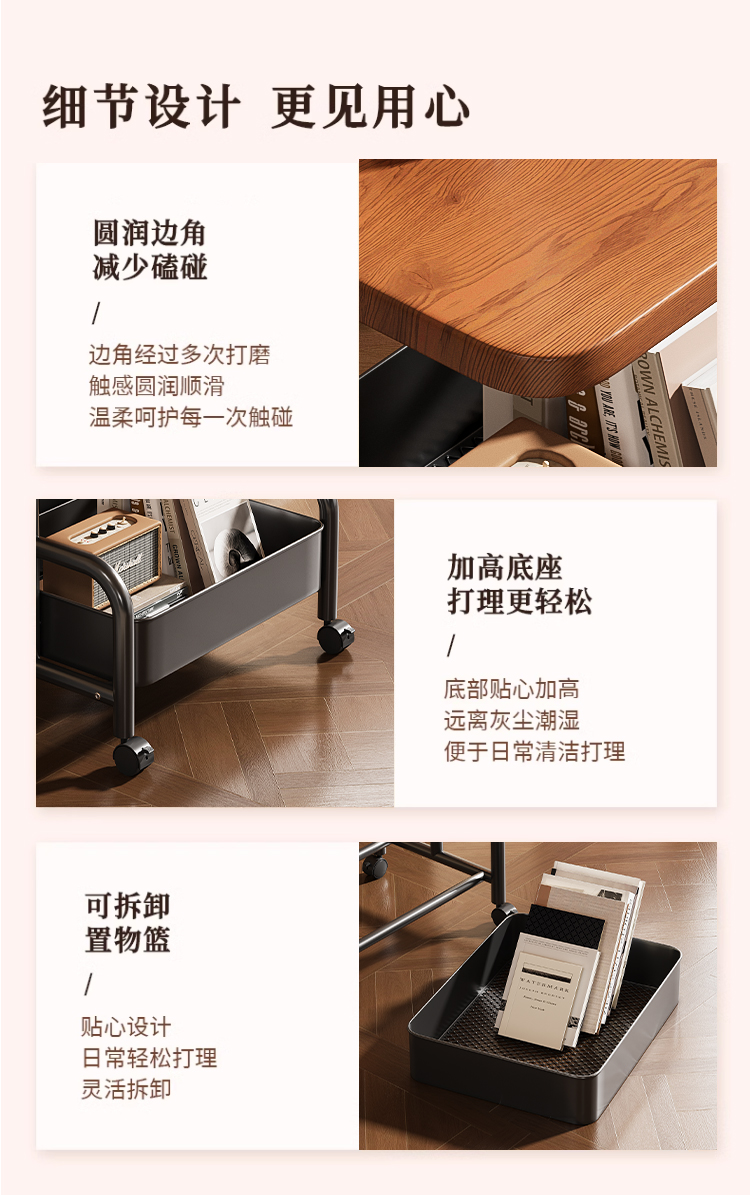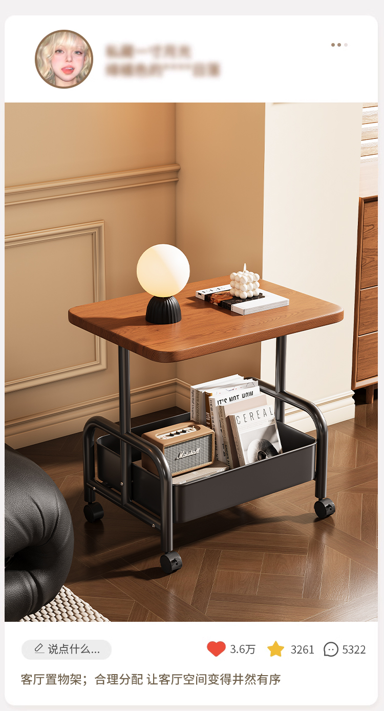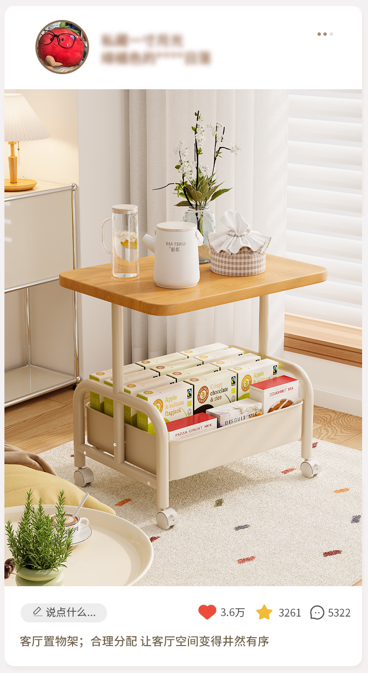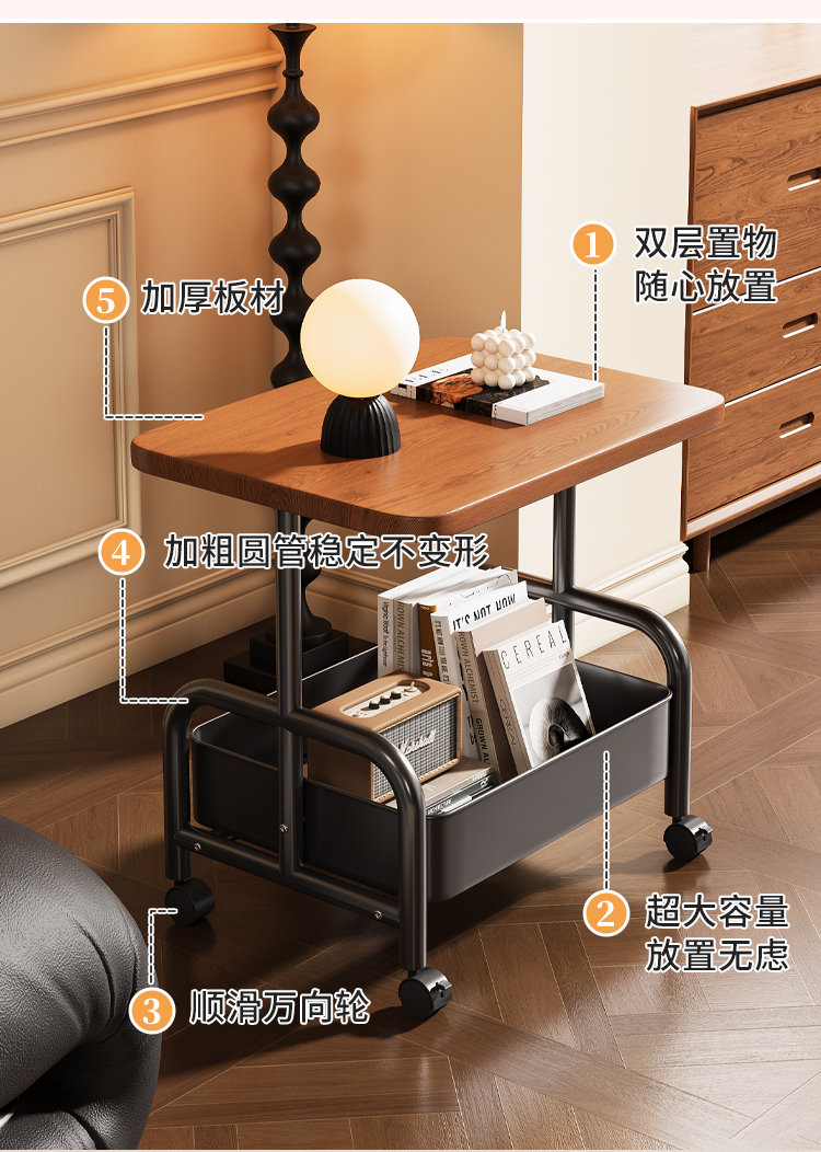 中古小推车零食置物架复古可移动推拉茶几客厅沙发边几床头柜多层