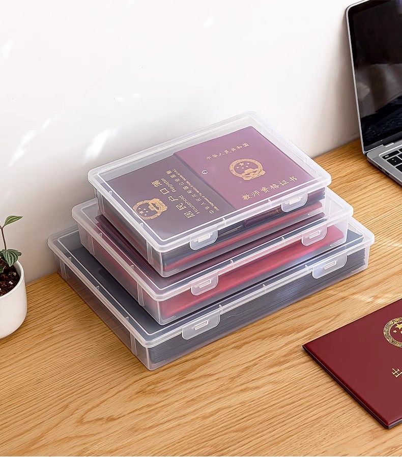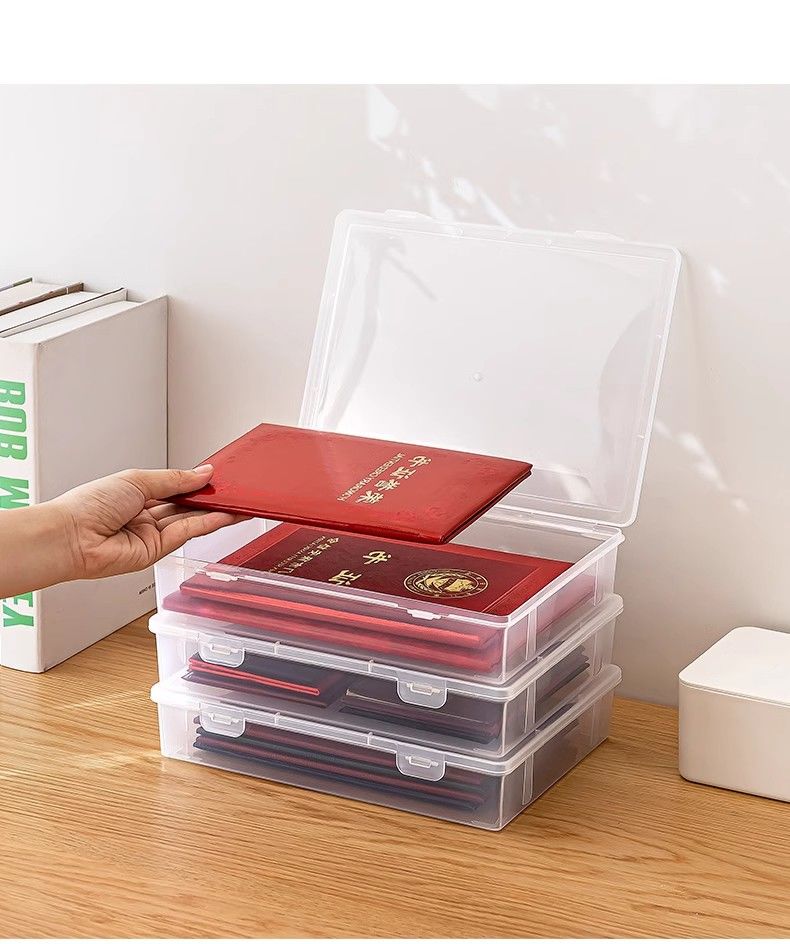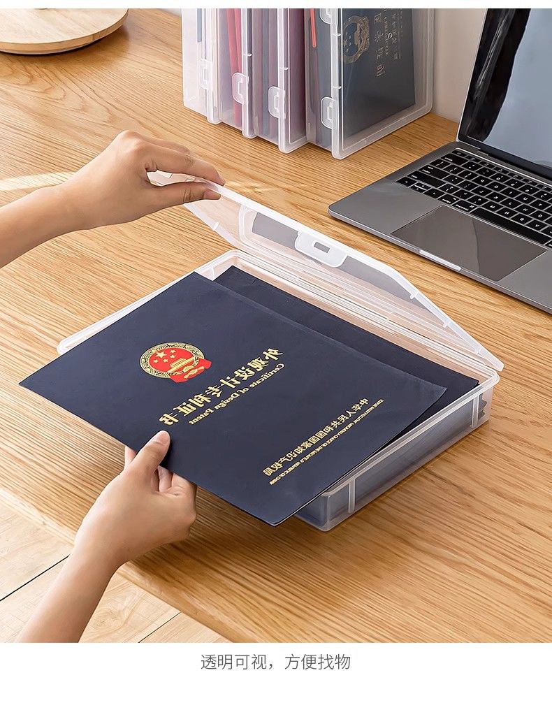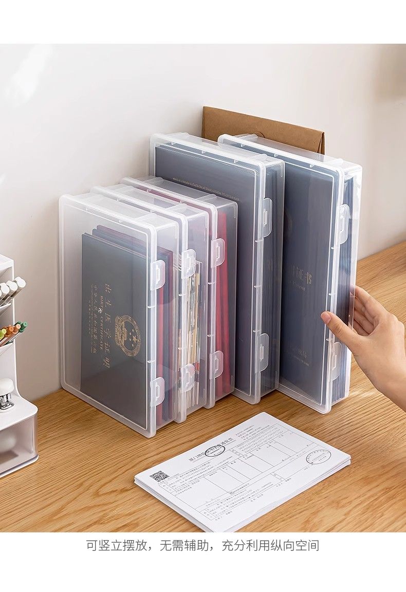 证件收纳盒家用证书a4文件资料收纳包家庭大容量透明桌面收纳盒