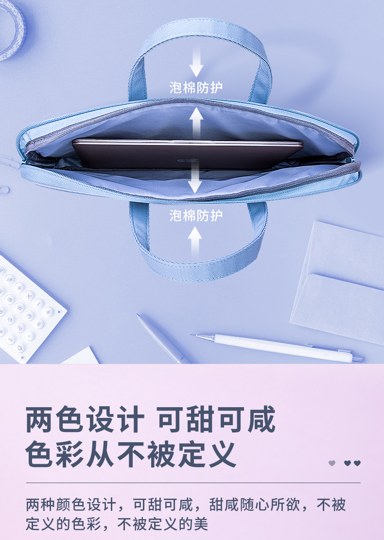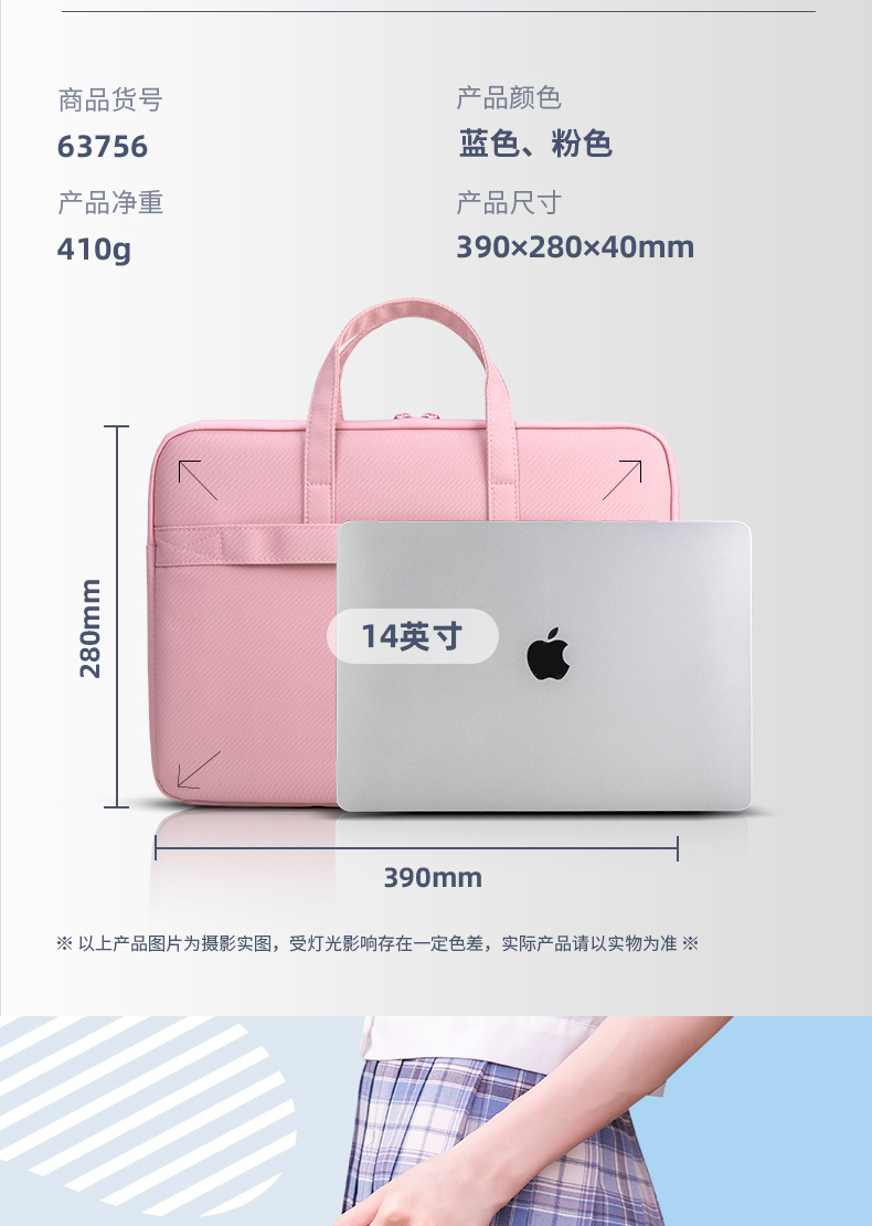 得力手提电脑包女14寸苹果笔记本macbook内胆15.6寸文件公文包