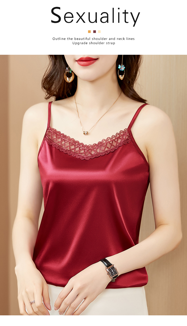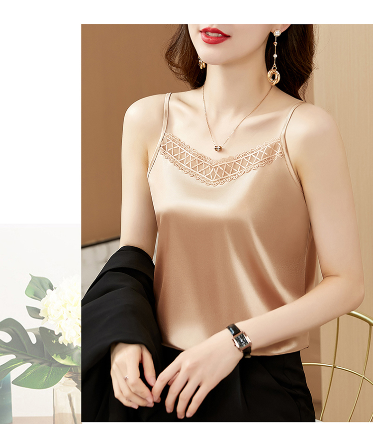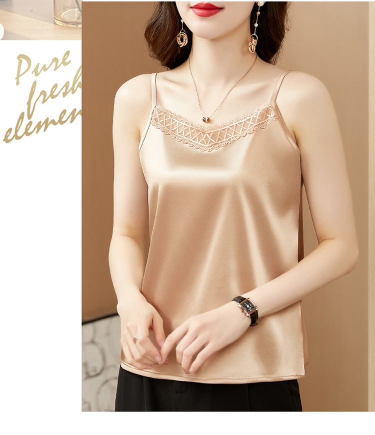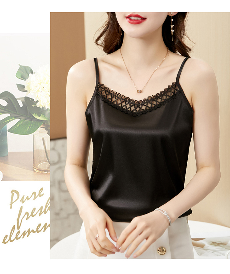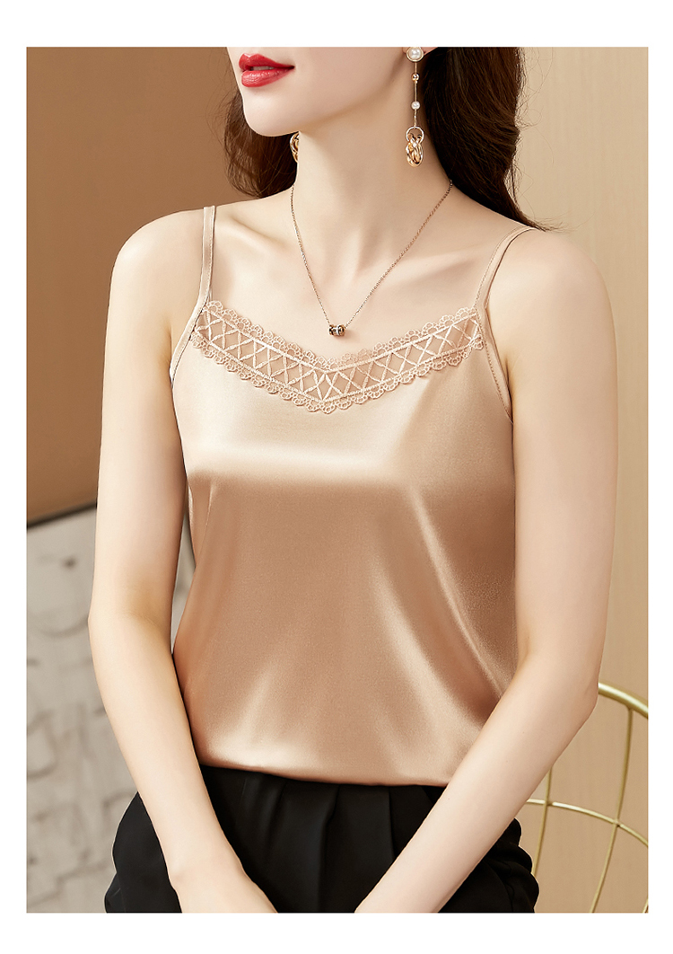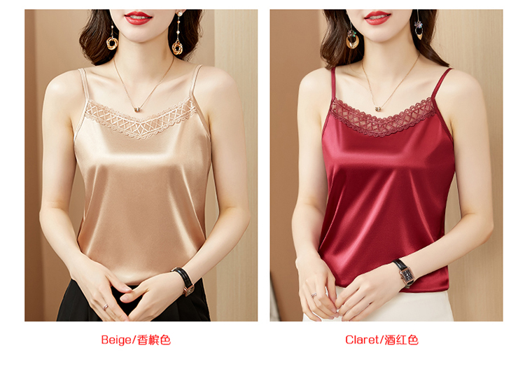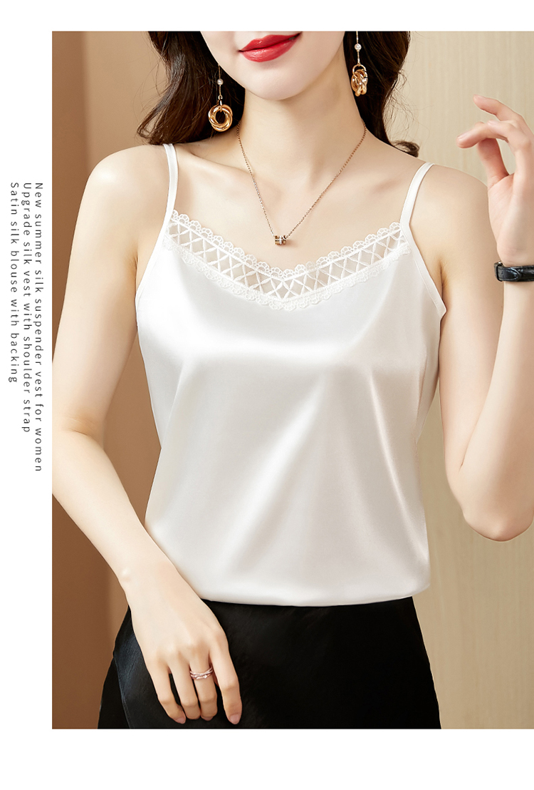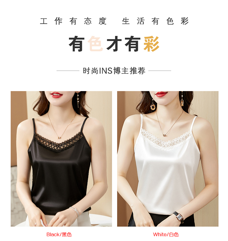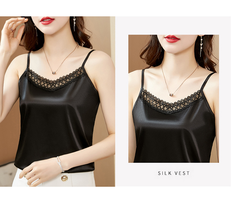 蕾丝拼接小吊带背心女内搭西装缎面打底衫春夏季外穿无袖真丝上衣