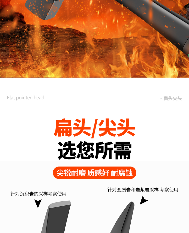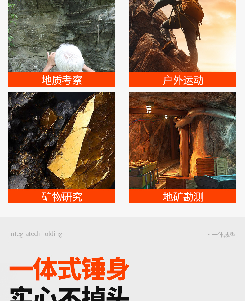 专业级地质锤勘探锤钣金锤多功能家用尖头平头锤采石矿登山锤子