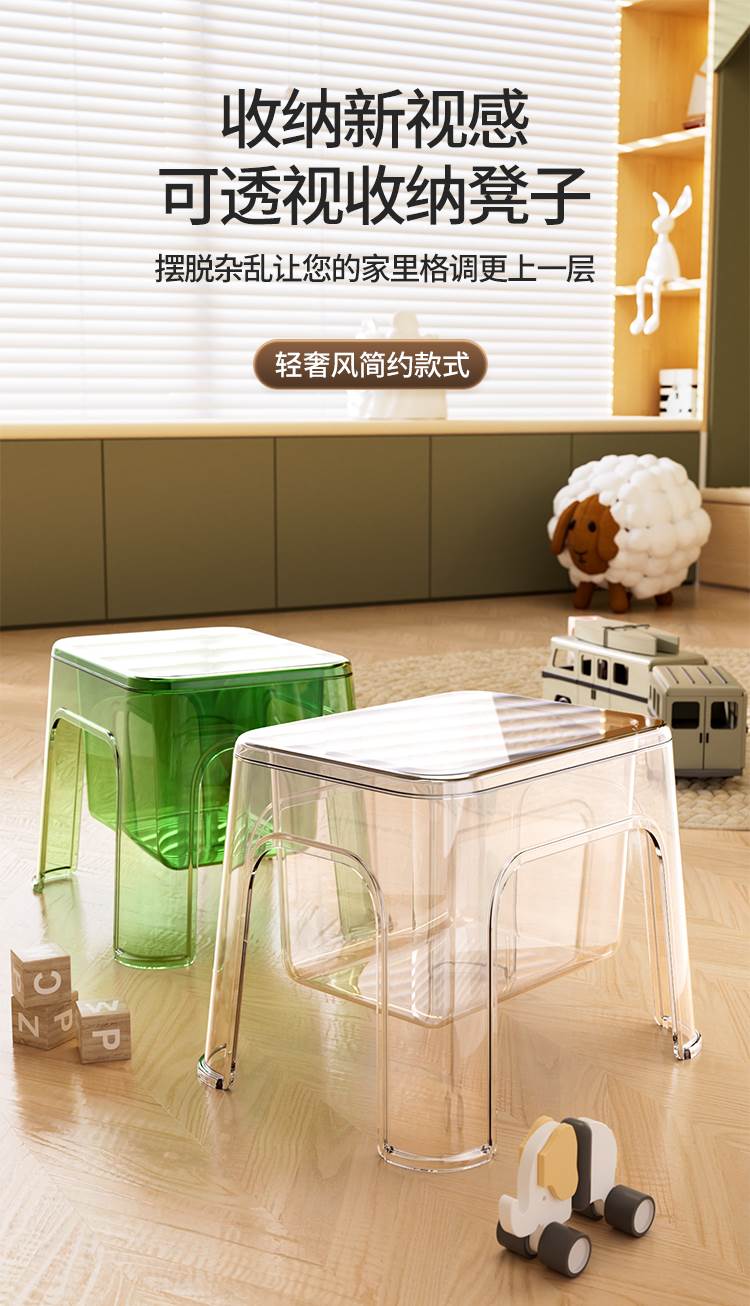 亚克力透明收纳凳子家用客厅浴室宠物用品洗漱儿童加厚储物