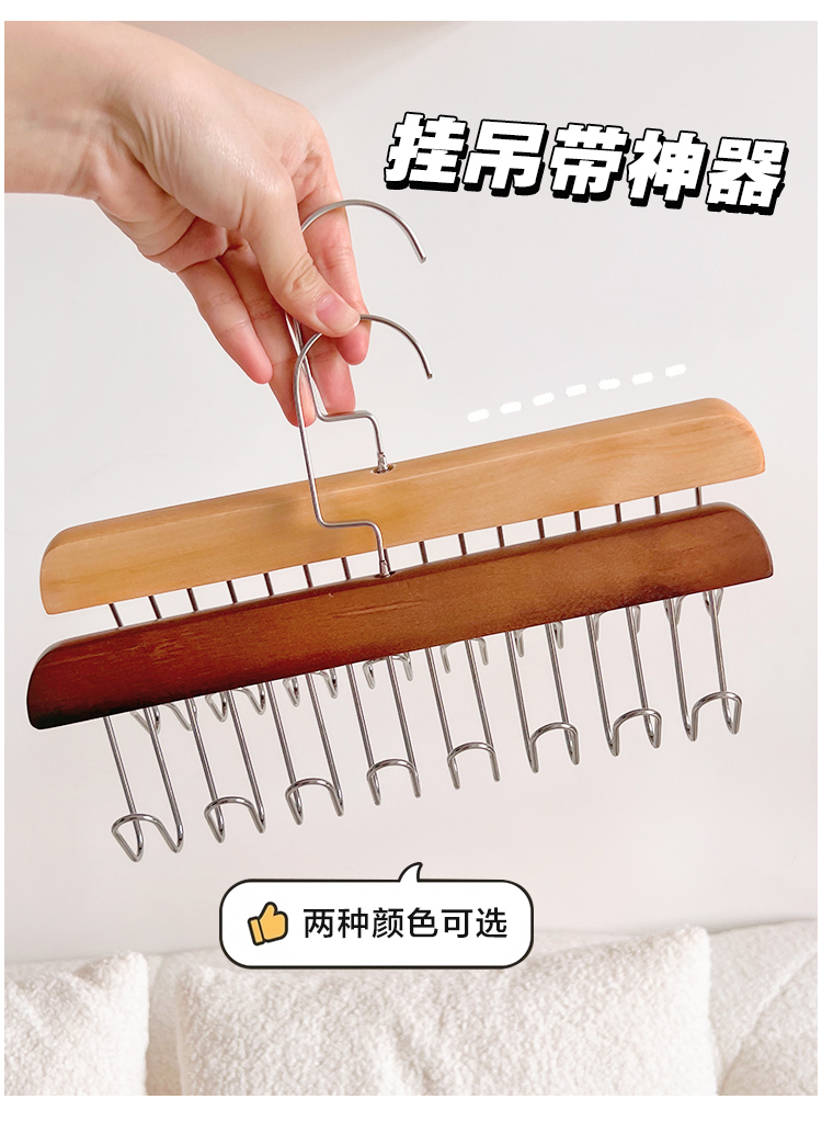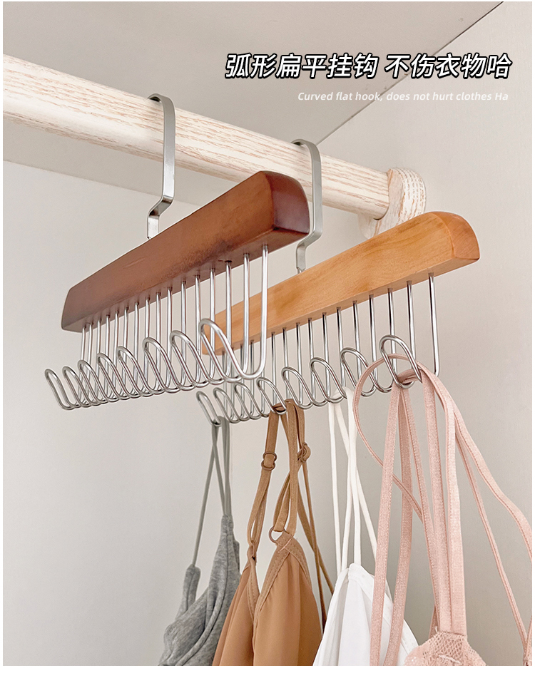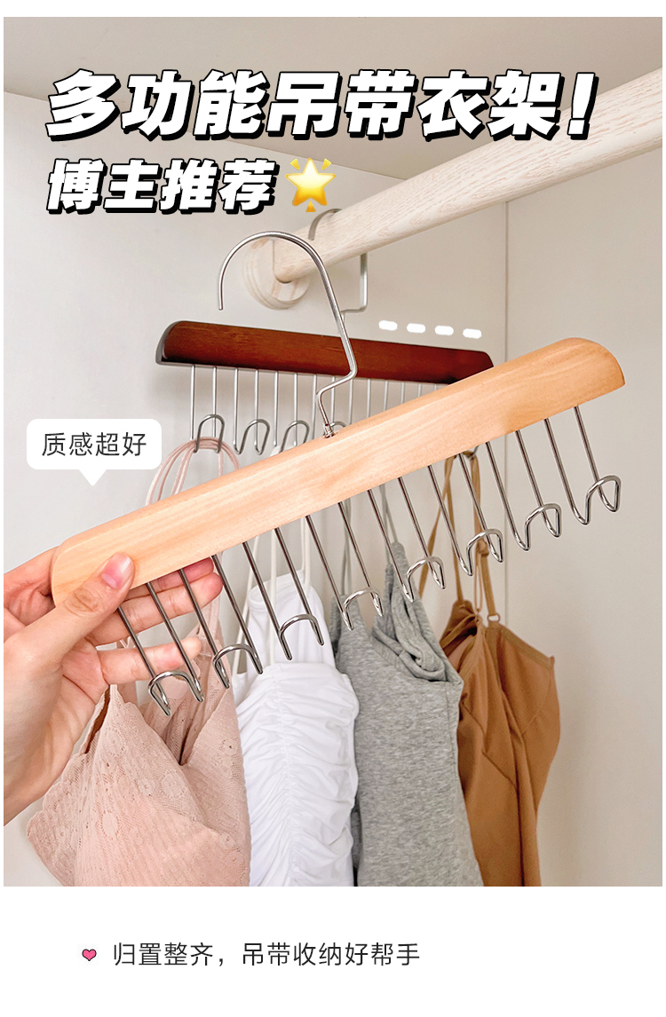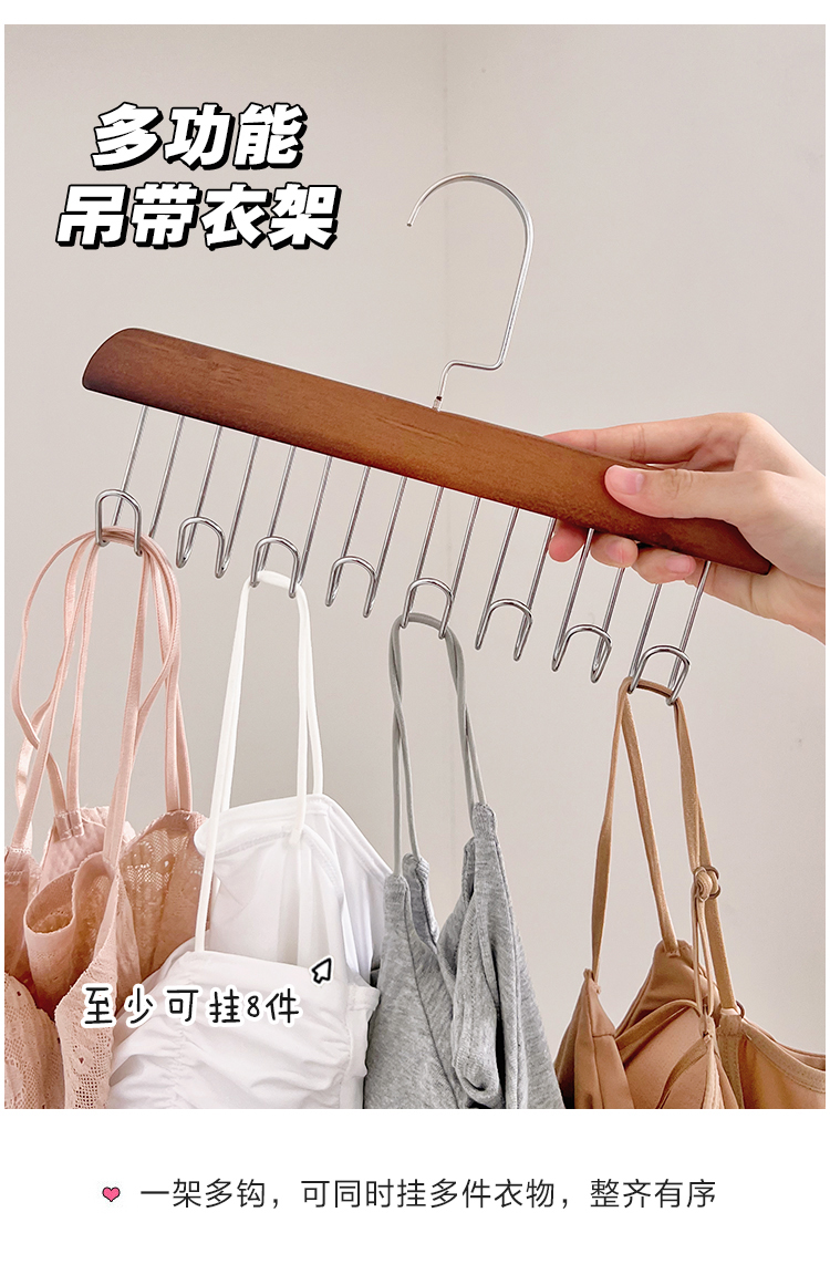 木质吊带衣架多功能内衣背心收纳神器家用宿舍实木挂钩波浪晾衣架