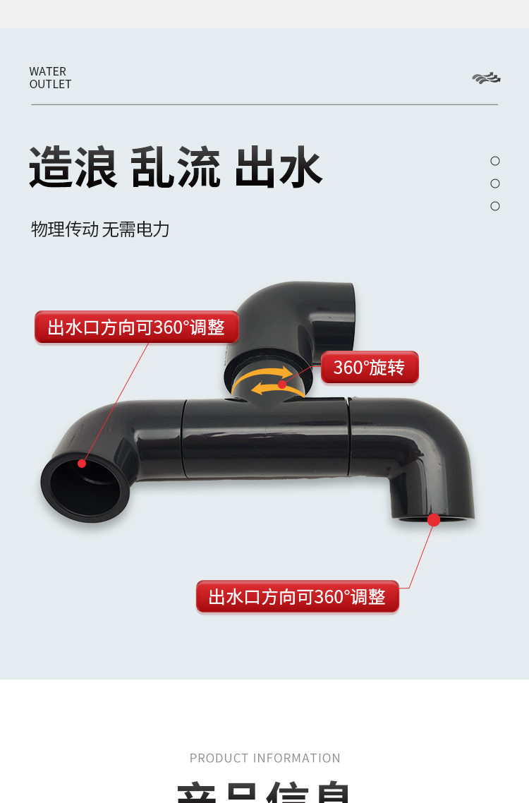 直角 背包 侧溢流缸专用出水口鱼缸无动力旋转双鸭嘴口淡海水通用