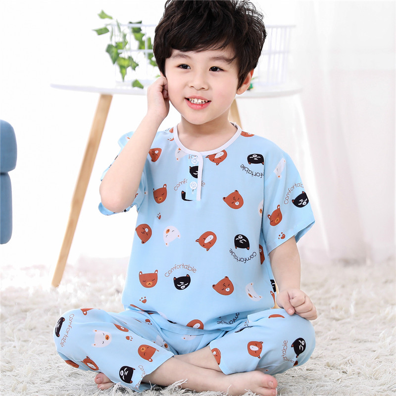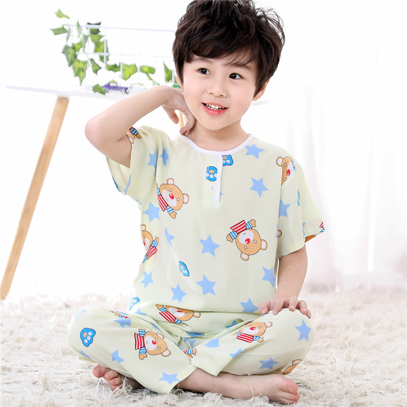 儿童绵绸睡衣短袖长裤夏季宝宝绵绸男孩女童空调服家居服套装薄款