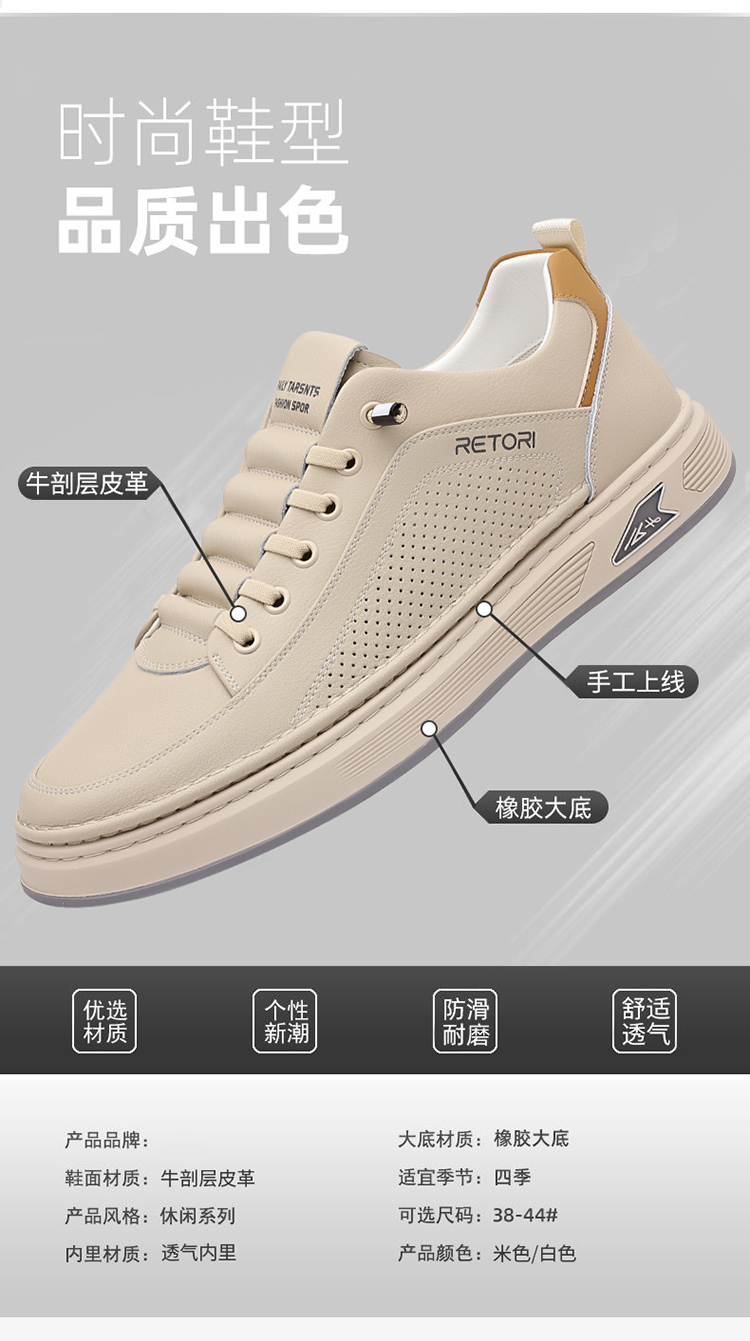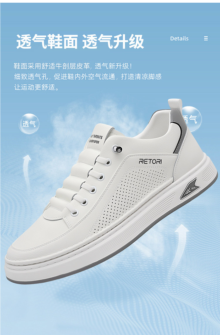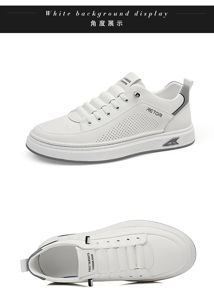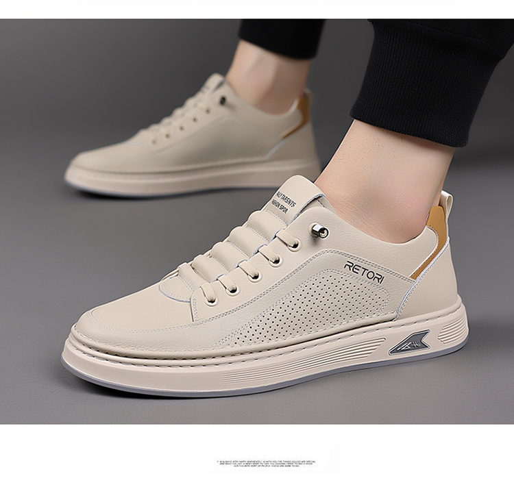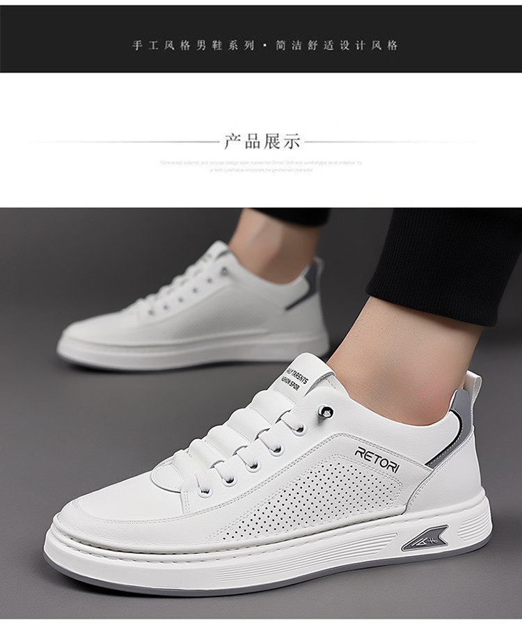 2025新款夏季透气休闲皮鞋男士平板鞋镂空真皮小白鞋男款百搭男鞋