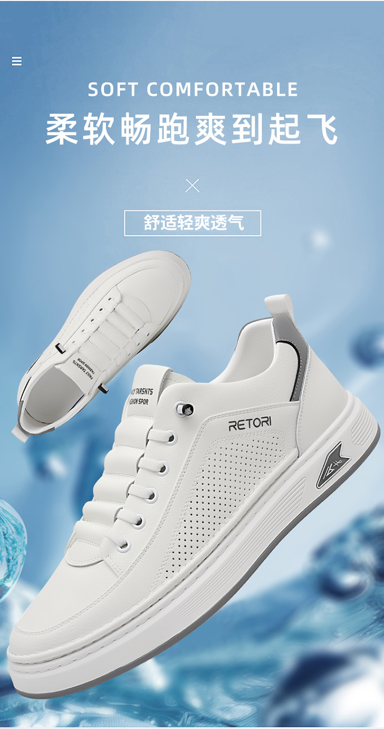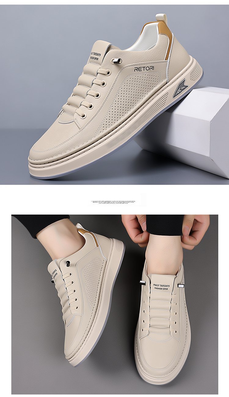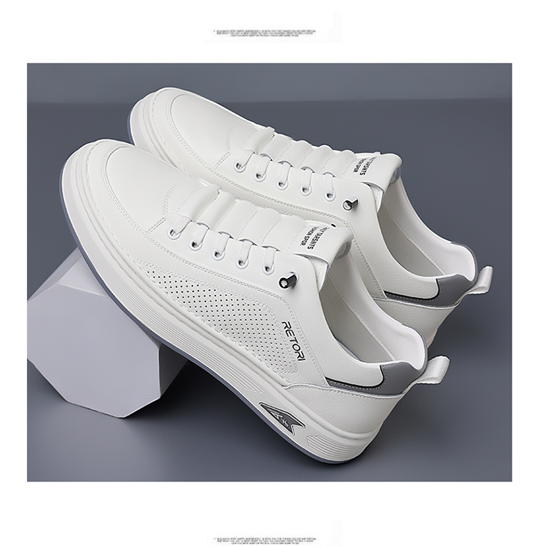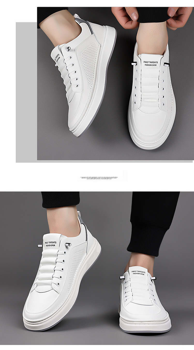 2025新款夏季透气休闲皮鞋男士平板鞋镂空真皮小白鞋男款百搭男鞋
