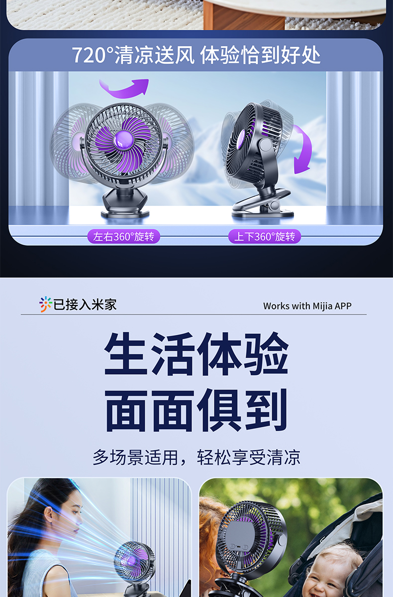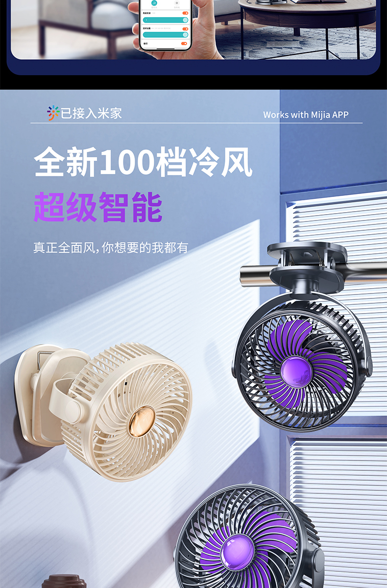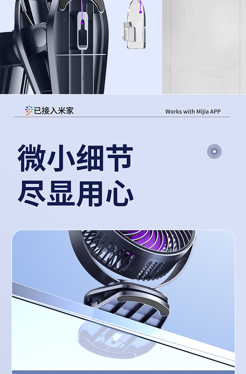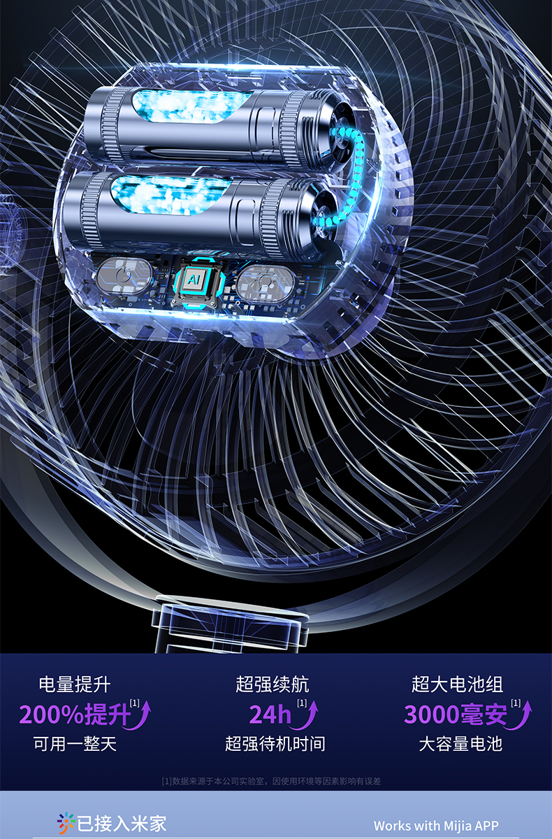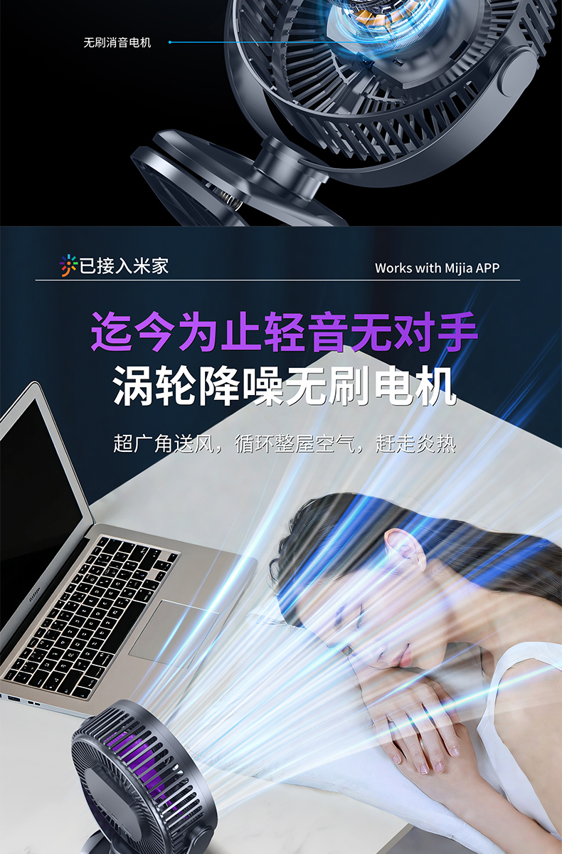 已接入米家智能APP小风扇桌面电风扇小型家用静音办公室桌面上usb充电迷你宿舍学生超长续航便携式制冷空调扇