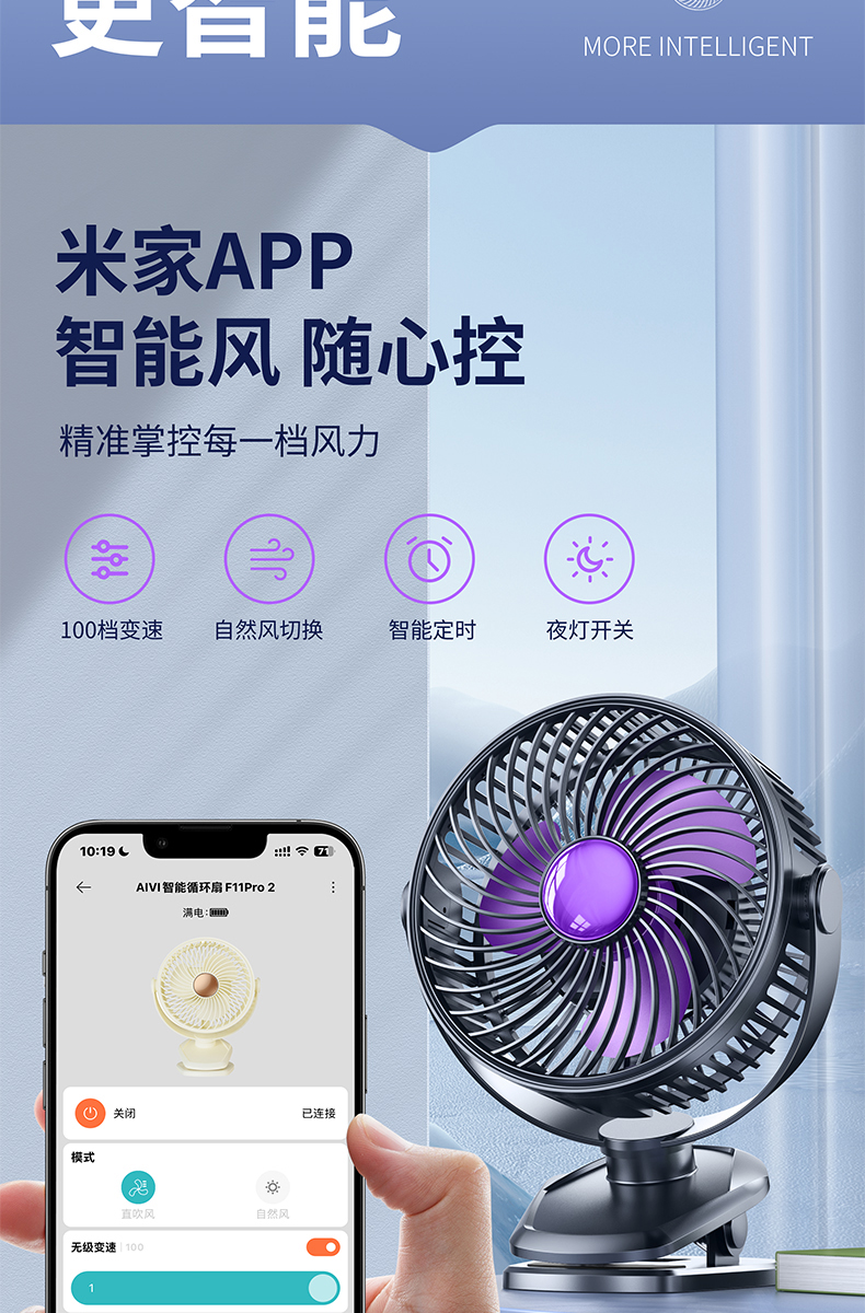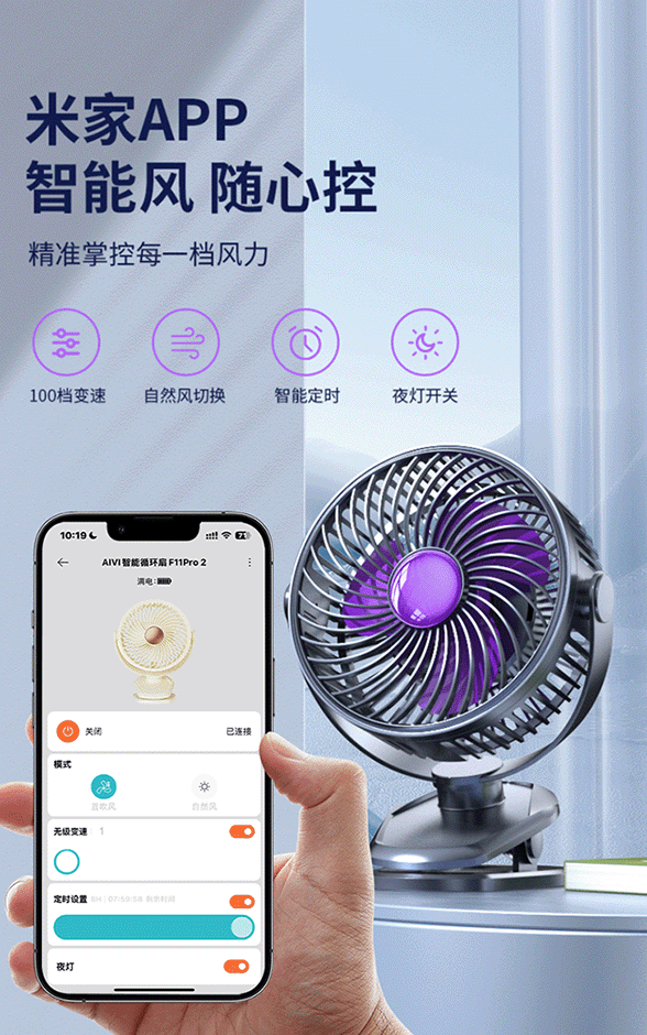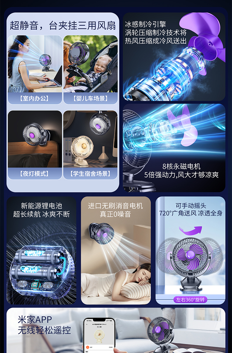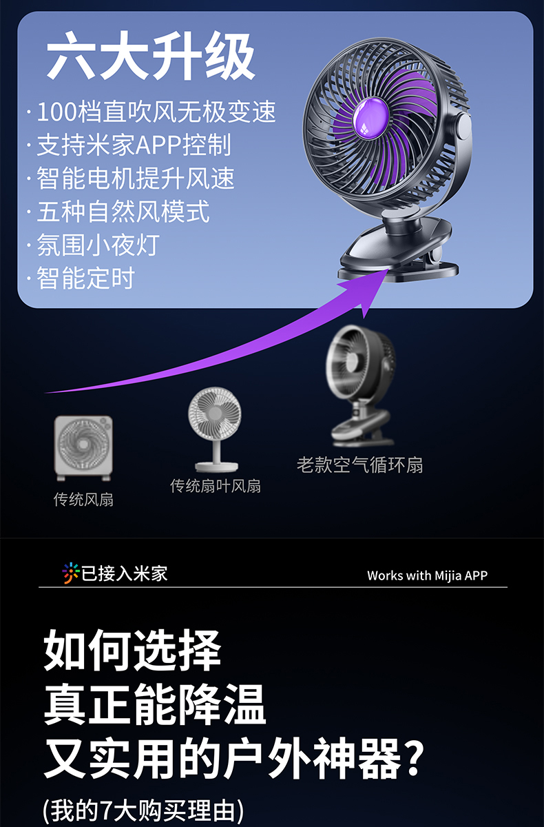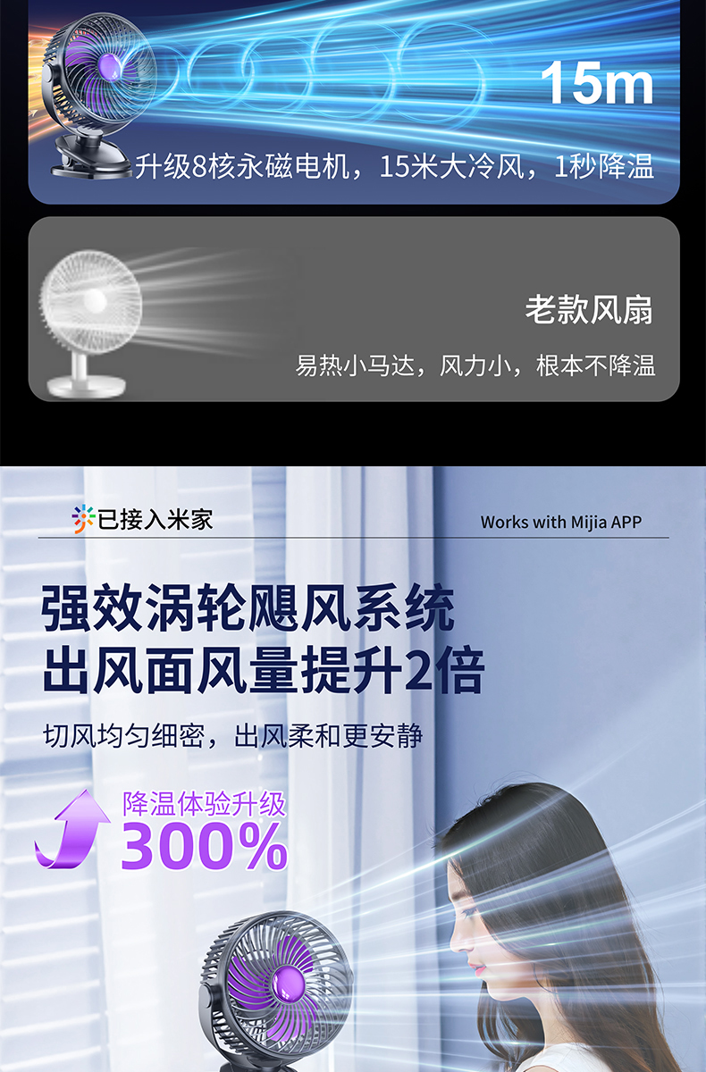 已接入米家智能APP小风扇桌面电风扇小型家用静音办公室桌面上usb充电迷你宿舍学生超长续航便携式制冷空调扇