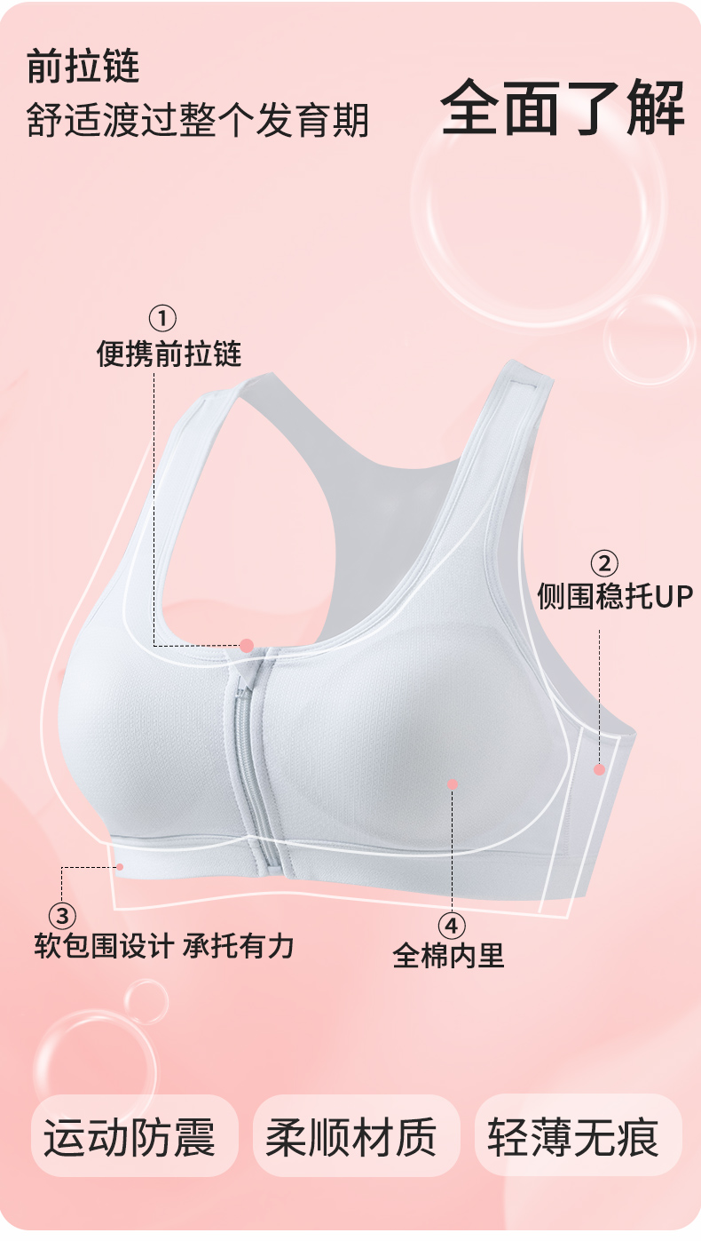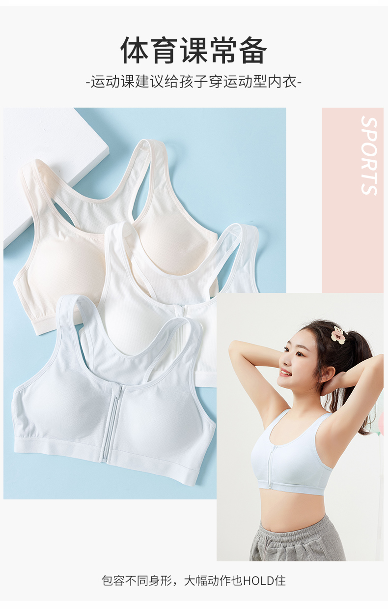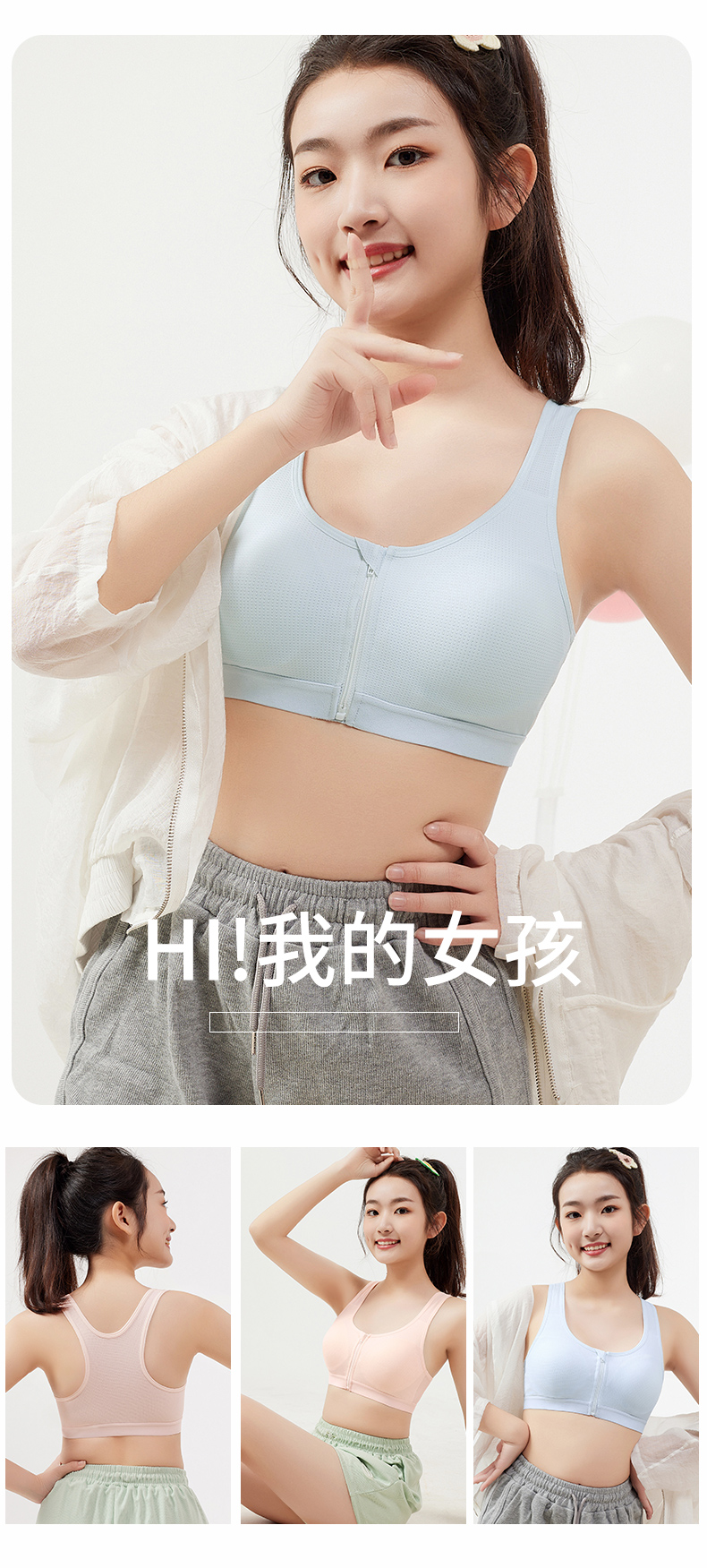 少女内衣初中生青春发育期前扣拉链高中生文胸女童运动防震小背心