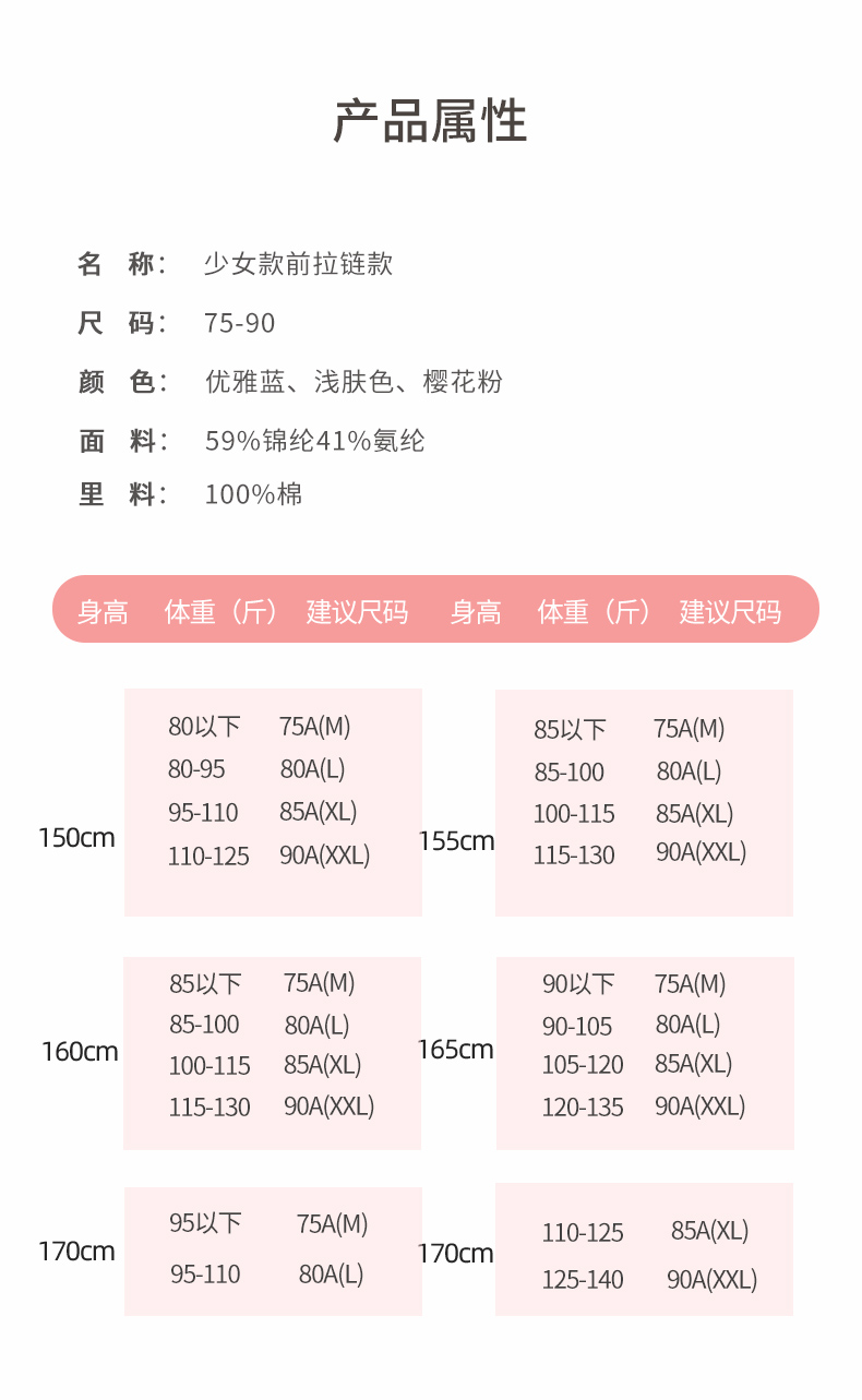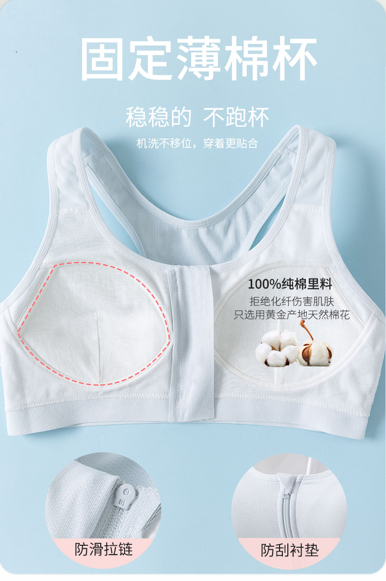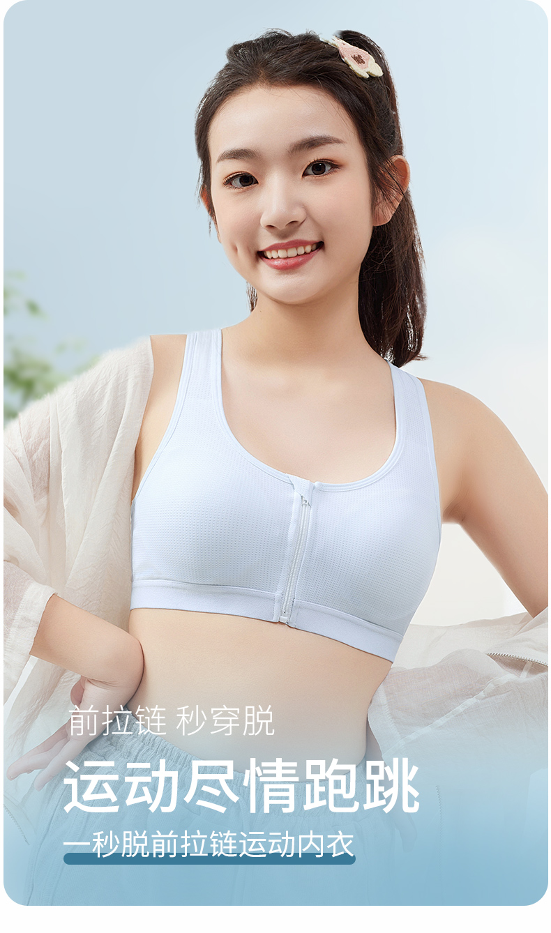 少女内衣初中生青春发育期前扣拉链高中生文胸女童运动防震小背心