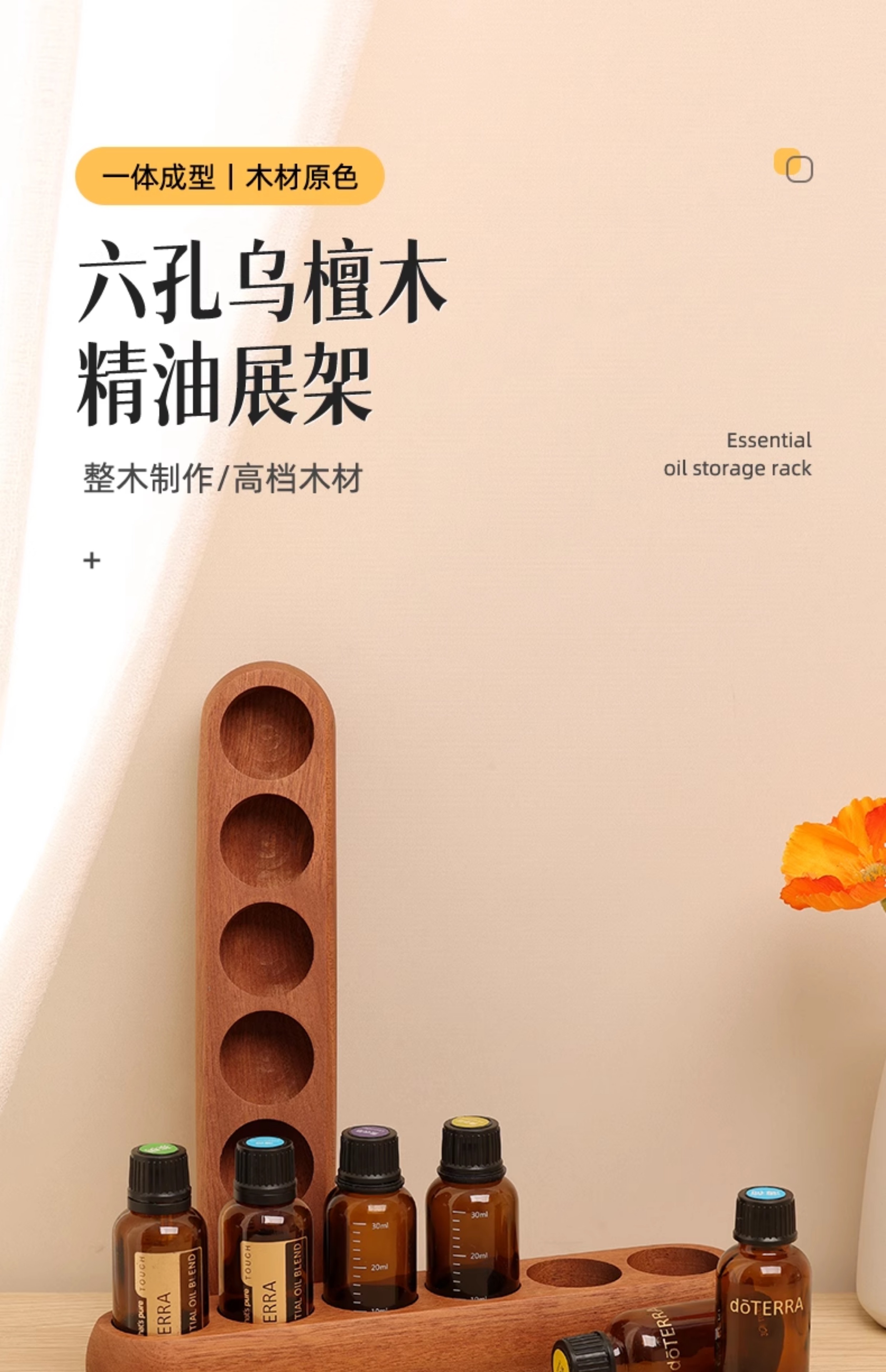 六孔乌檀木精油展示架桌面整理化妆品收纳盒精油瓶椰子油多特瑞