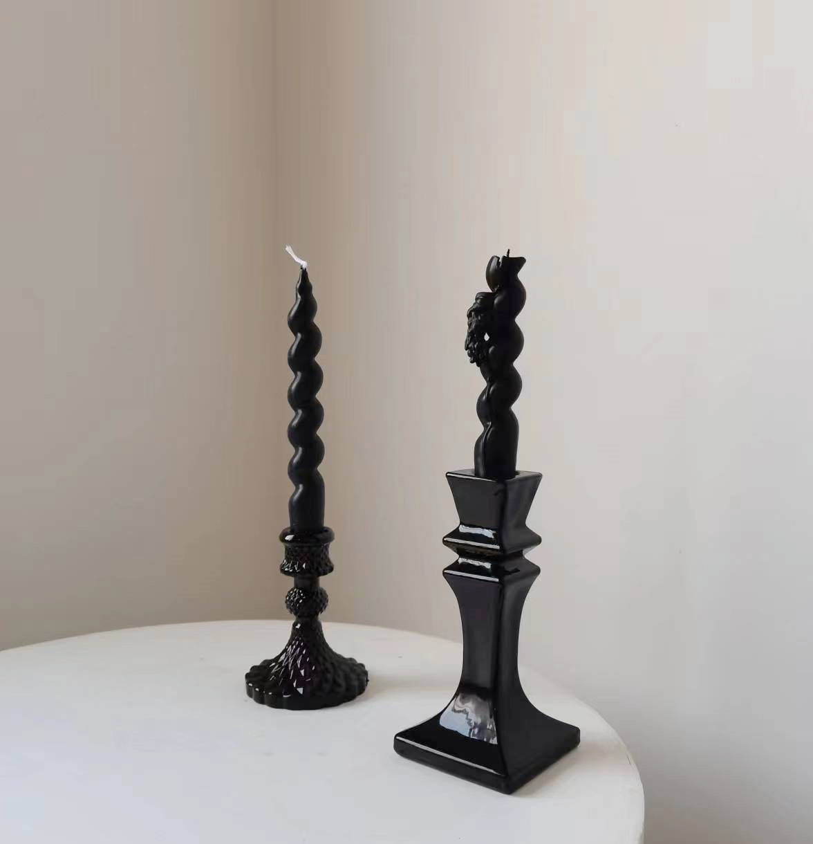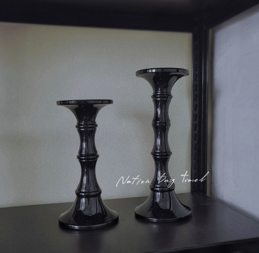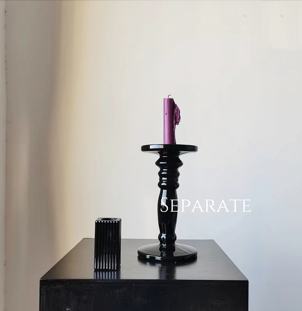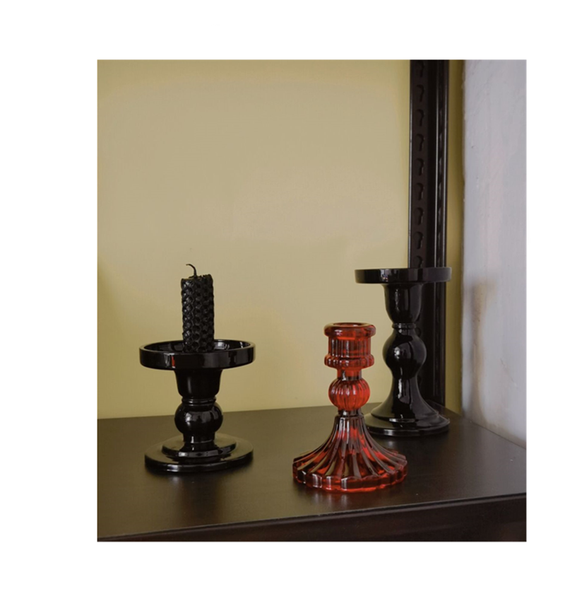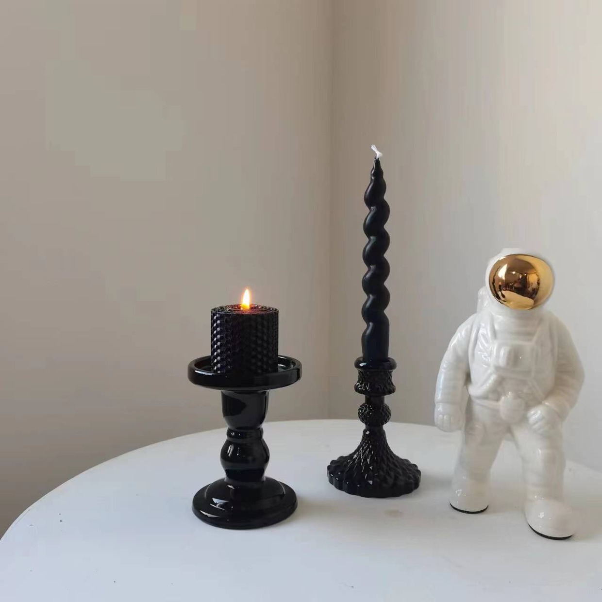 中古水晶黑色蜡烛台玻璃浪漫烛光晚餐婚庆拍摄道具INS风格