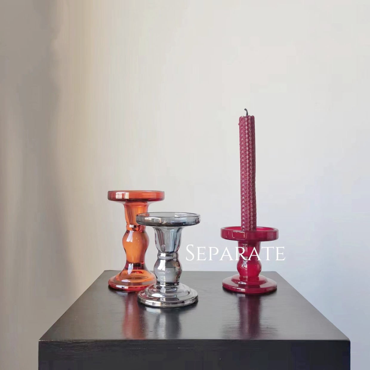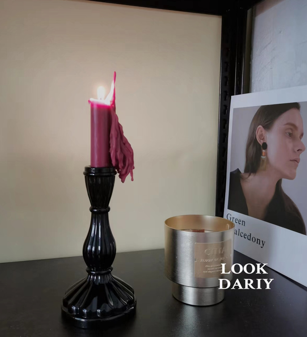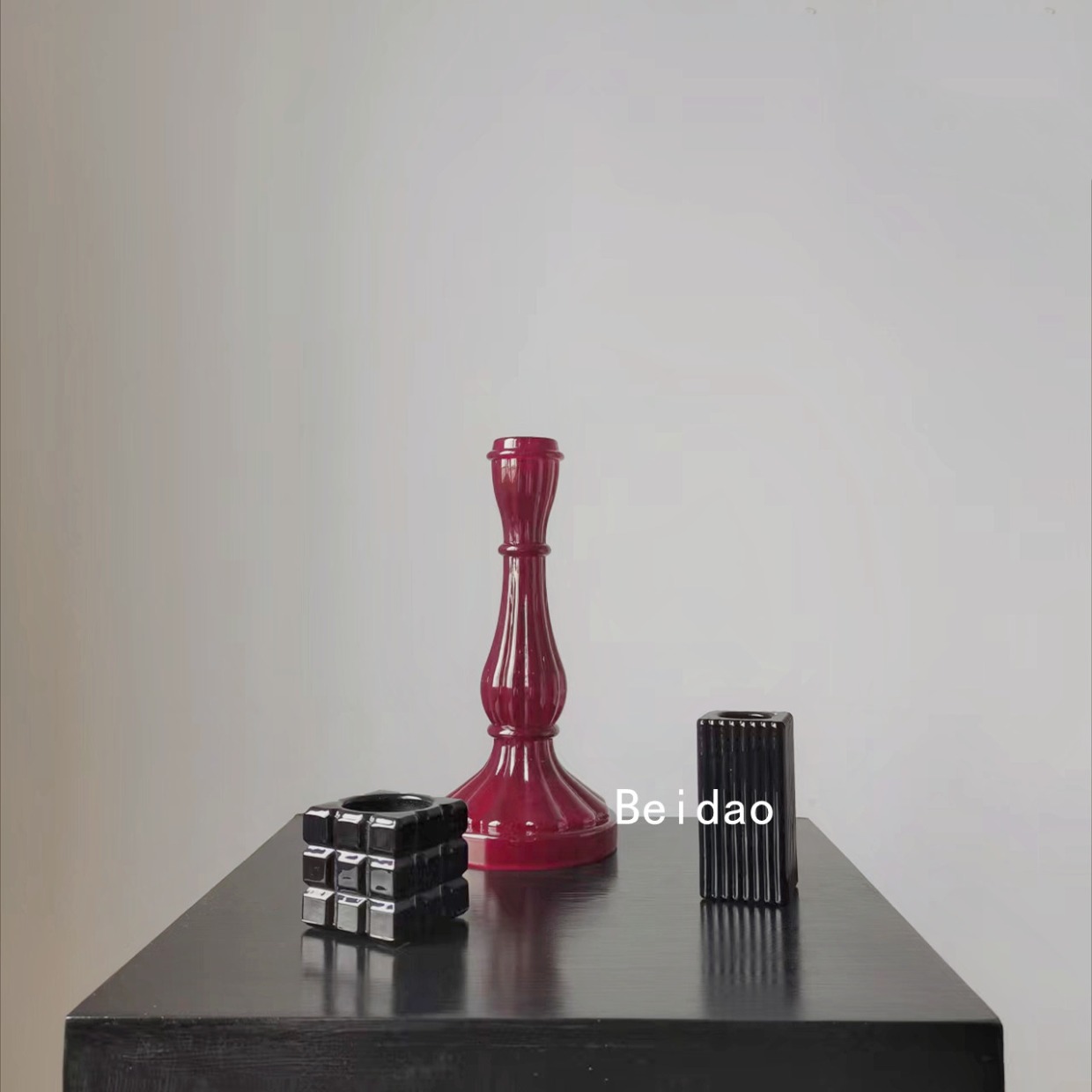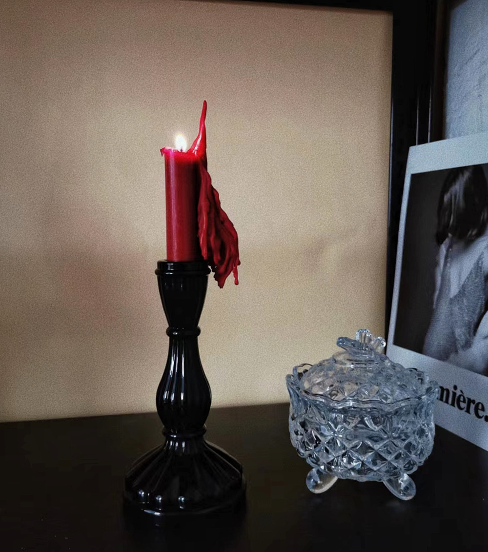 中古水晶黑色蜡烛台玻璃浪漫烛光晚餐婚庆拍摄道具INS风格