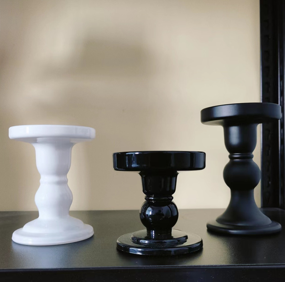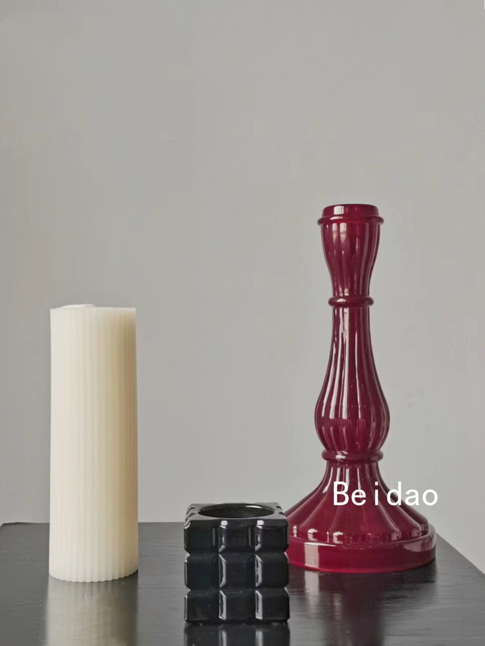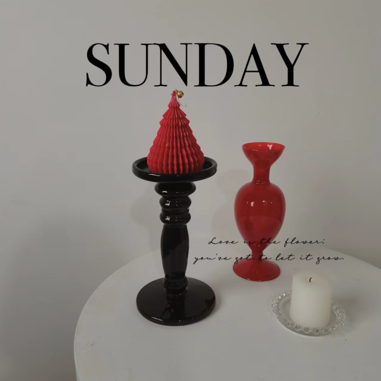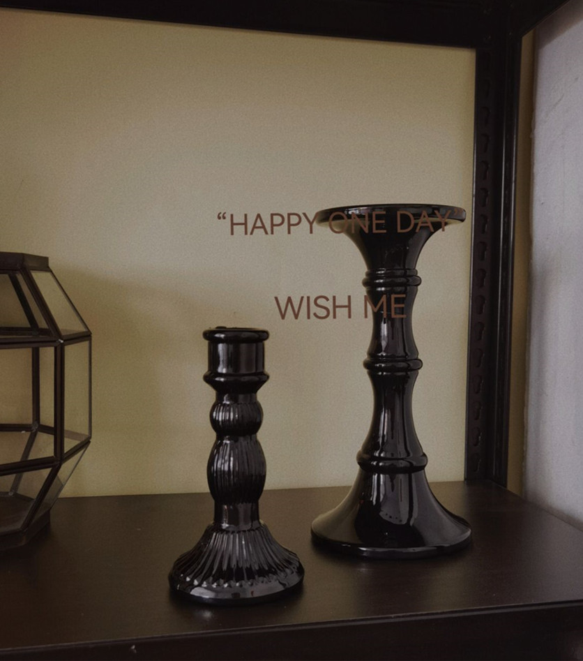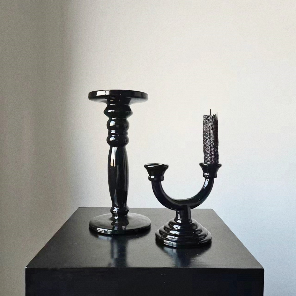中古水晶黑色蜡烛台玻璃浪漫烛光晚餐婚庆拍摄道具INS风格