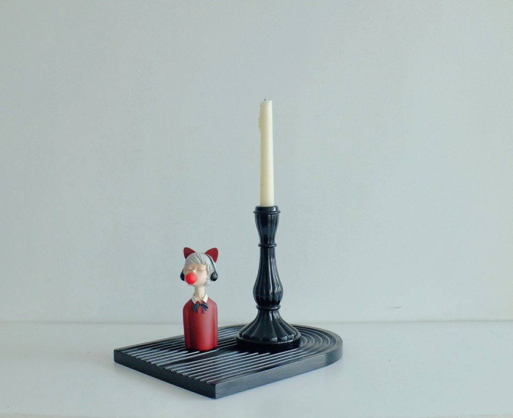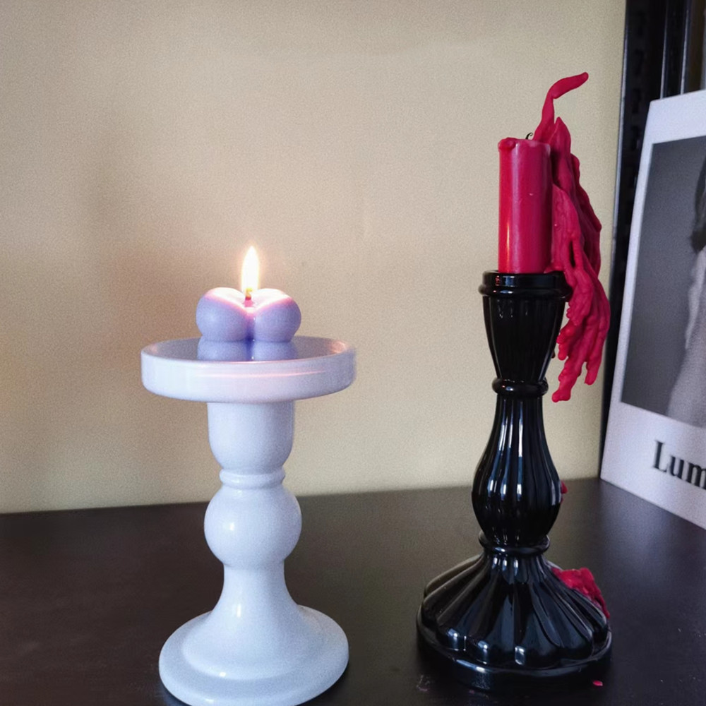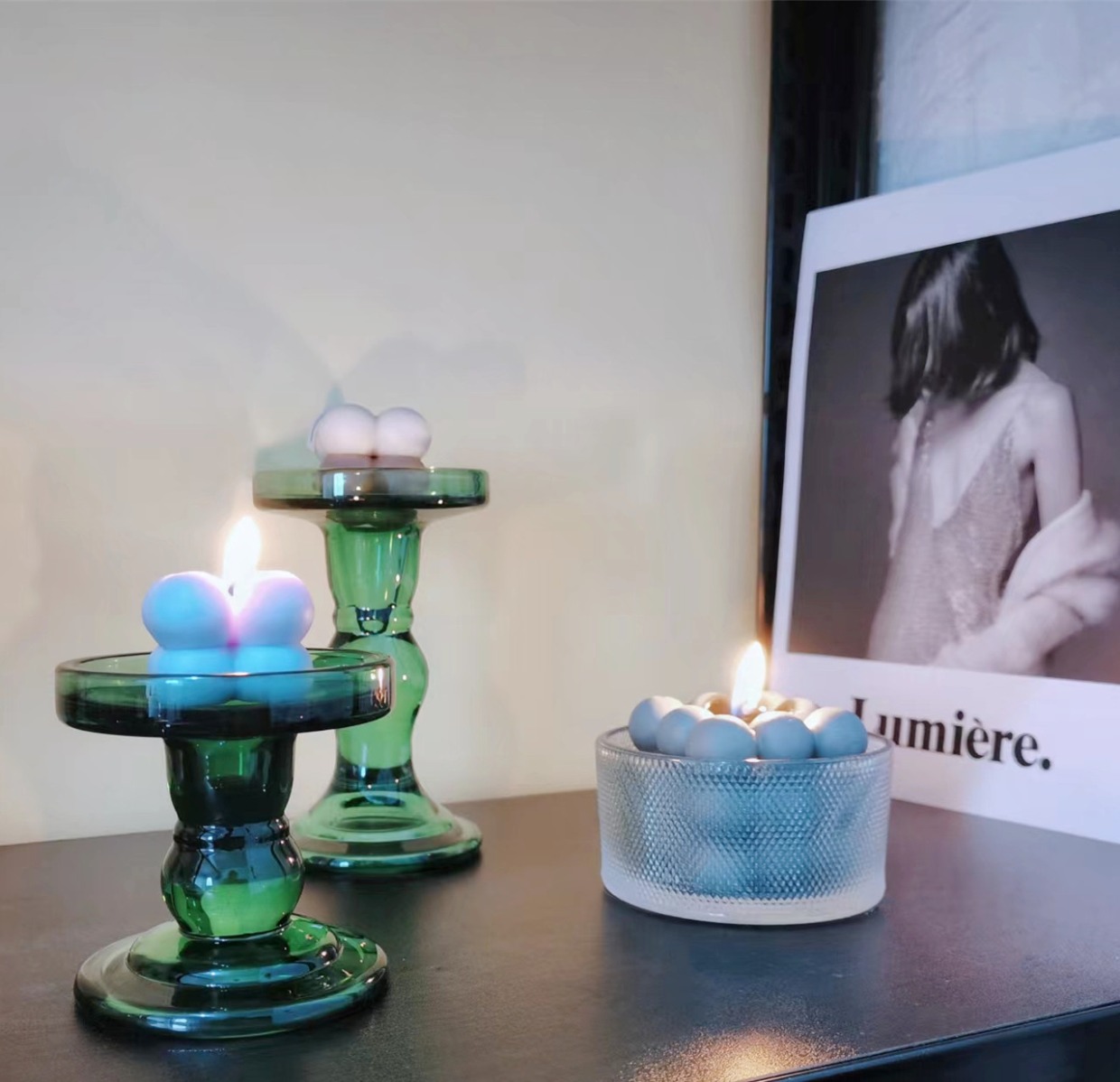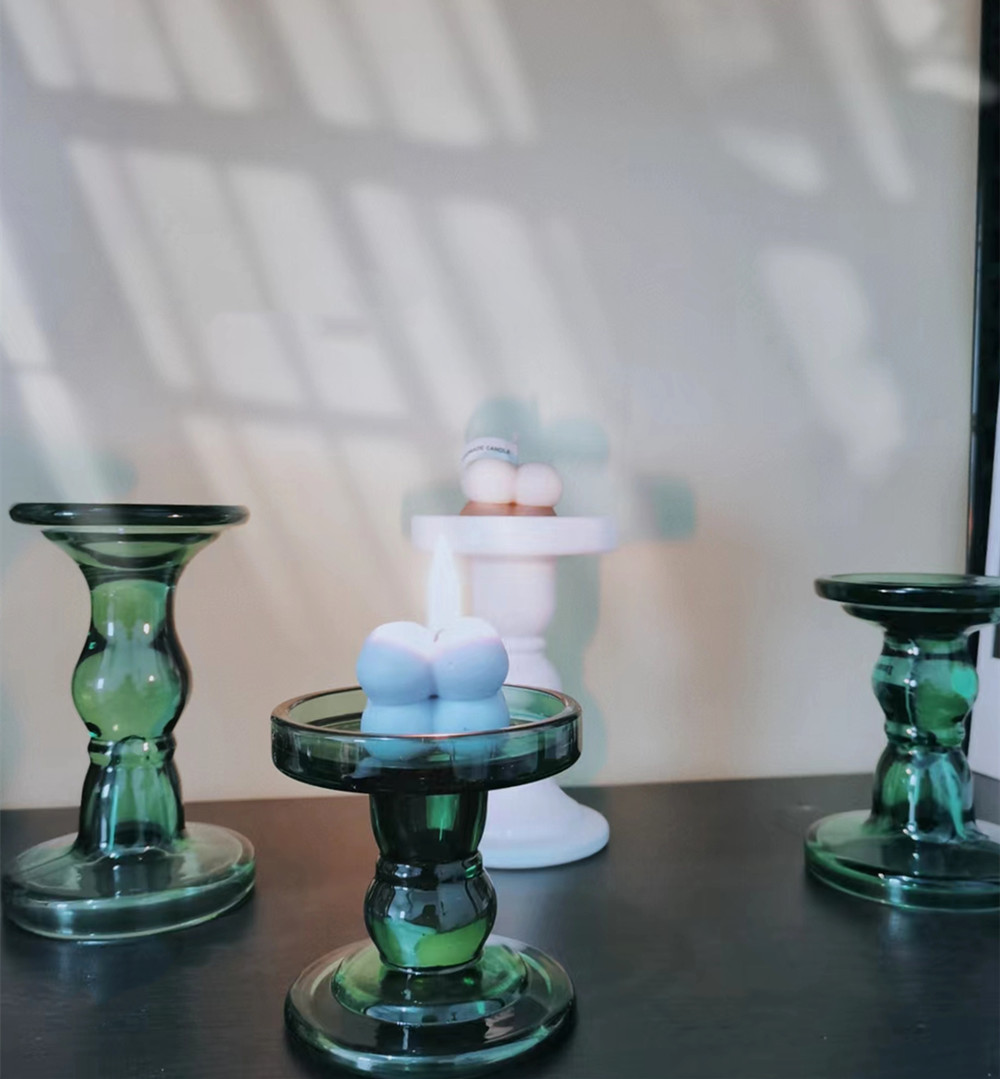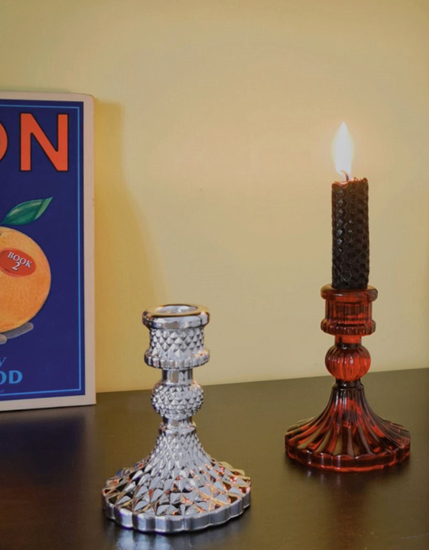 中古水晶黑色蜡烛台玻璃浪漫烛光晚餐婚庆拍摄道具INS风格