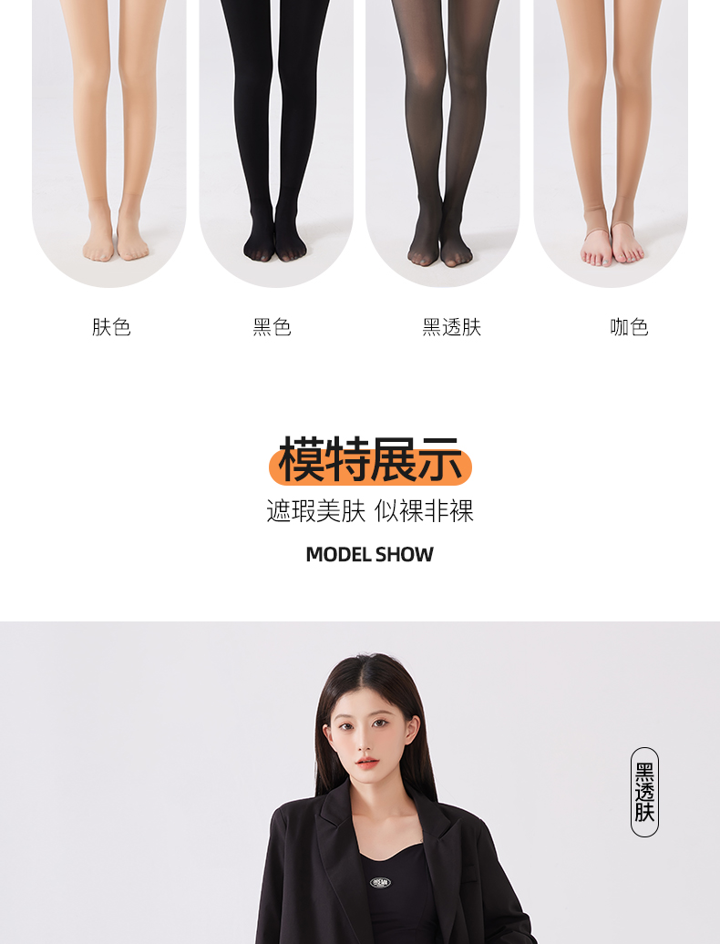 加绒黑丝袜光腿神器女秋冬季胖mm200斤水光袜加厚肉色大码打底裤