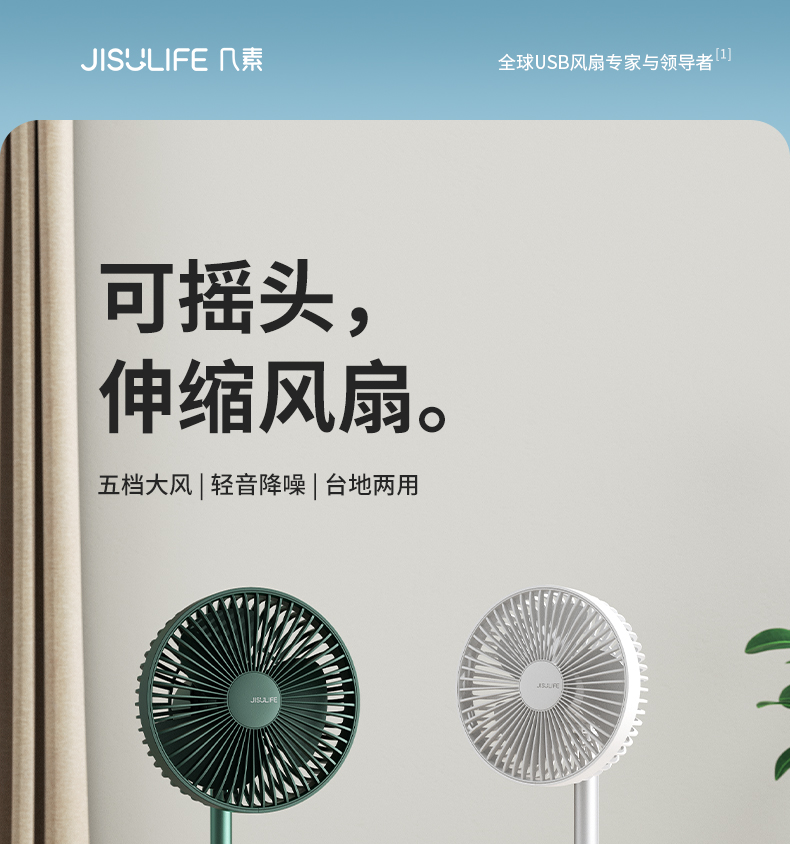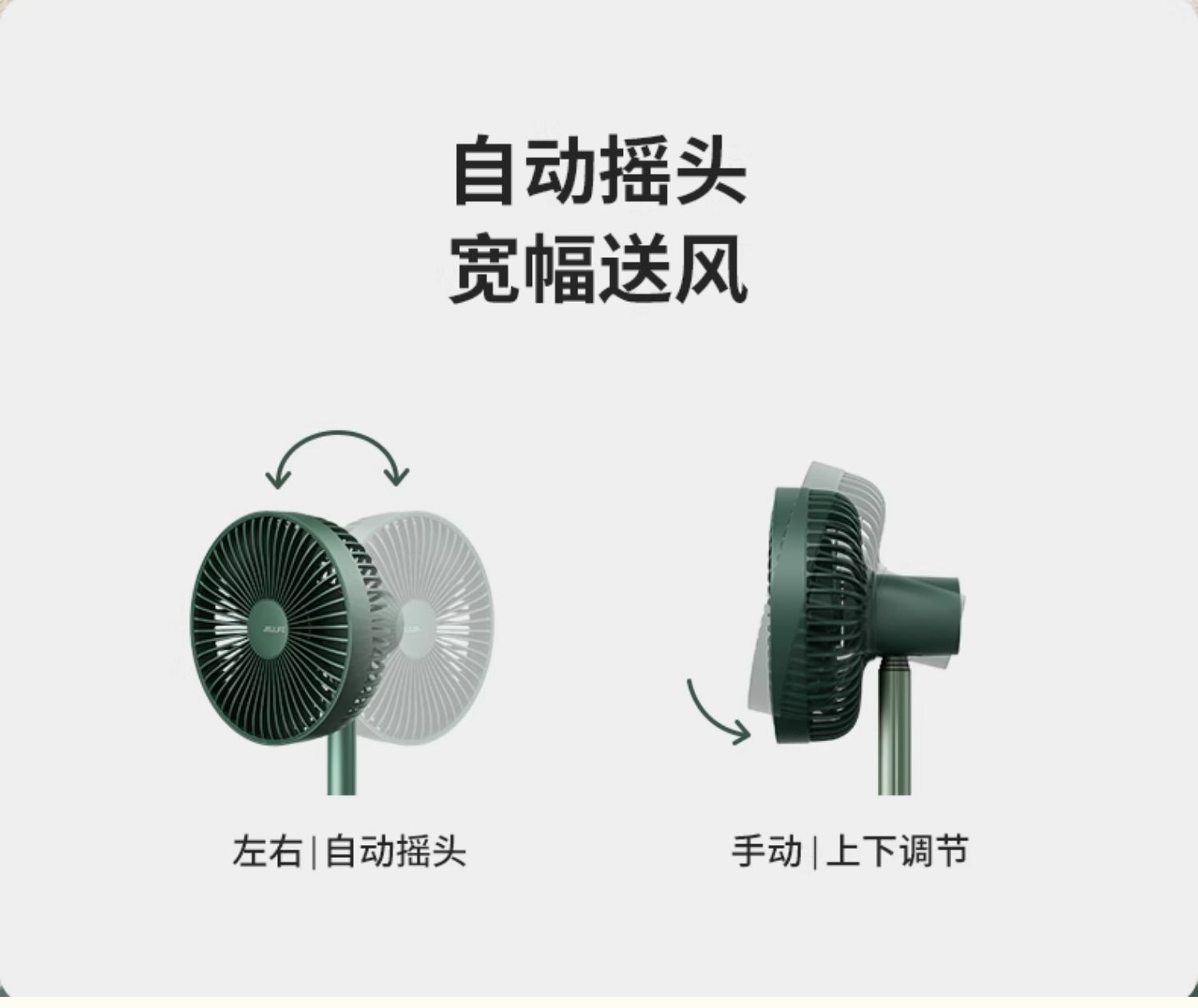 几素伸缩电风扇充电小型静音家用摇头落地扇桌面无线电扇户外露营