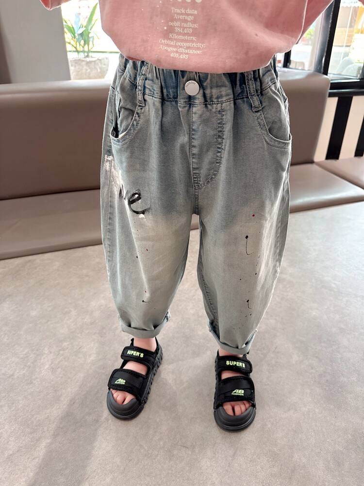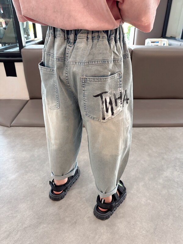 柔软舒适~男童夏季薄款牛仔裤长裤2025新款中小童洋气百搭防蚊裤