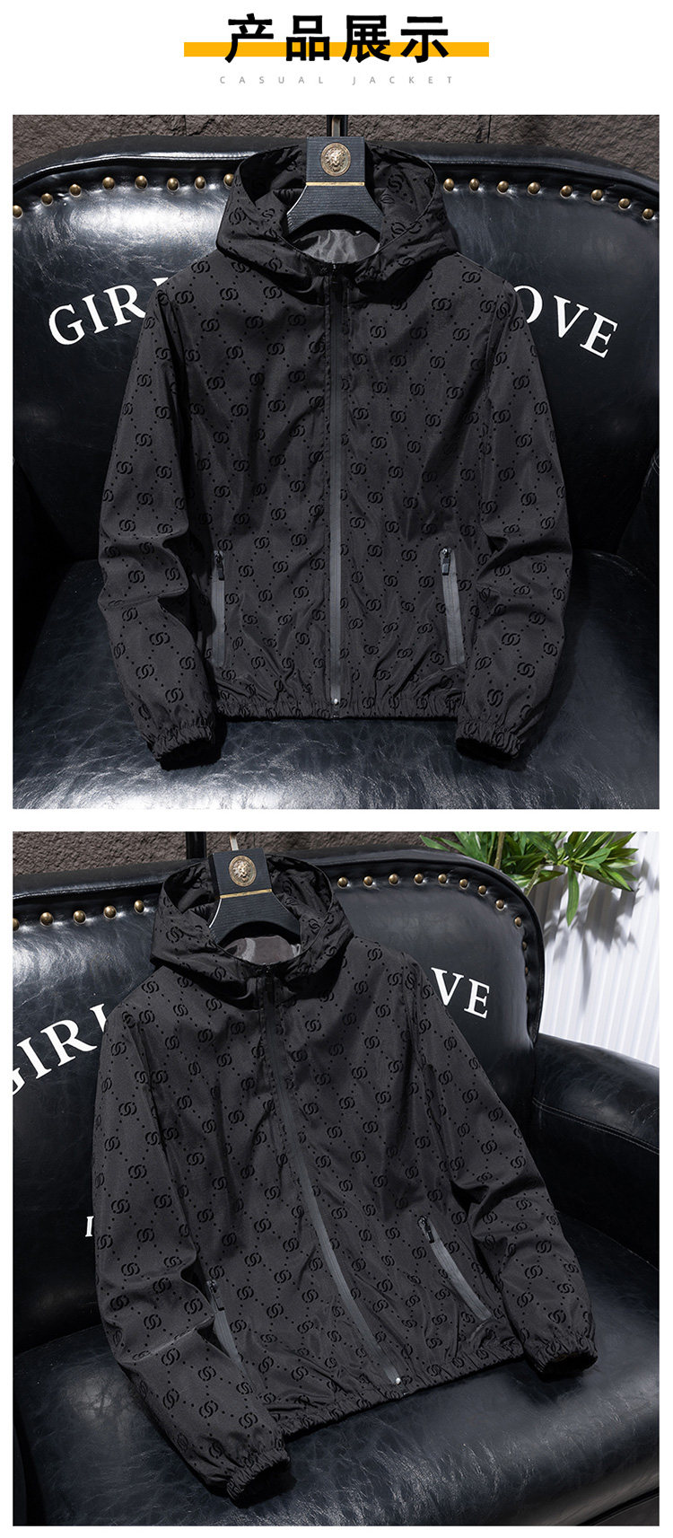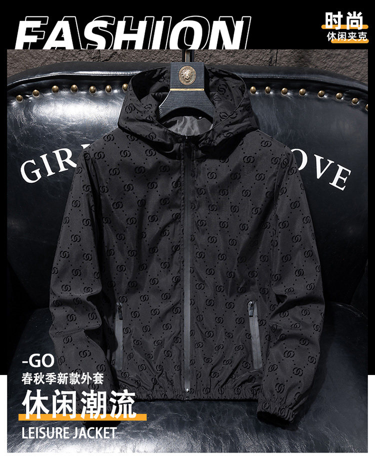 植绒外套男士春秋季新款百搭连帽潮流上衣服潮牌休闲青年夹克男