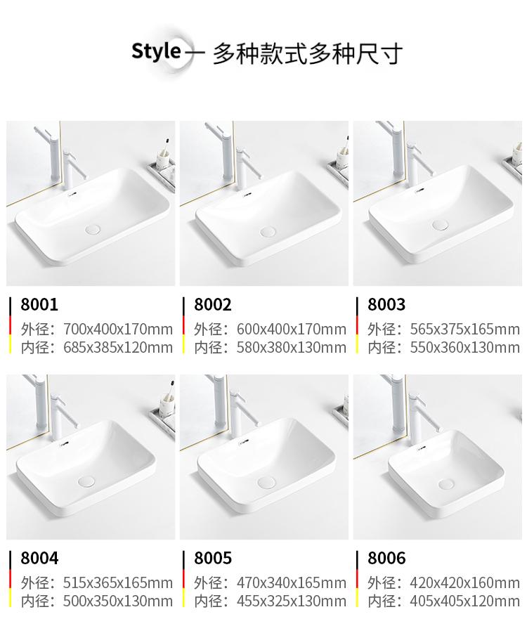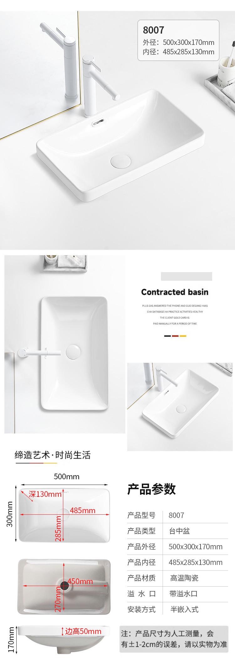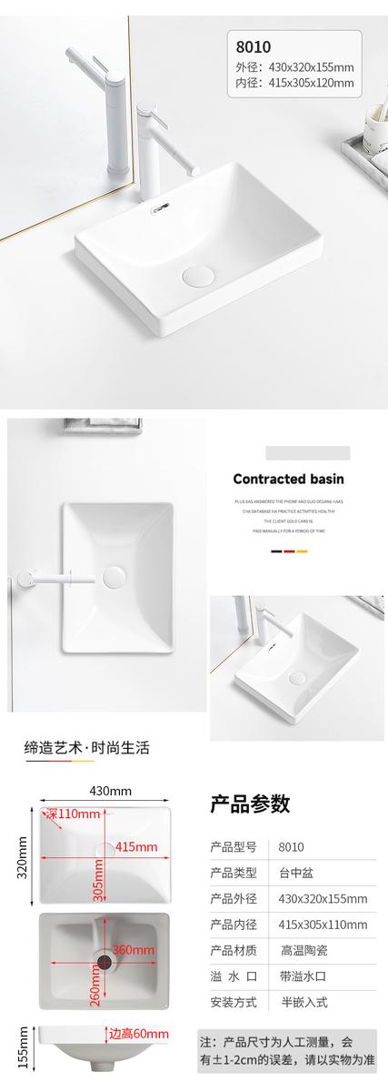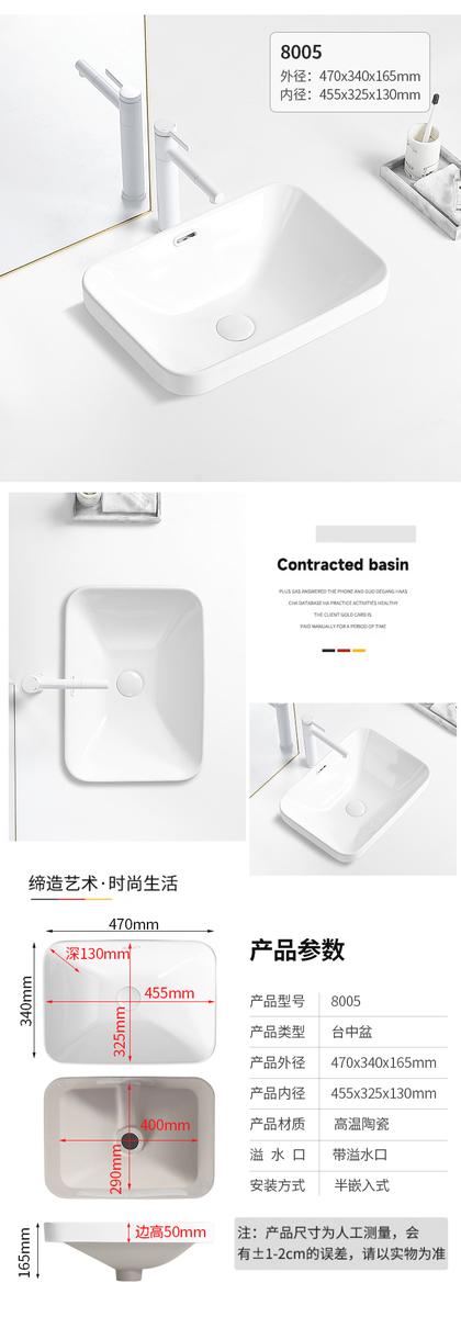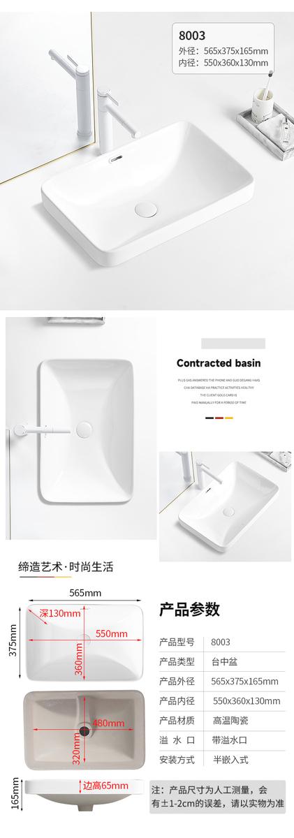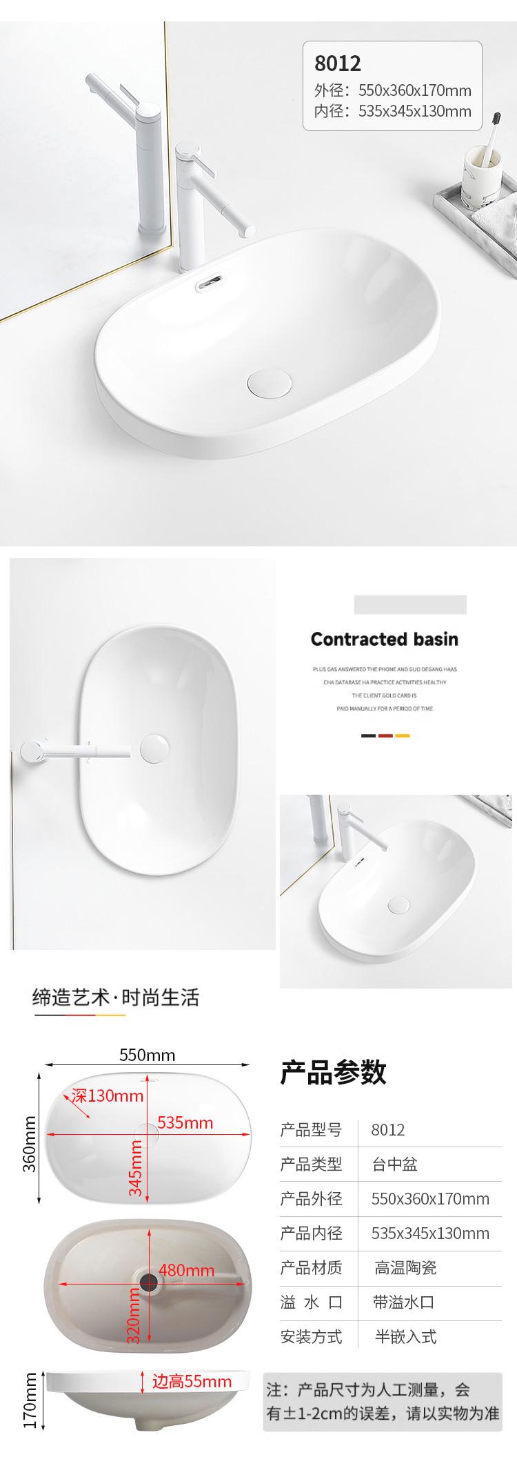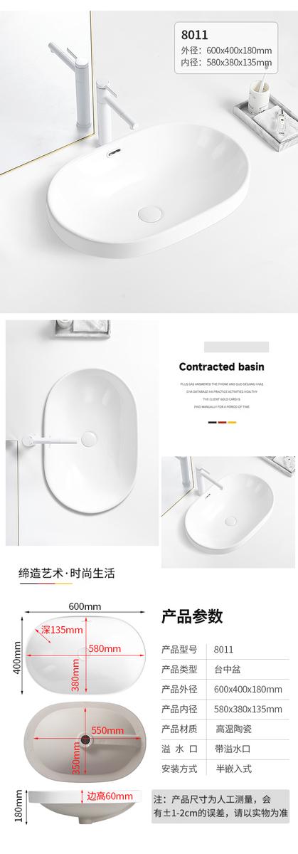 台中盆半嵌入式陶瓷台盆家用洗手盆阳台卫生间长方形椭圆形洗脸盆