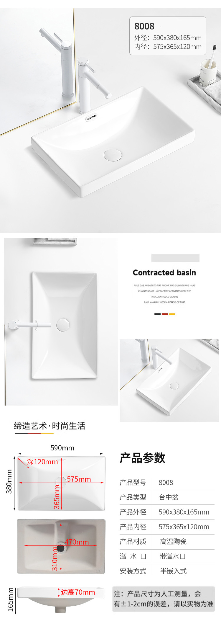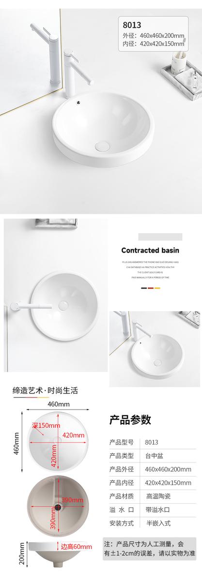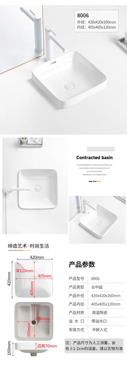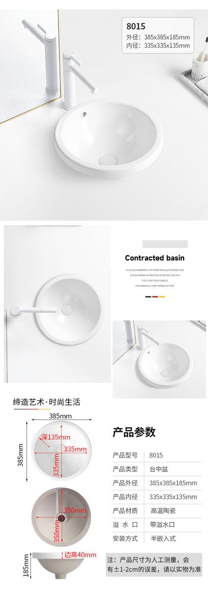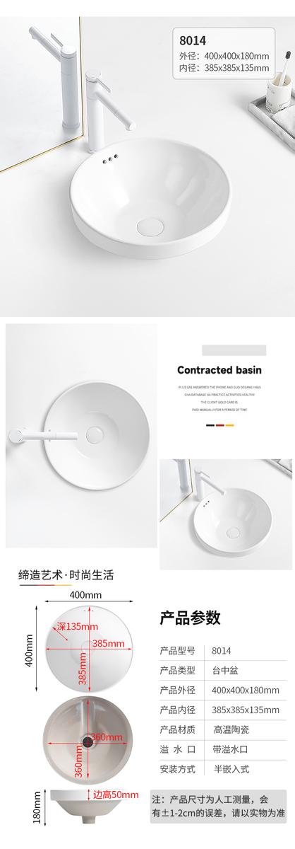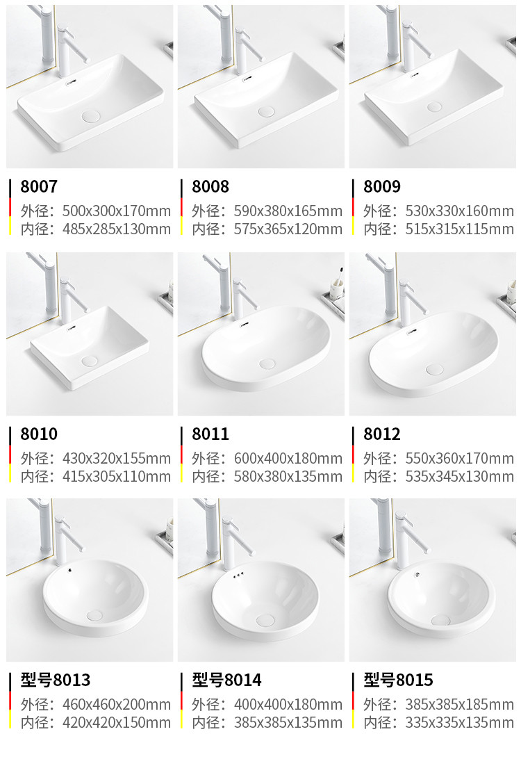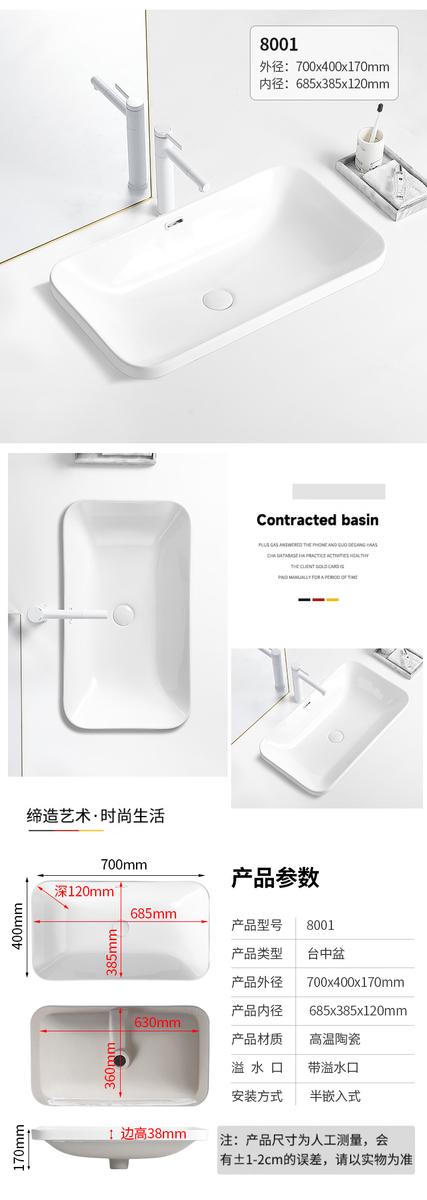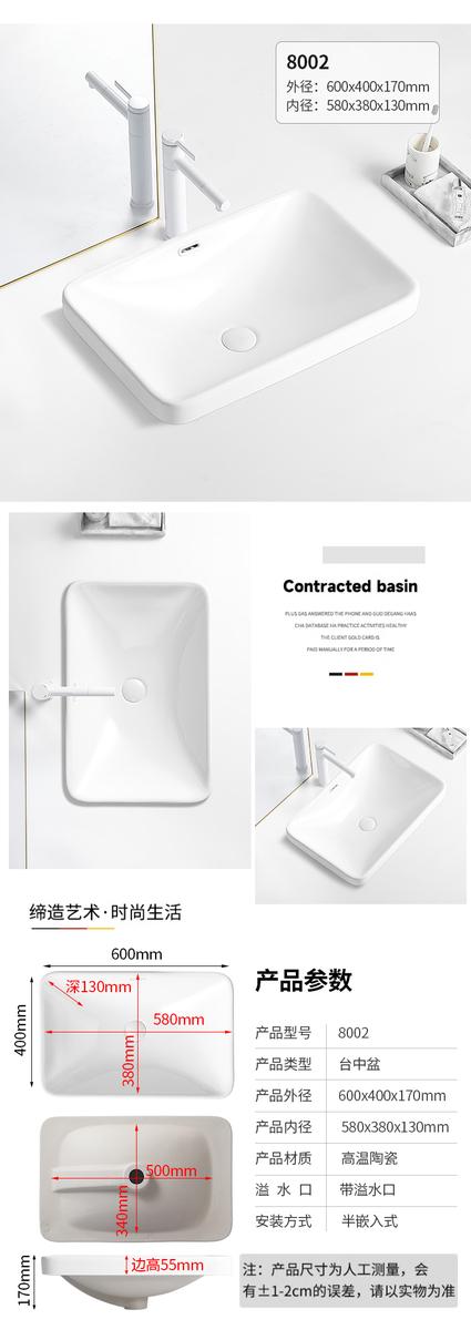 台中盆半嵌入式陶瓷台盆家用洗手盆阳台卫生间长方形椭圆形洗脸盆