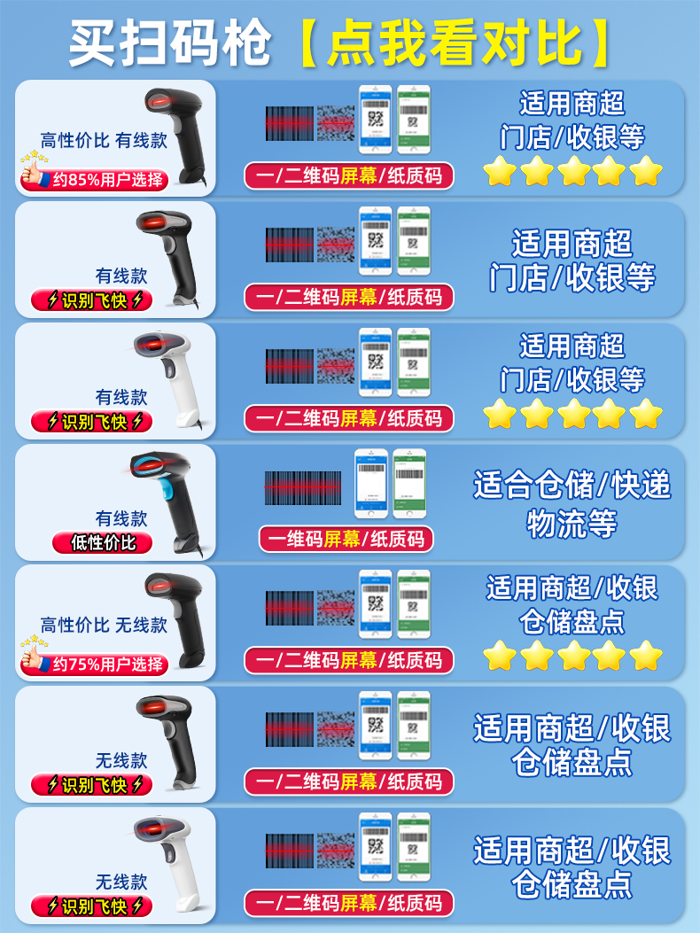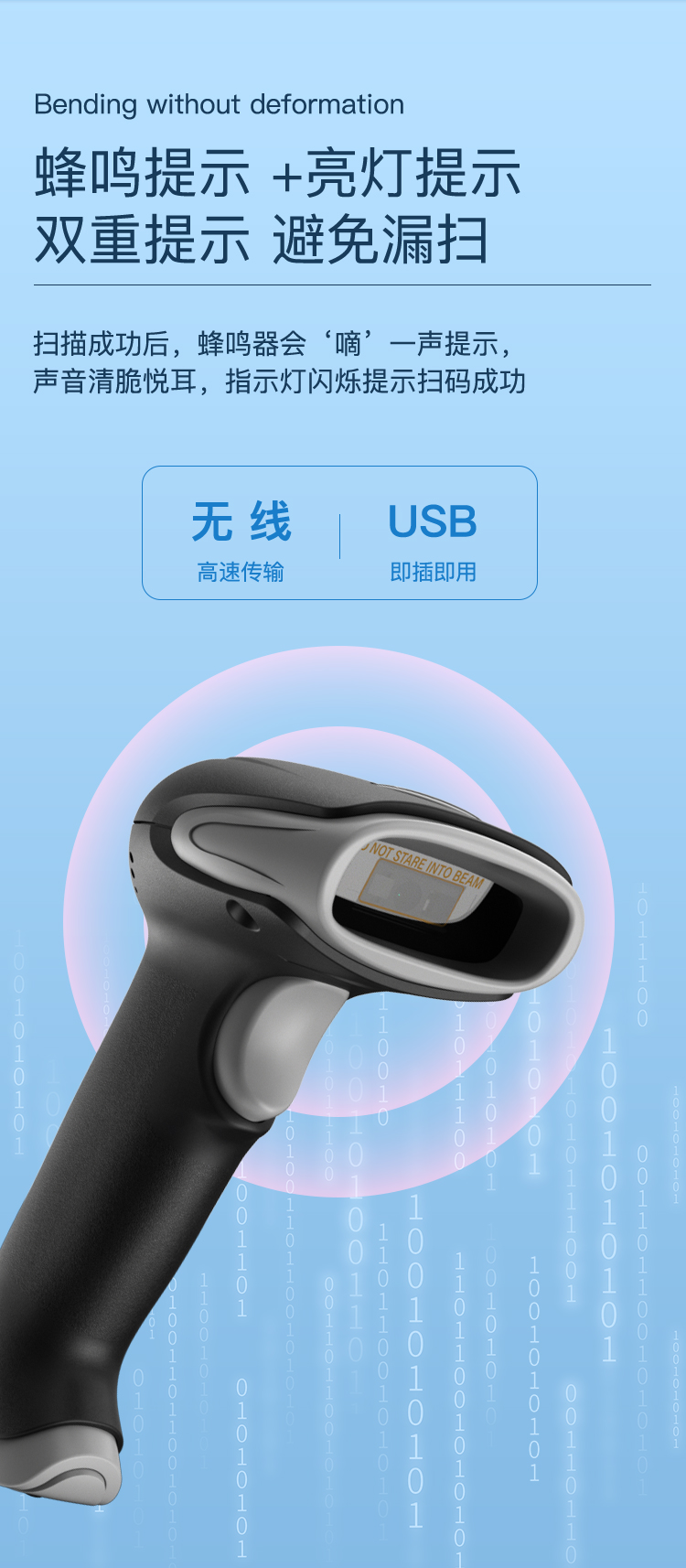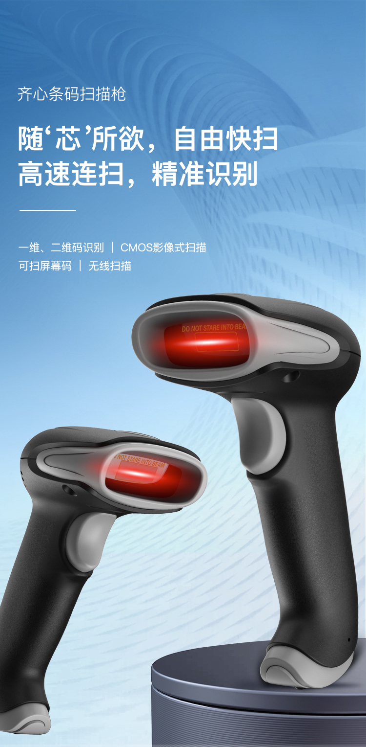齐心扫码枪条码扫描器无线扫描枪扫码器超市收款收银机专用二维码识别手持扫码枪快递出入库扫码枪
