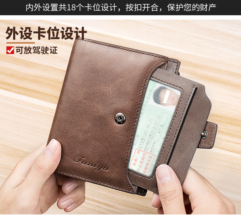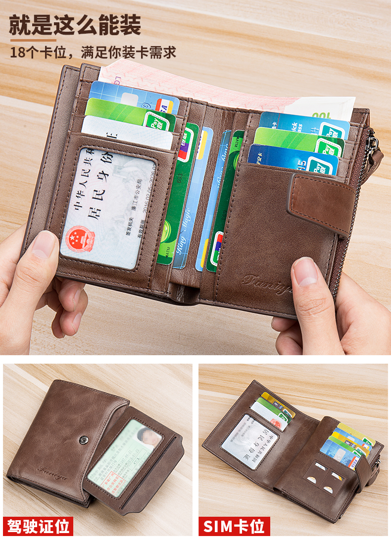 男士钱包短款真皮多功能头层牛皮卡包驾驶证竖款青年男式皮夹钱夹